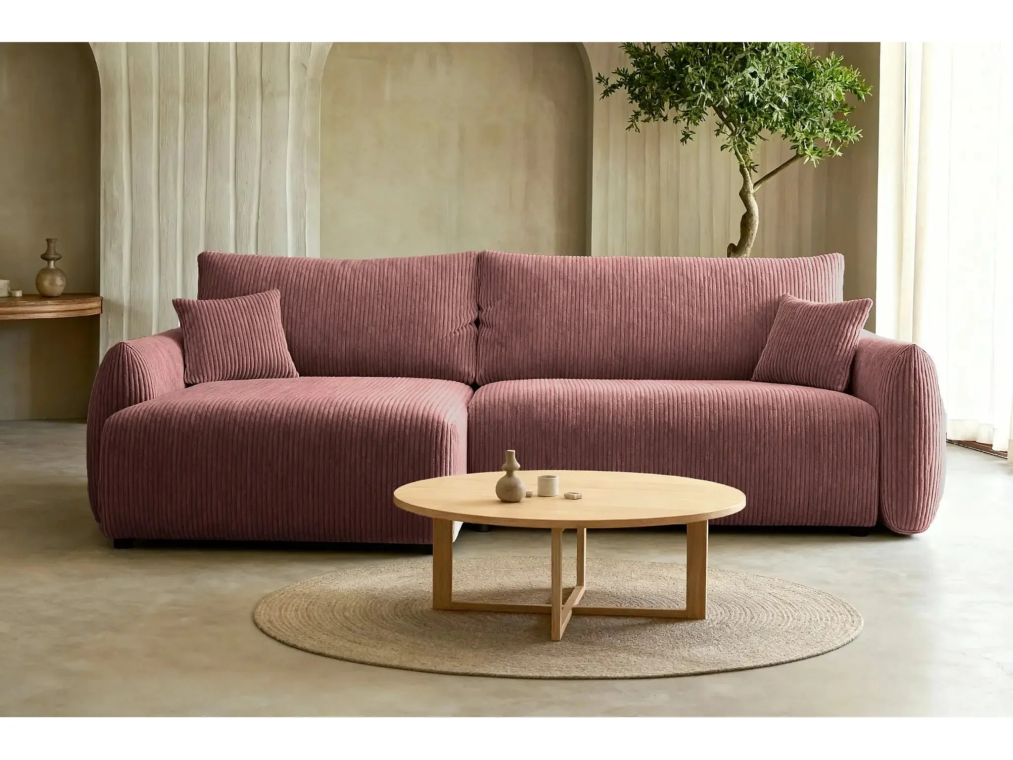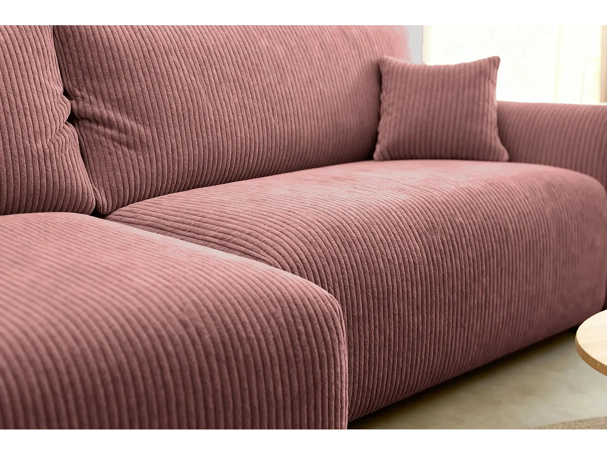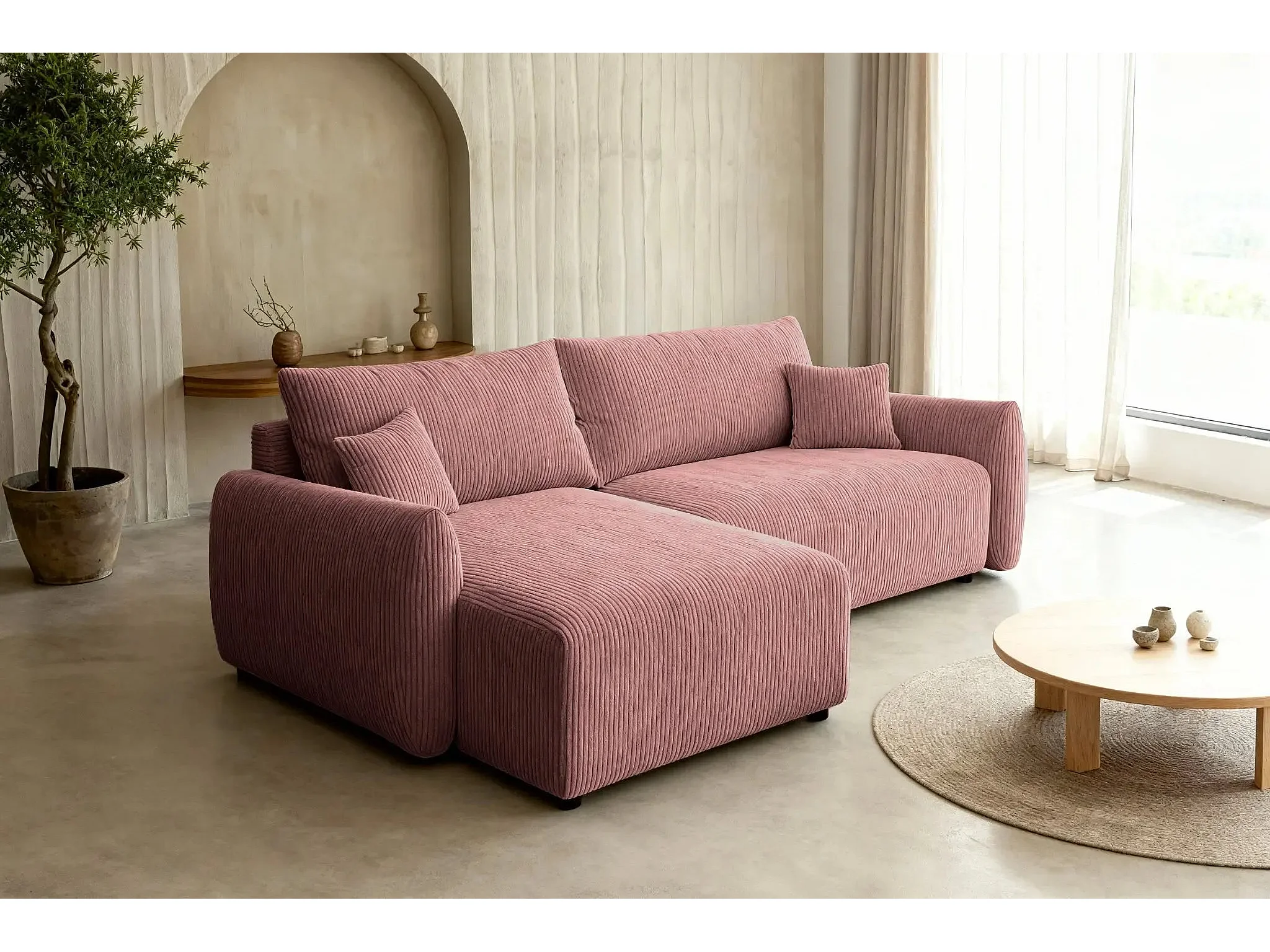 ELIO - Canapé d'angle convertible petit velours côtelé 4 places - Rose