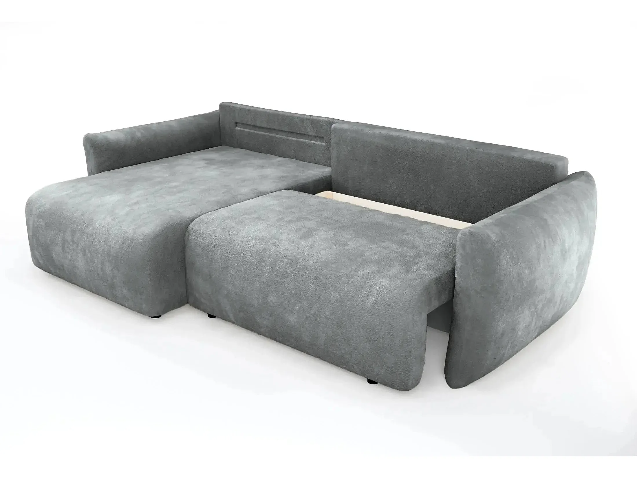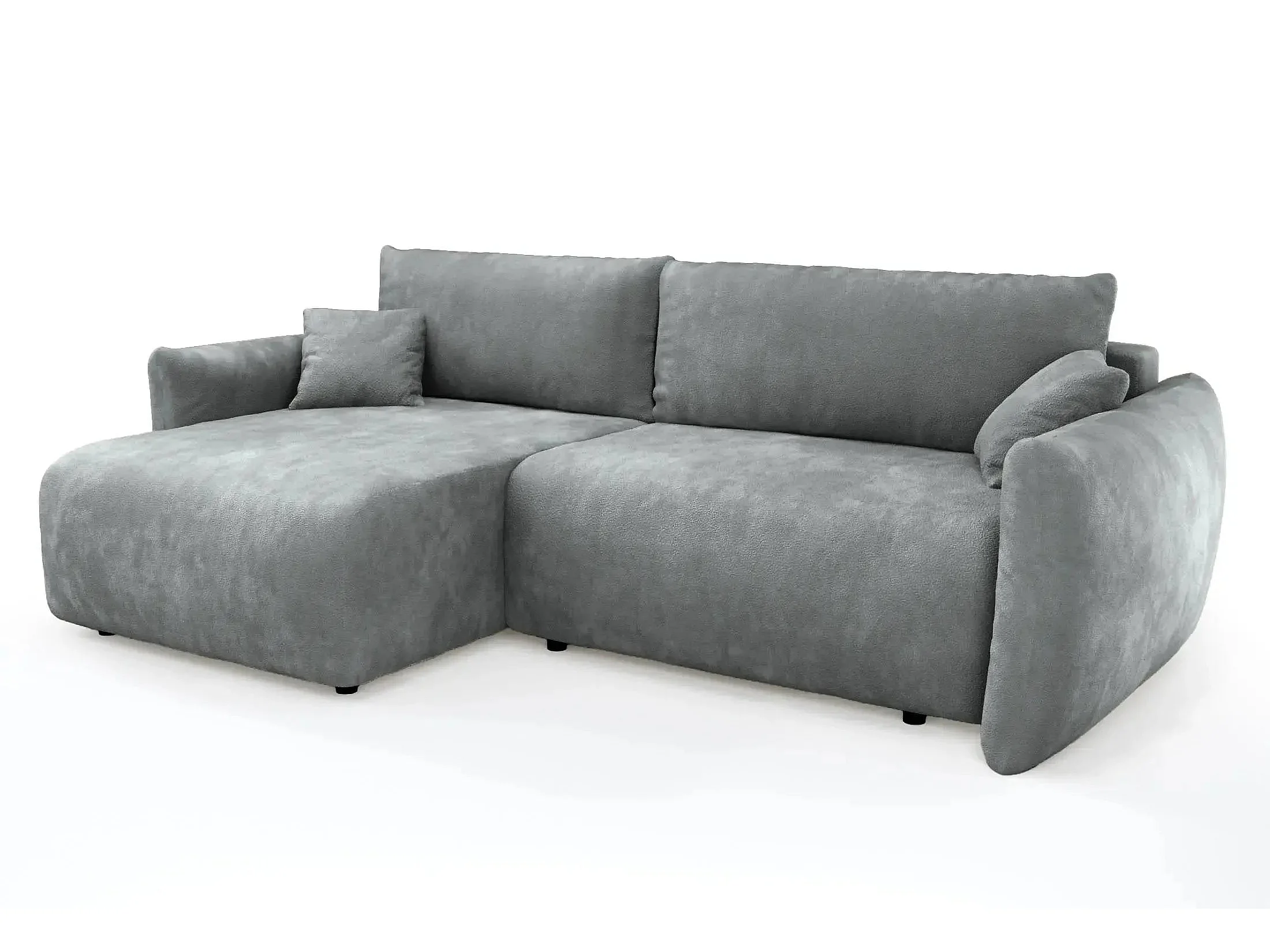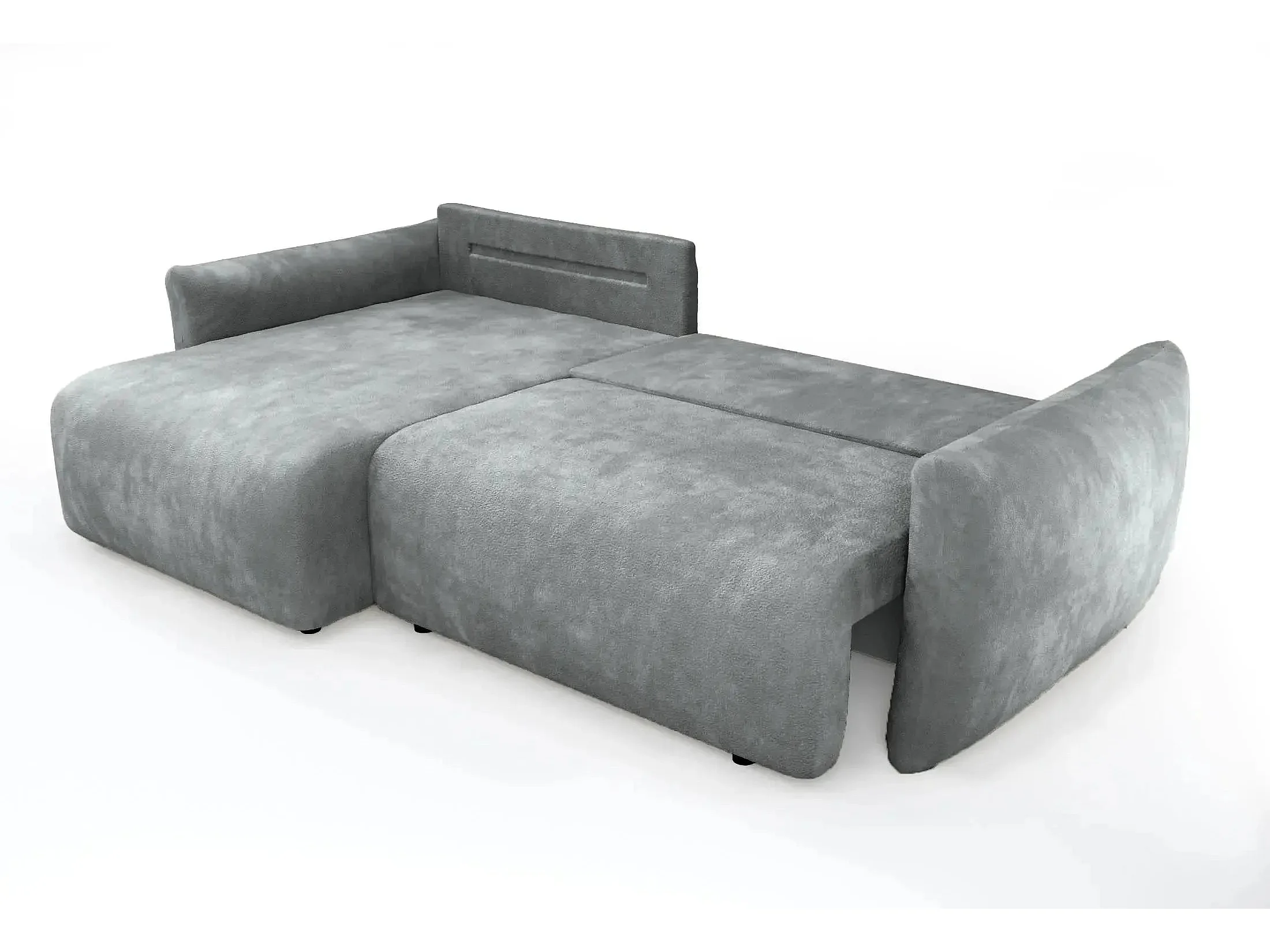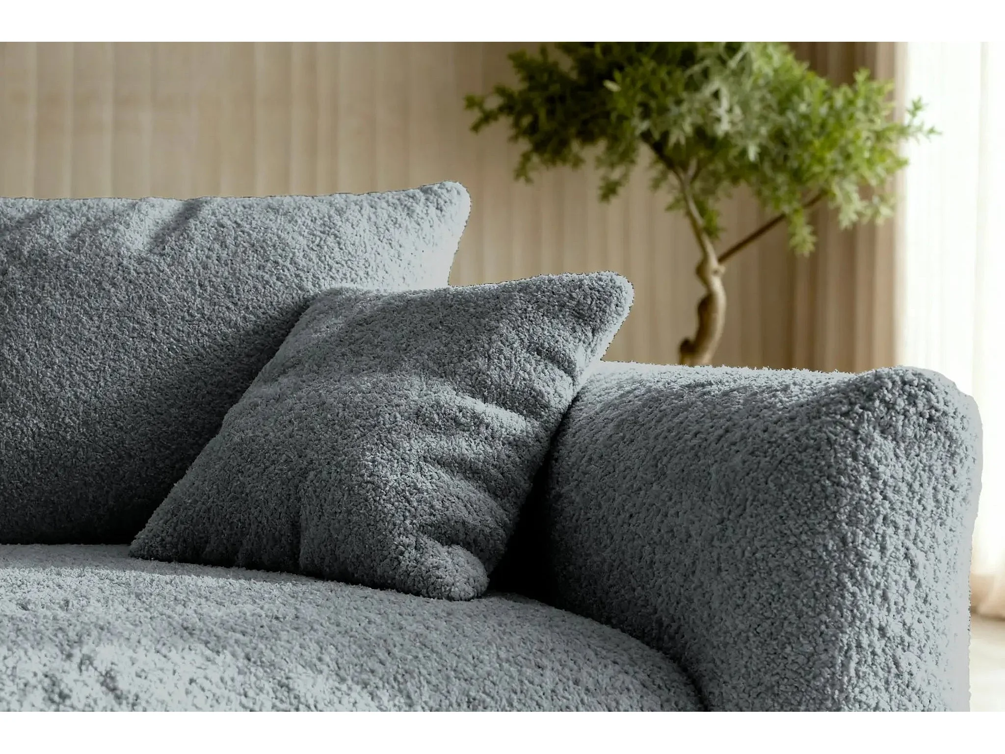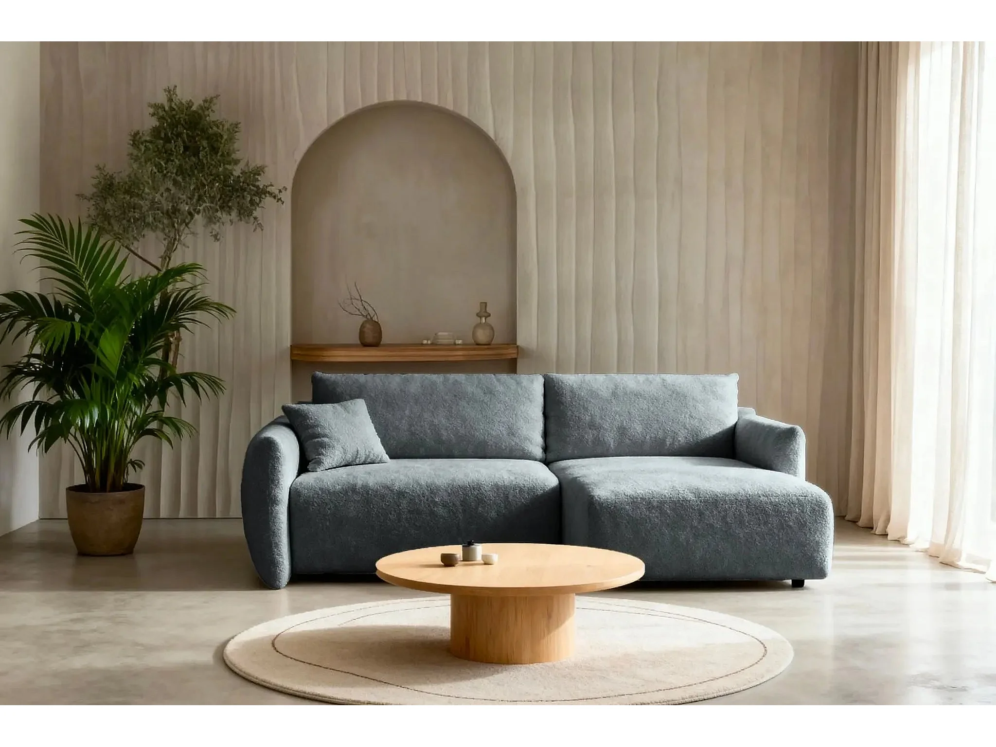 ELIO - Canapé d'angle convertible tissu bouclette 4 places - Gris