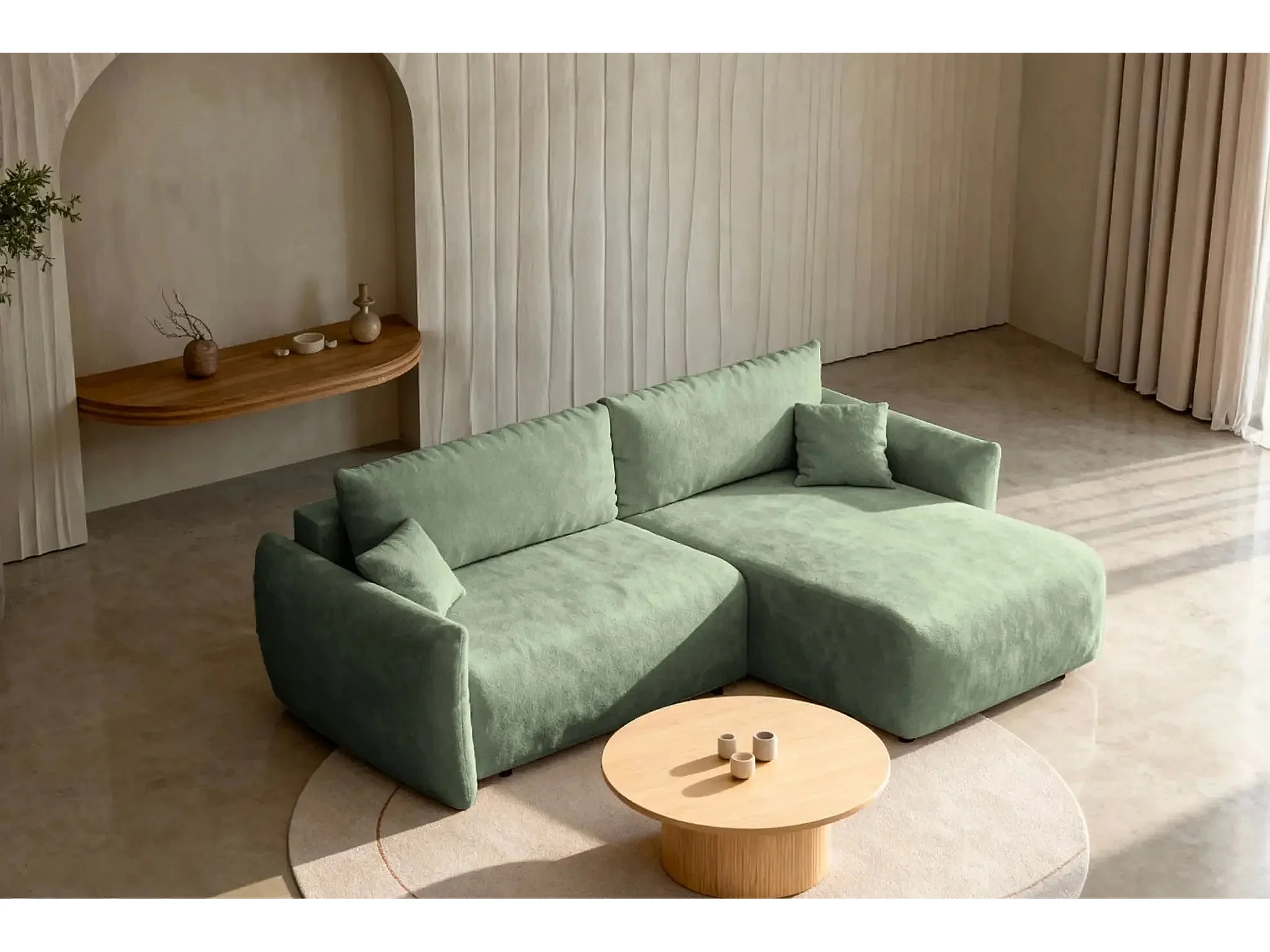ELIO - Canapé d'angle convertible tissu bouclette 4 places - Vert