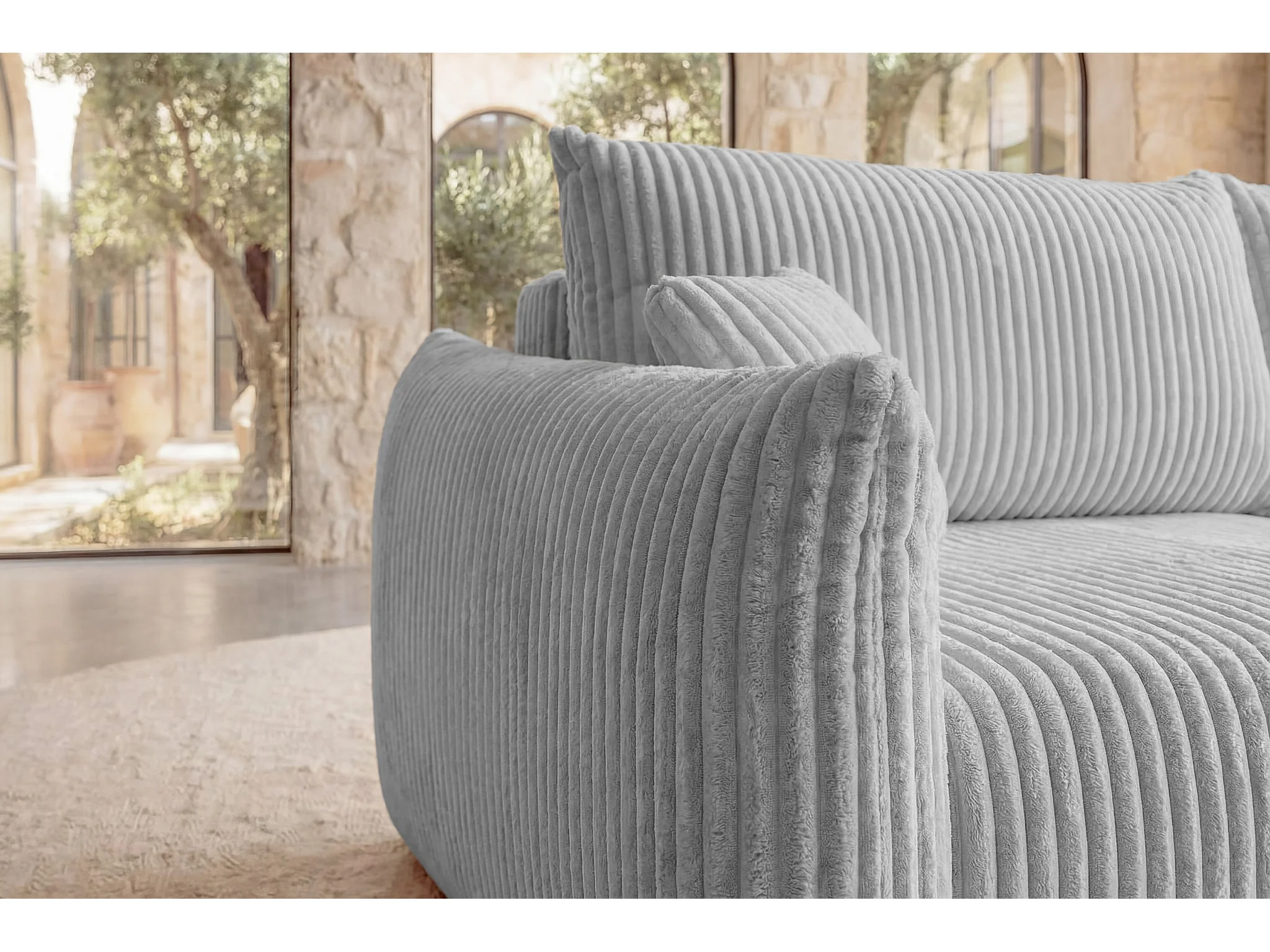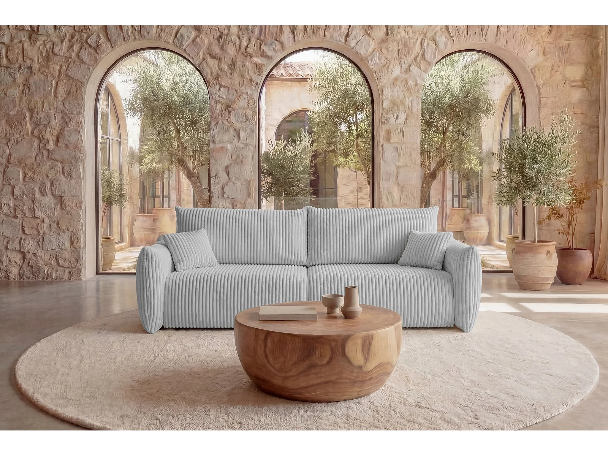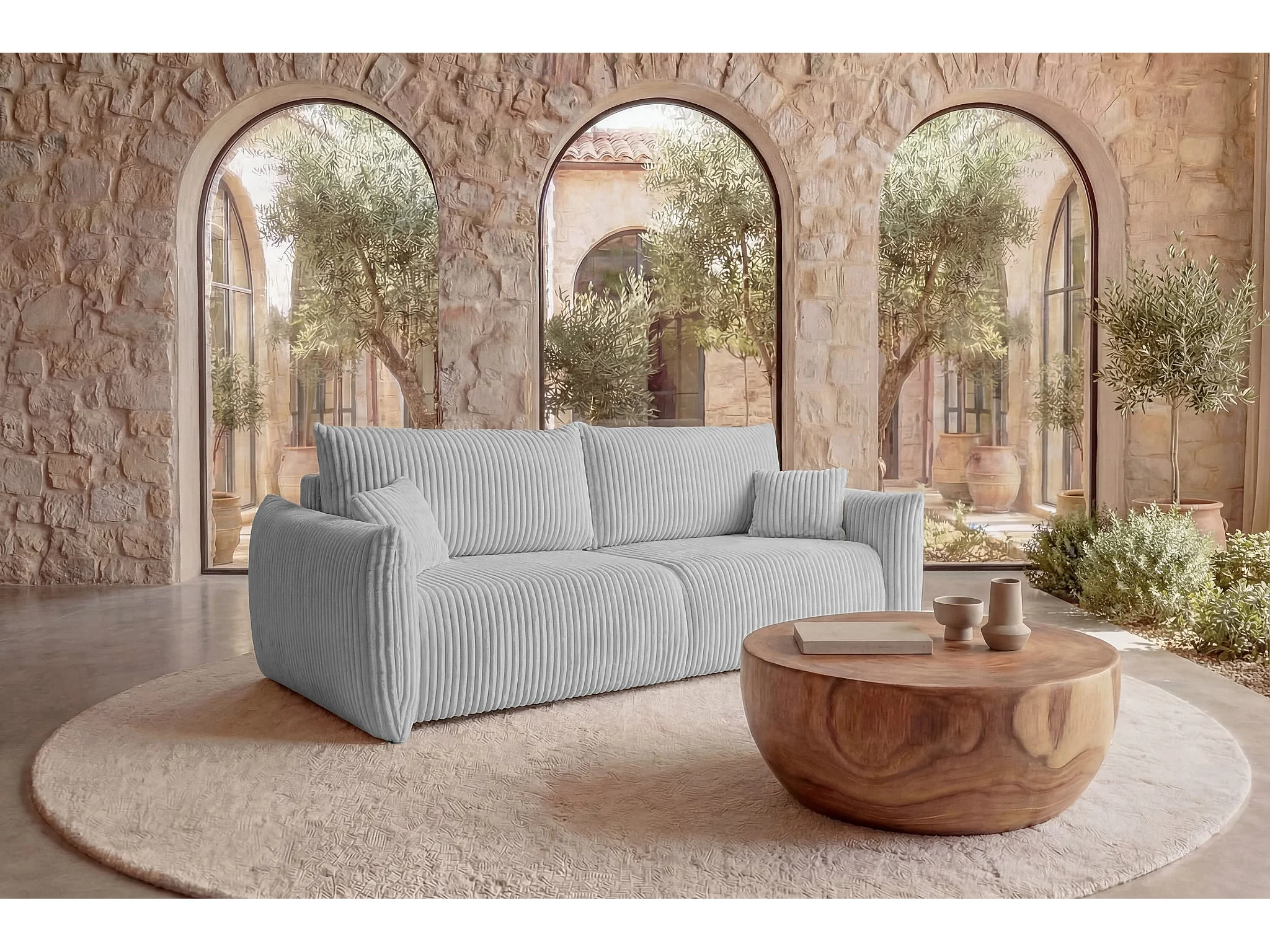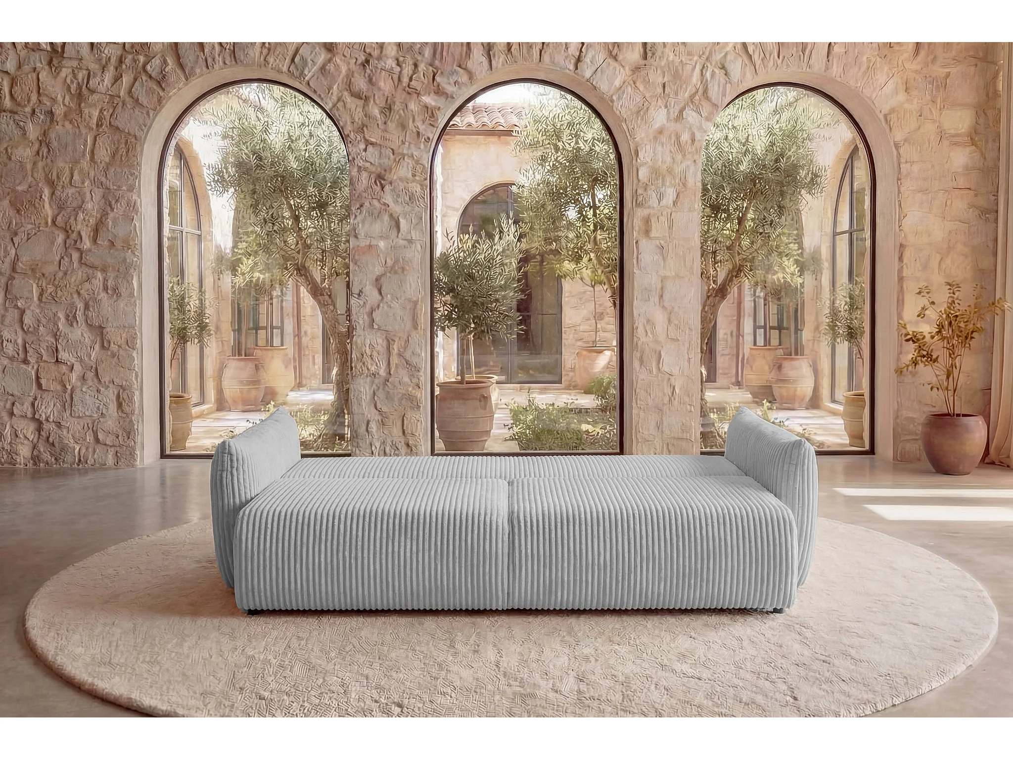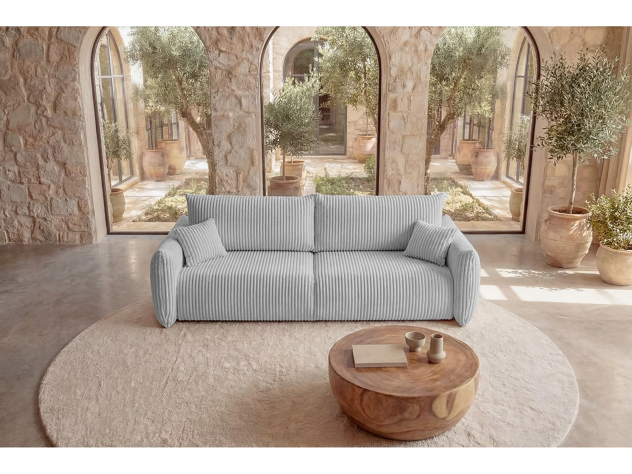 ELIO - Canapé droit convertible gros velours côtelé - Gris clair
