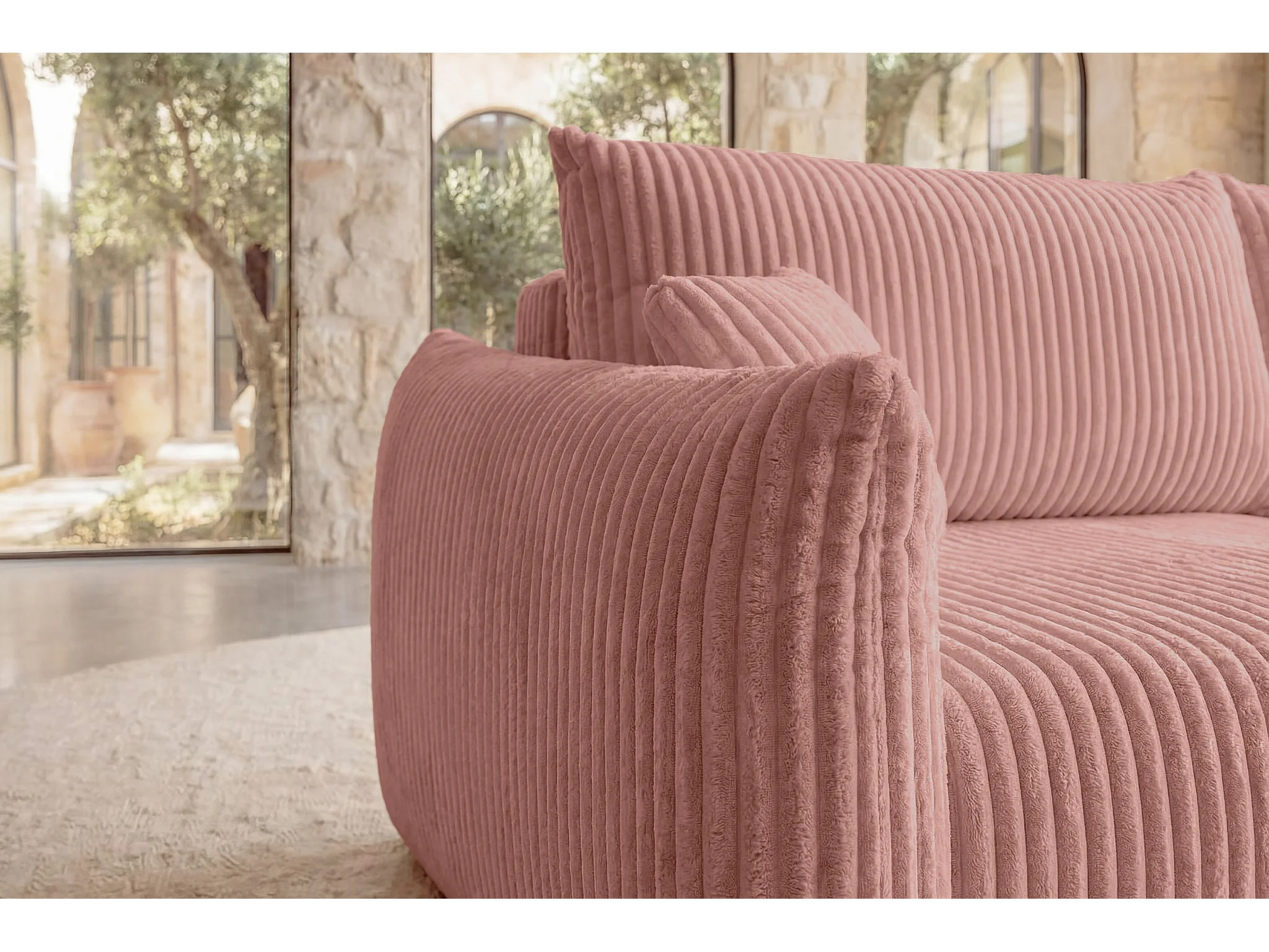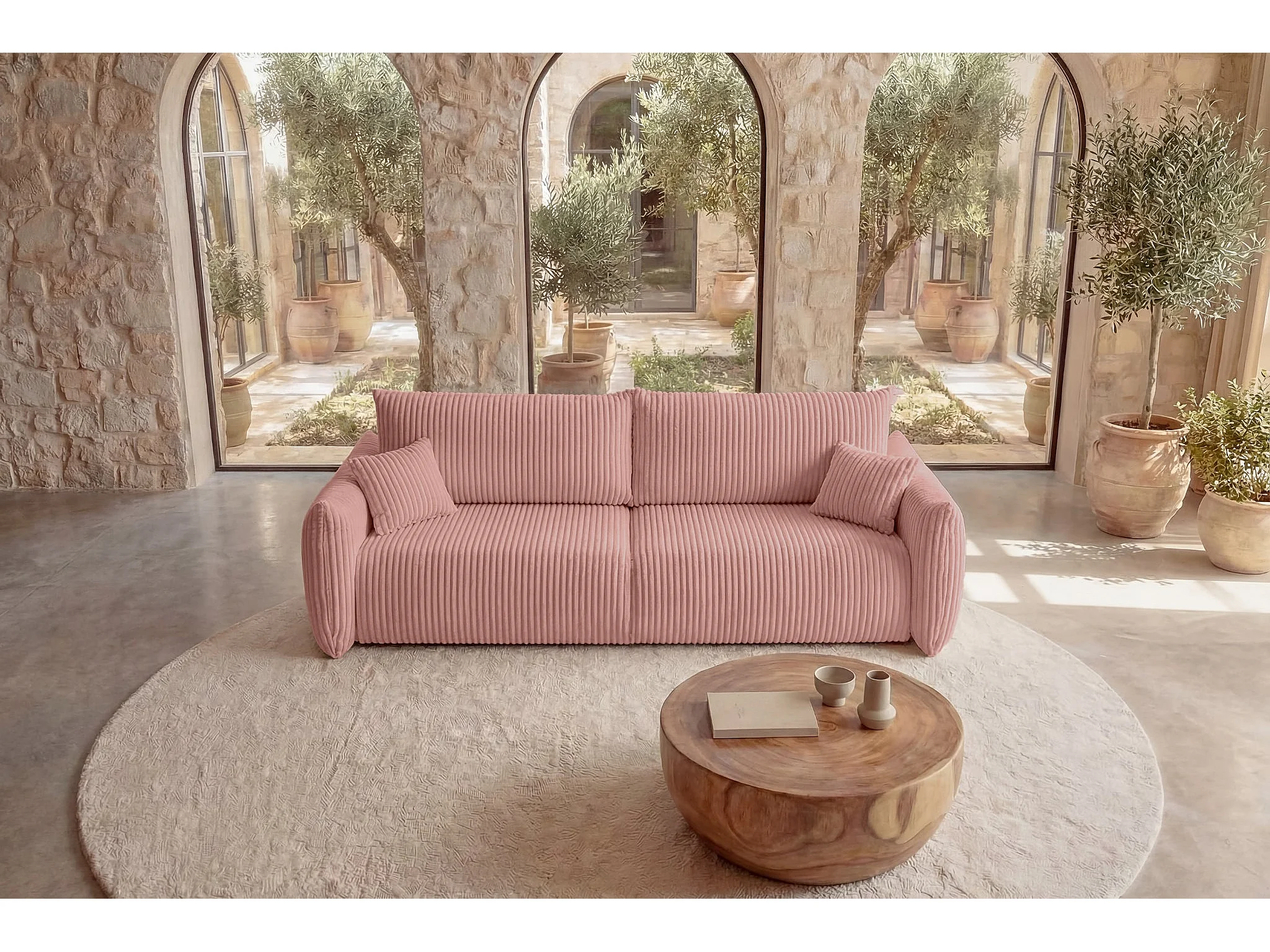 ELIO - Canapé droit convertible gros velours côtelé - Rose
