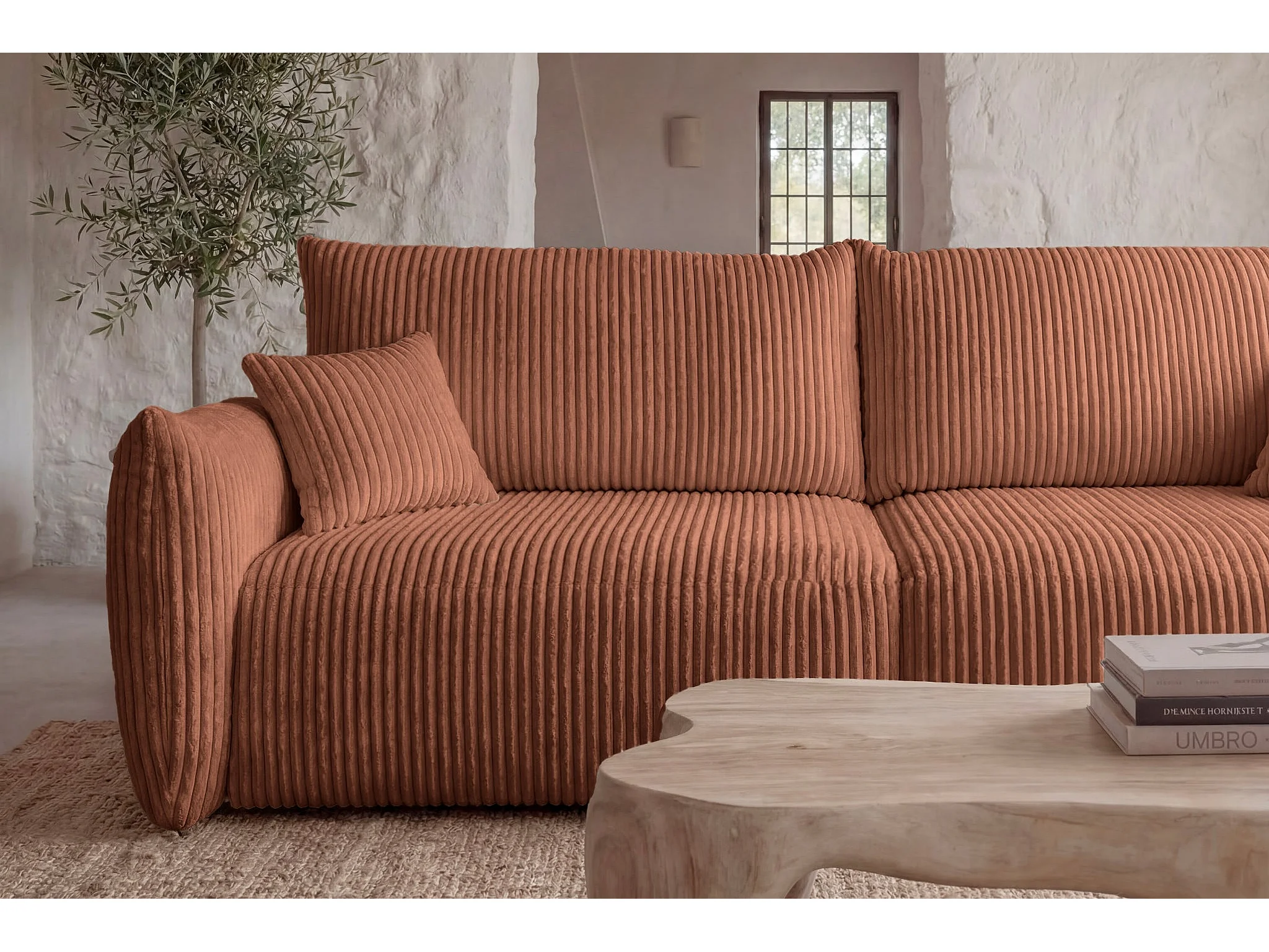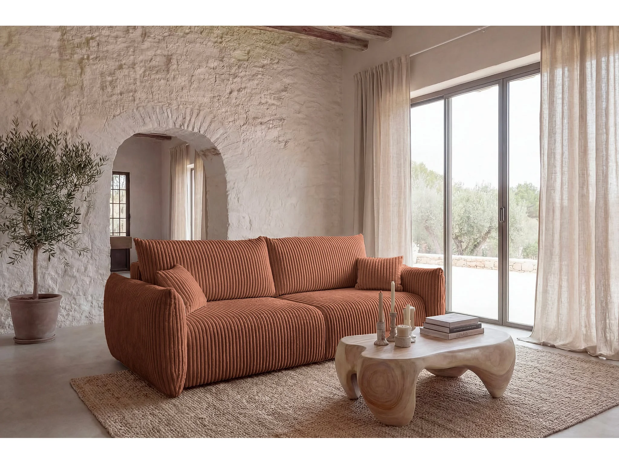 ELIO - Canapé droit convertible gros velours côtelé 3 places - Terracotta