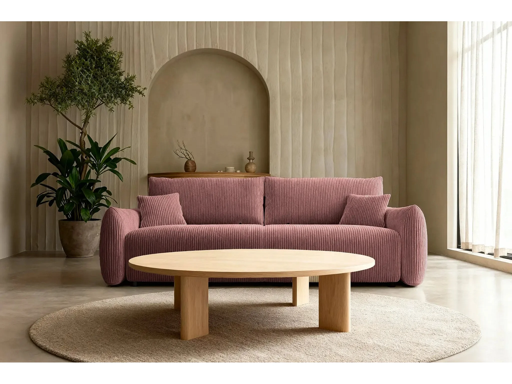 ELIO - Canapé droit convertible petit velours côtelé - Rose