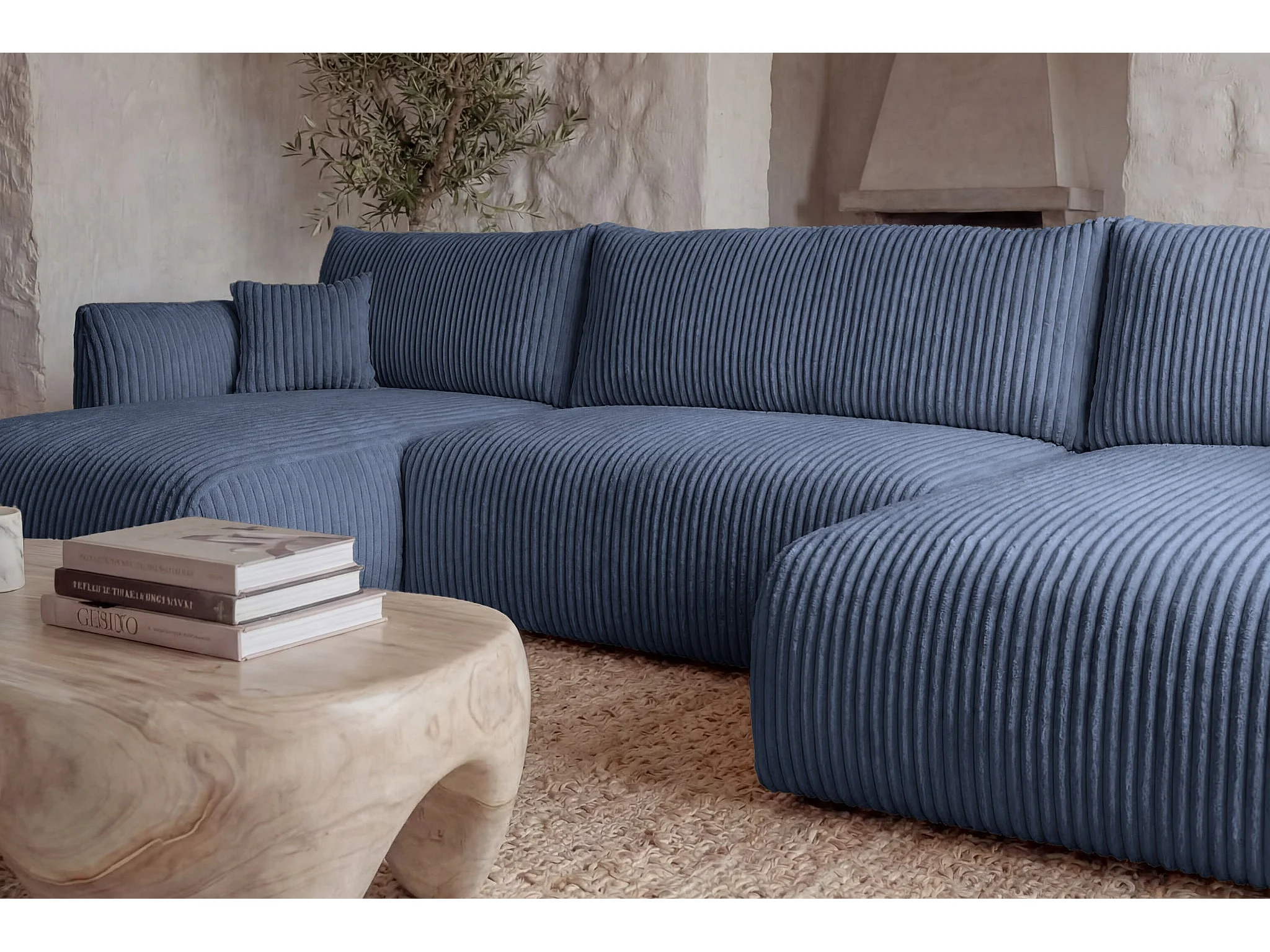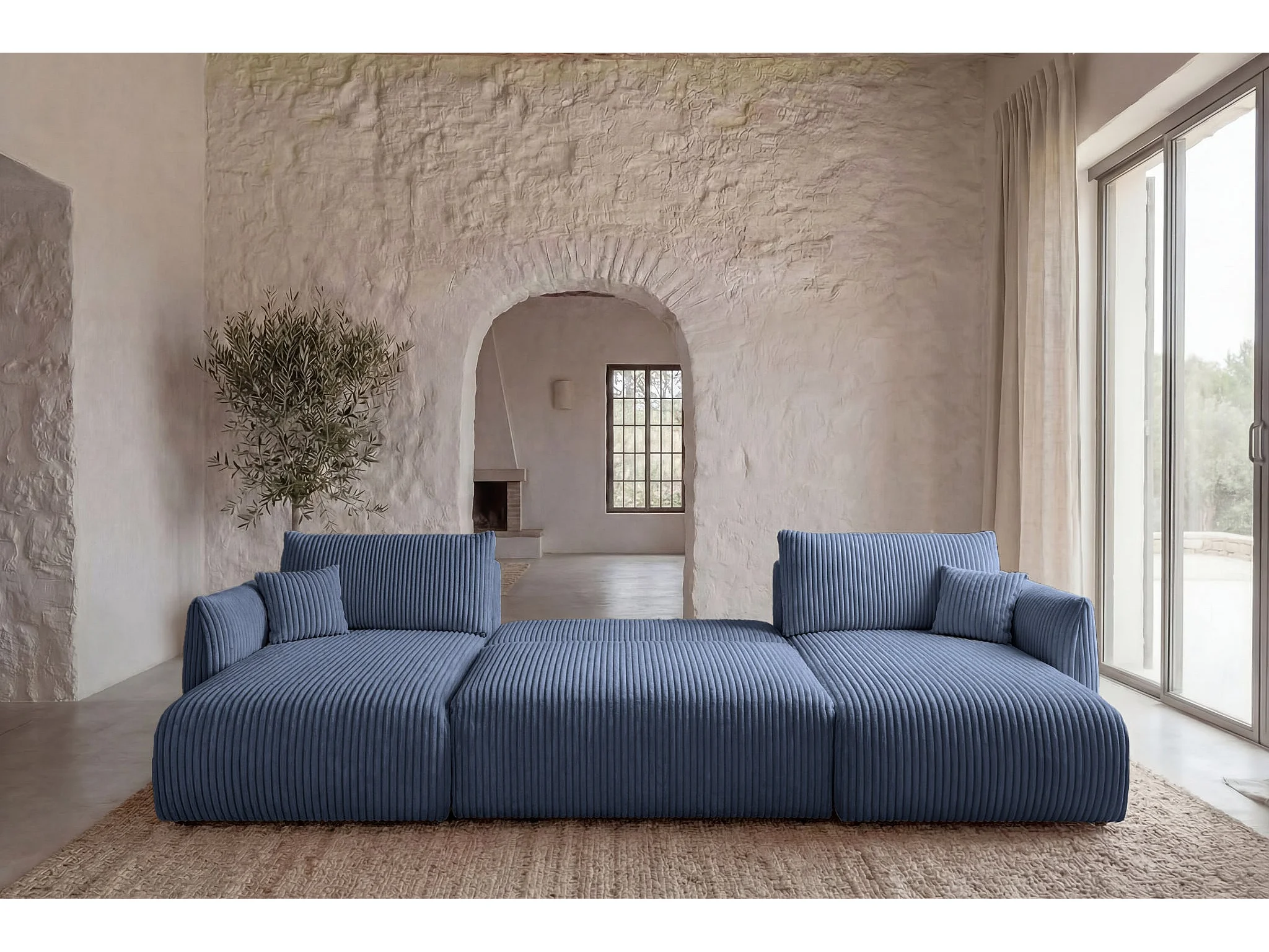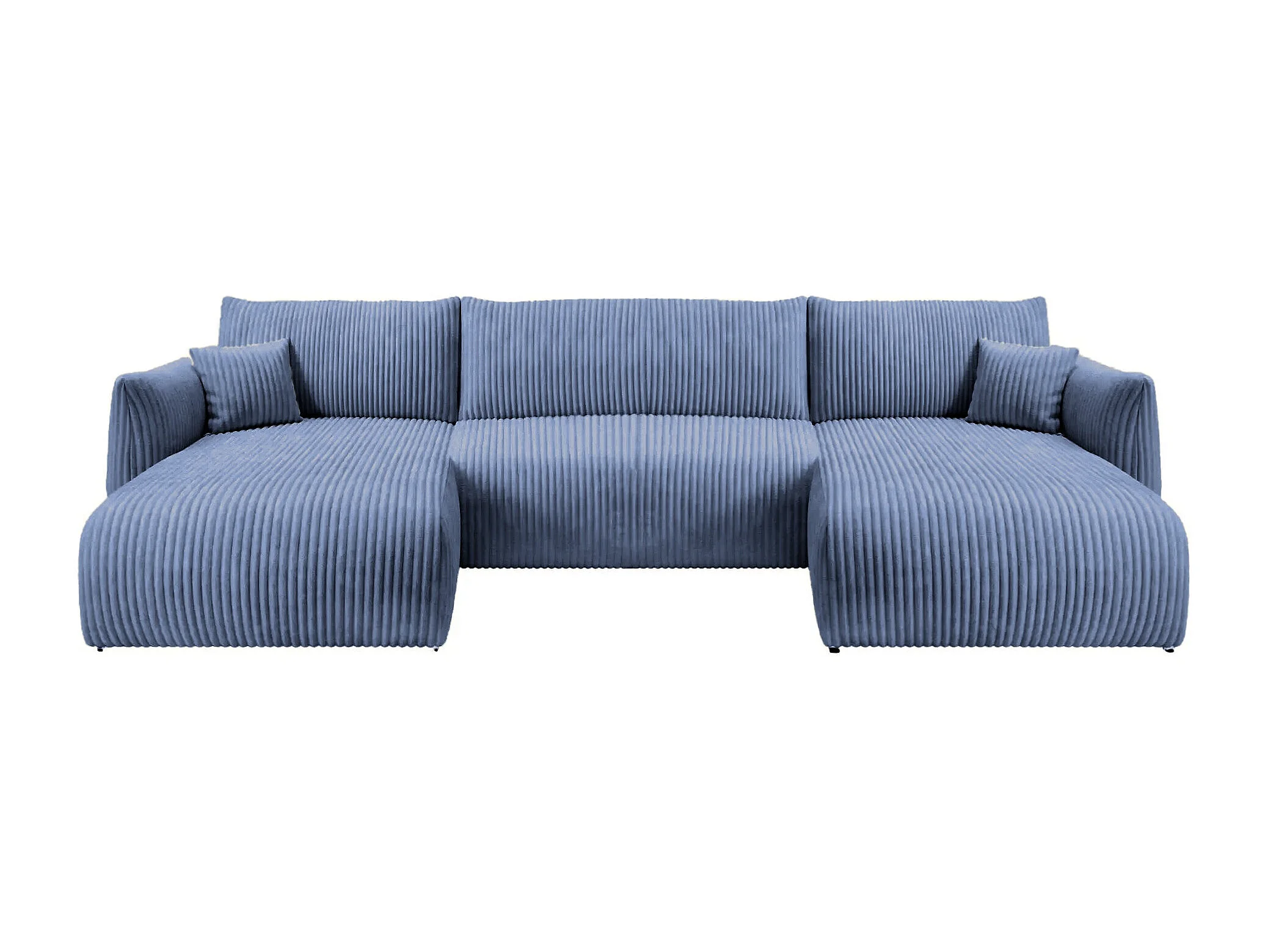 ELIO - Canapé panoramique convertible gros velours côtelé 5 places - Bleu