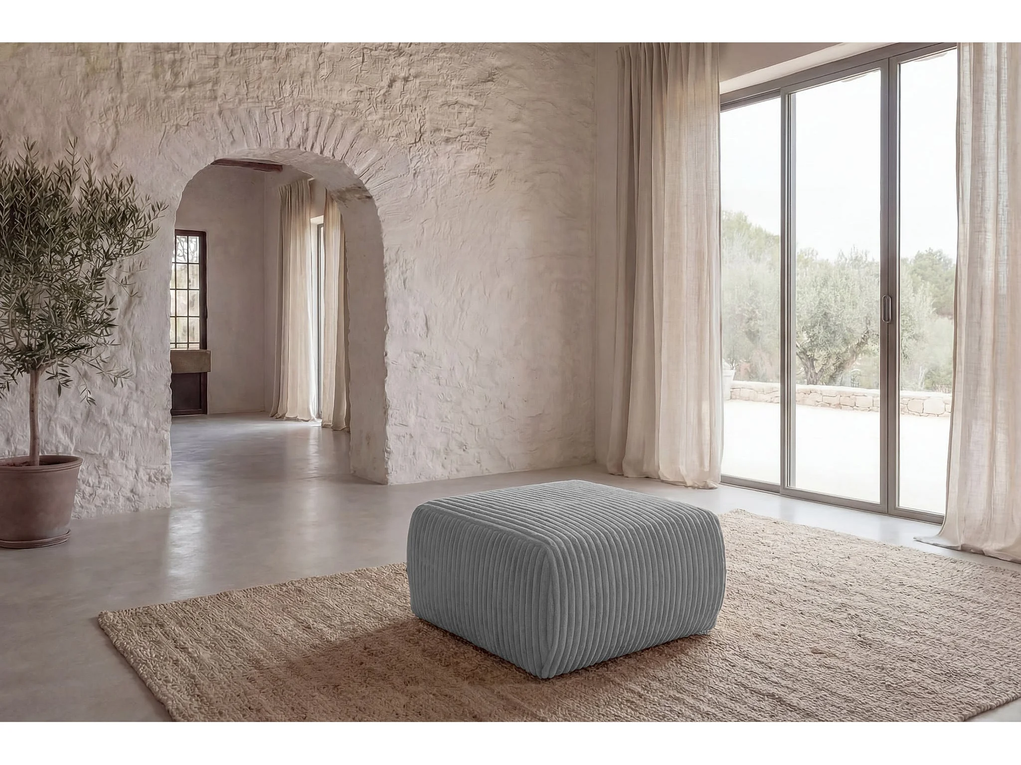 ELIO - Pouf en velours côtelé Gris clair 74x74x41