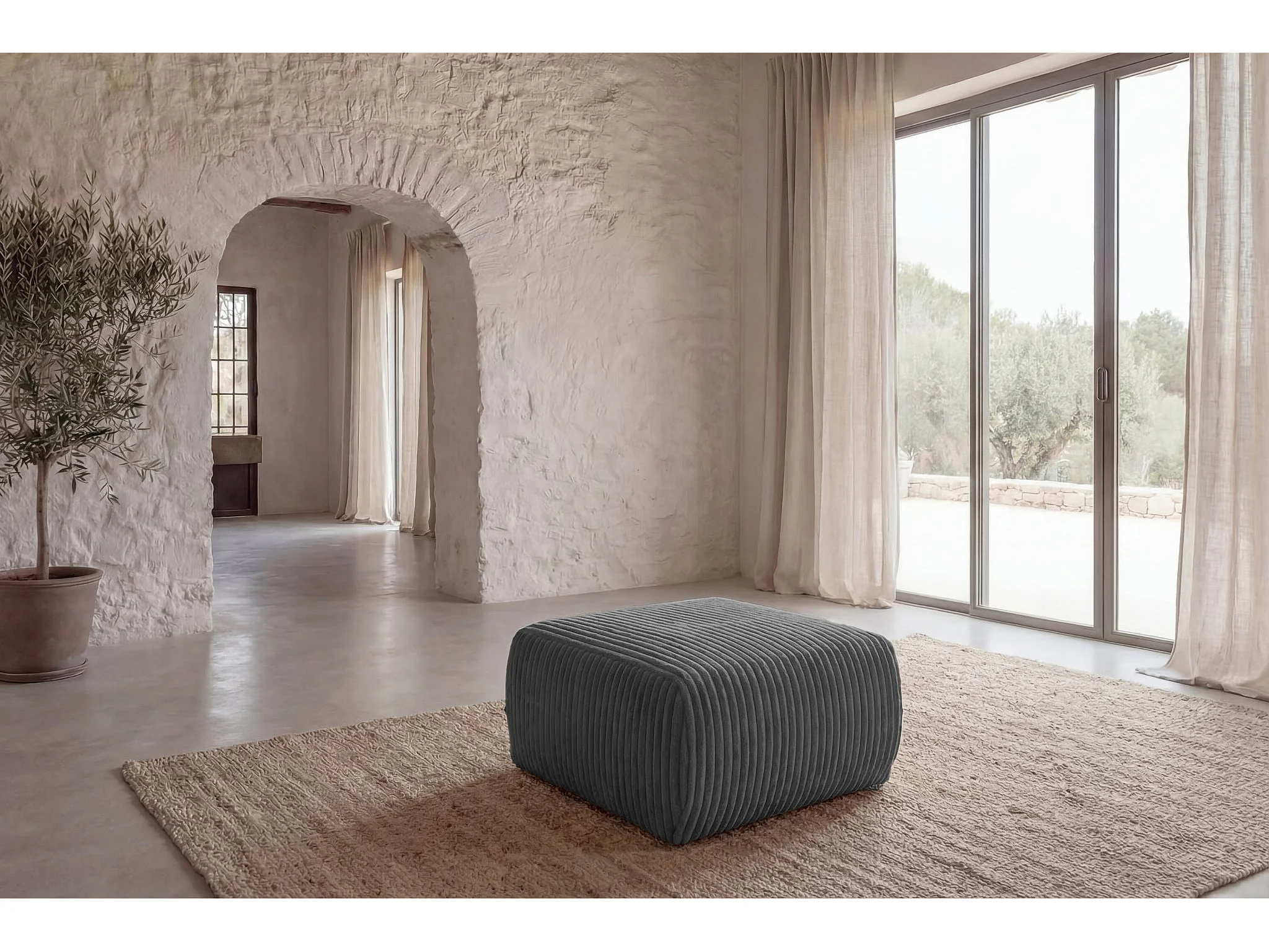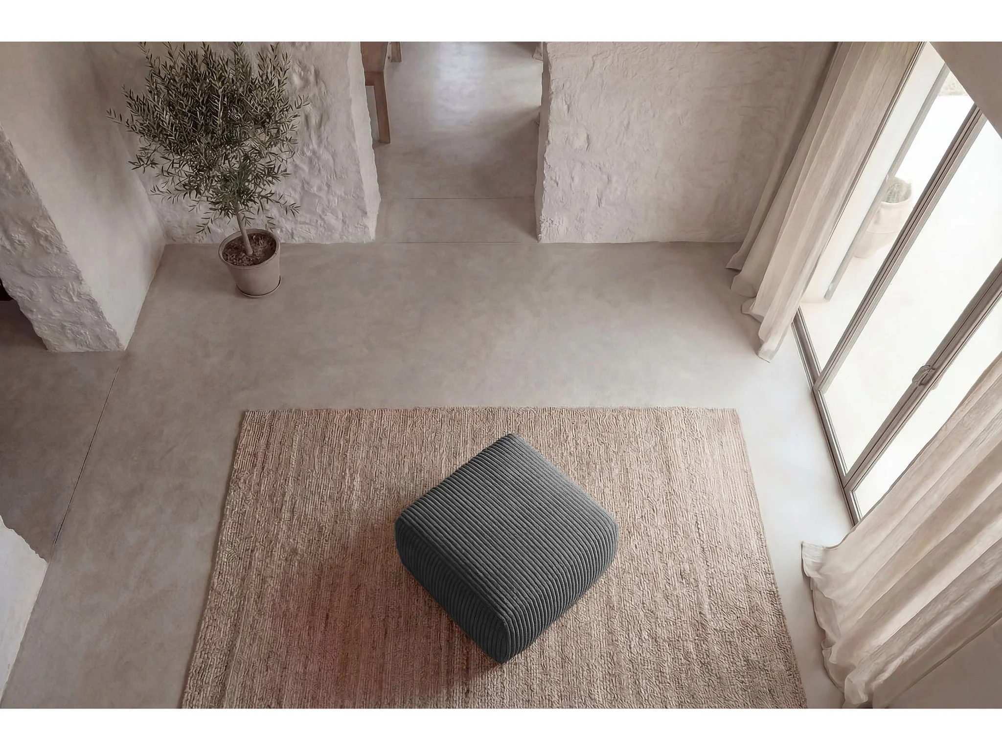 ELIO - Pouf velours côtelé - Gris foncé