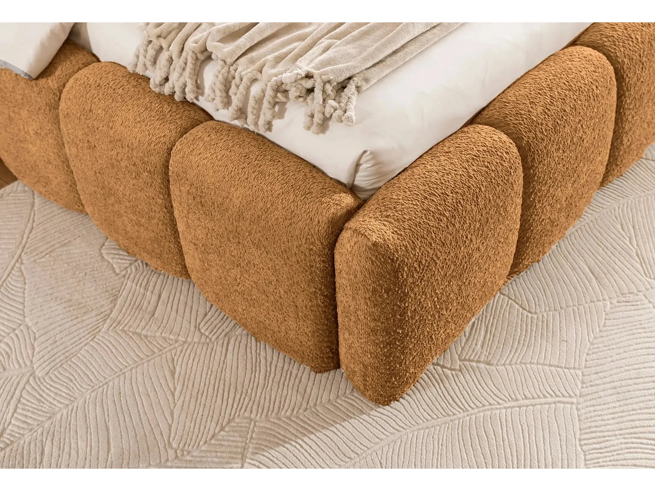 ELISE - Lit coffre tissu bouclette 140x200cm - Terracotta