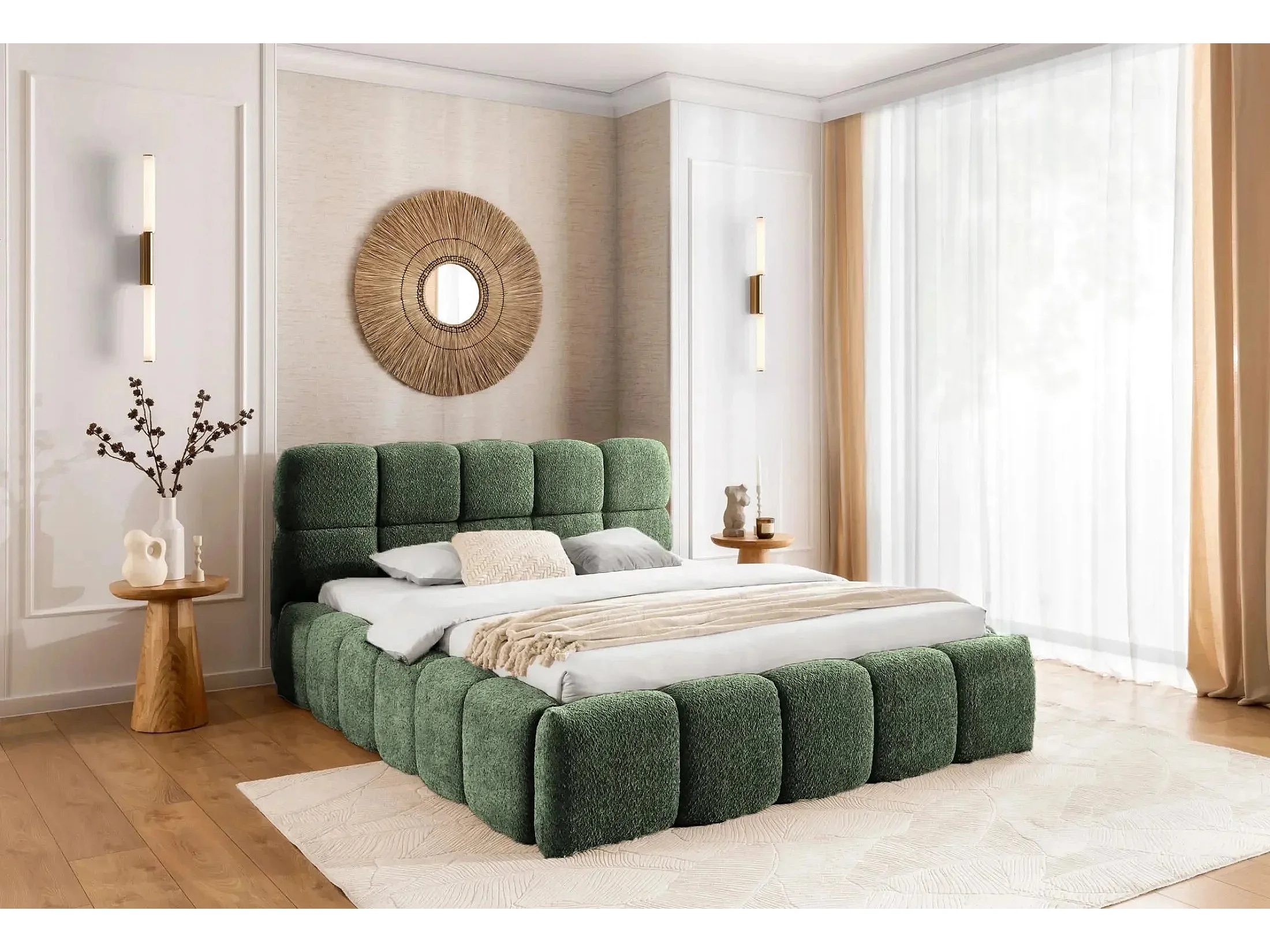 ELISE - Lit coffre tissu bouclette 160x200cm - Vert