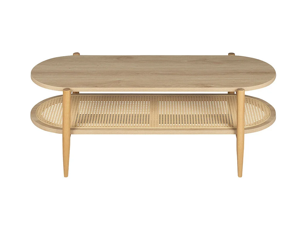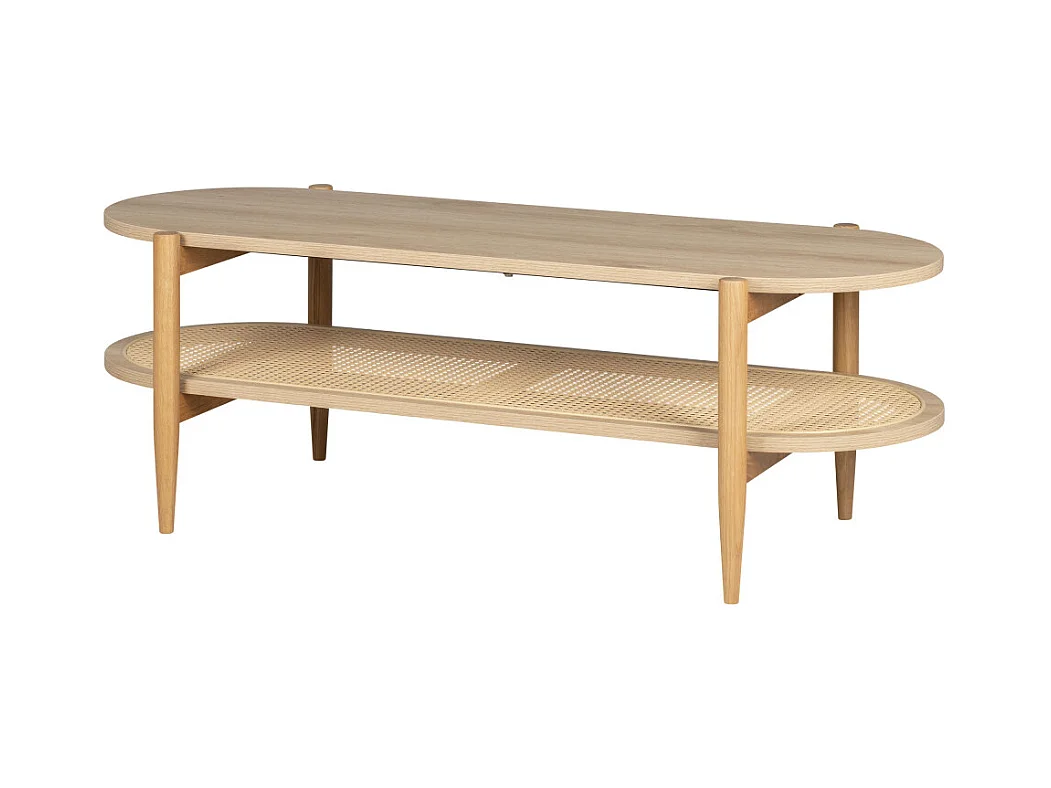 Ellos - Table basse ovale en bois et cannage - Bois clair