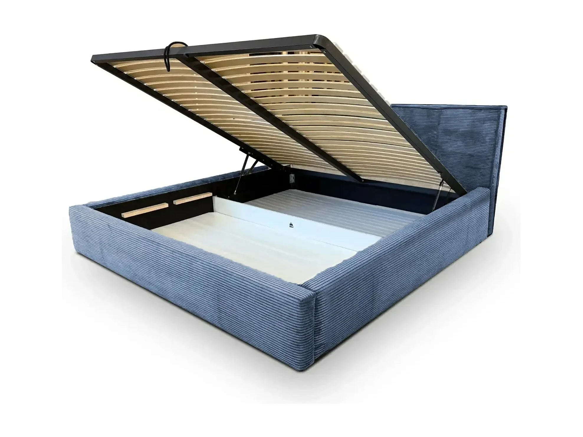 ELOISE - Lit coffre velours côtelé 140x200cm - Bleu