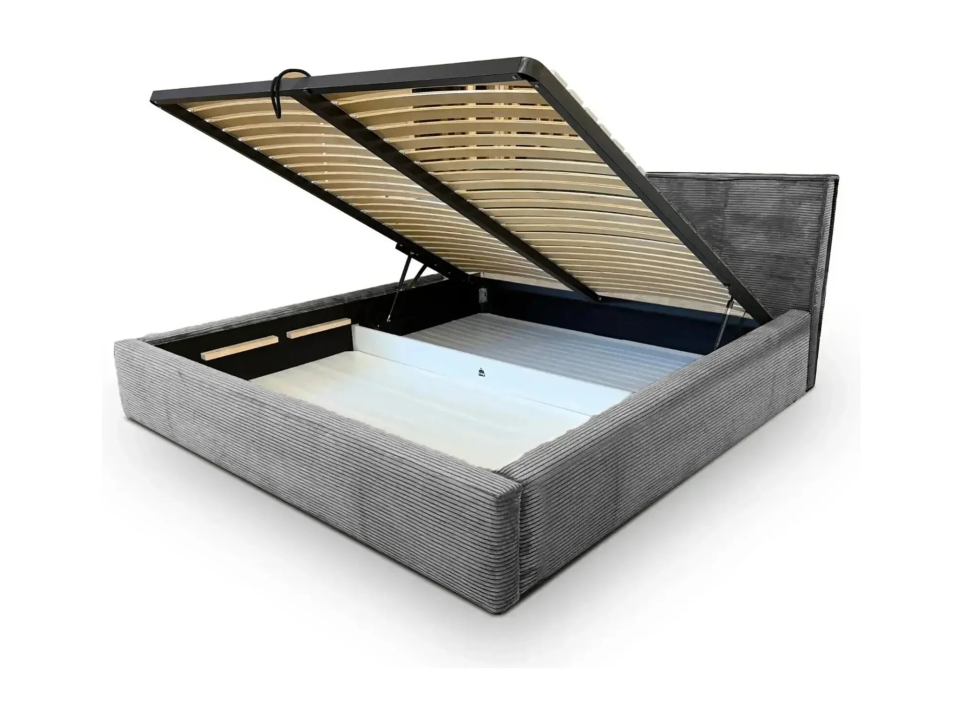 ELOISE - Lit coffre velours côtelé 160x200cm - Gris foncé