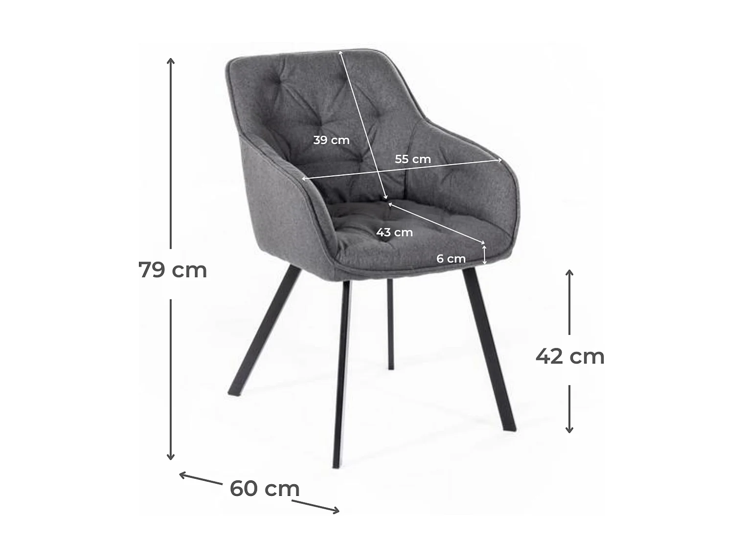 Elsa Chaise en tissu gris foncé 2 pcs