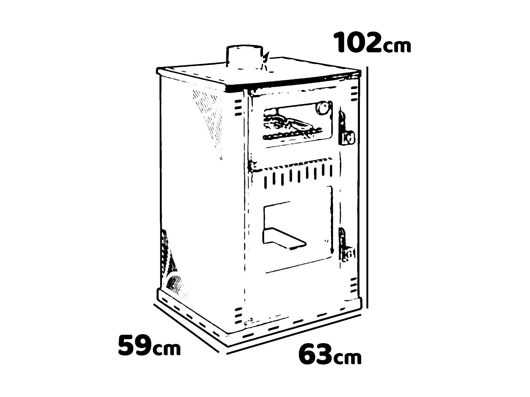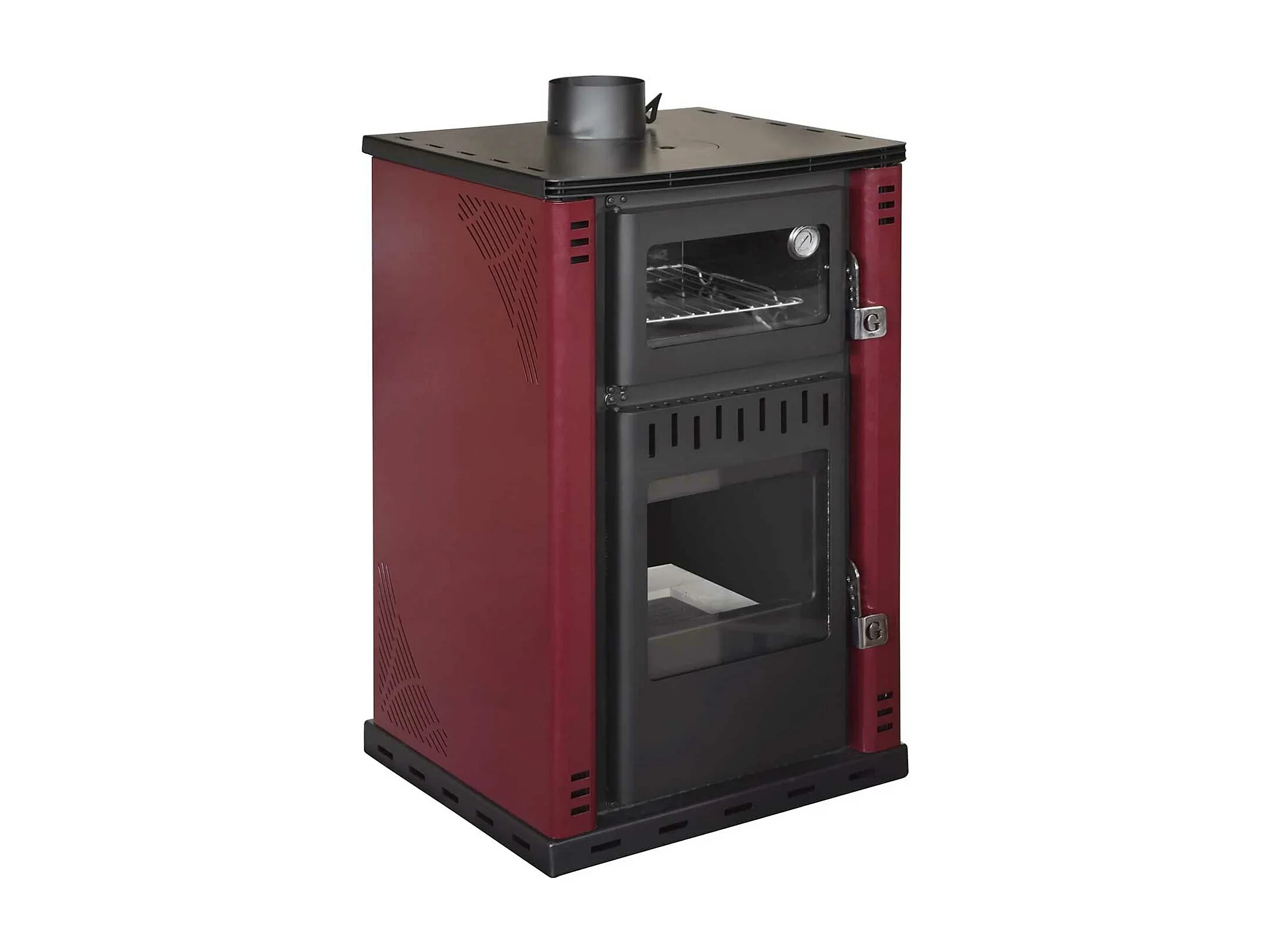 Elsa - Poêle à bois avec four et chaudière 38L 62x59xH102 cm, rouge
