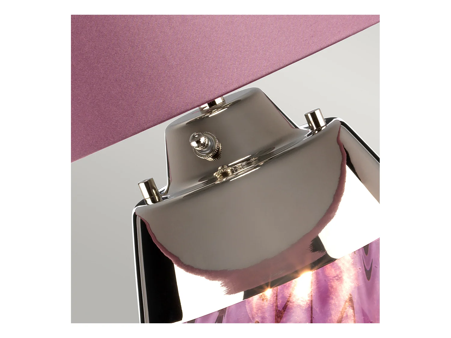 Elstead Lena Petite Lampe de Table Prune à 2 Lumières, Verre Teinté Prune, Abat-Jour Heather, E27