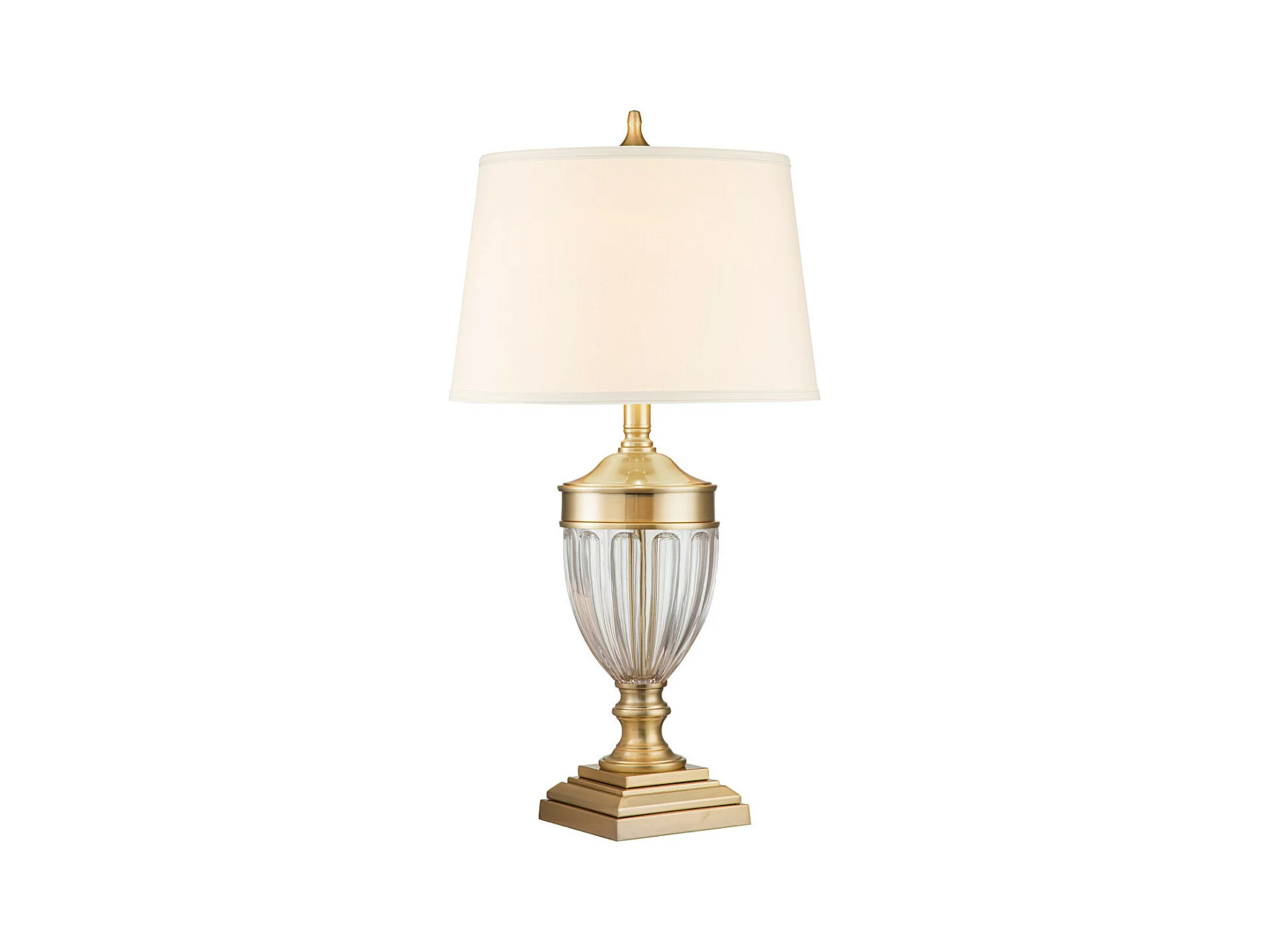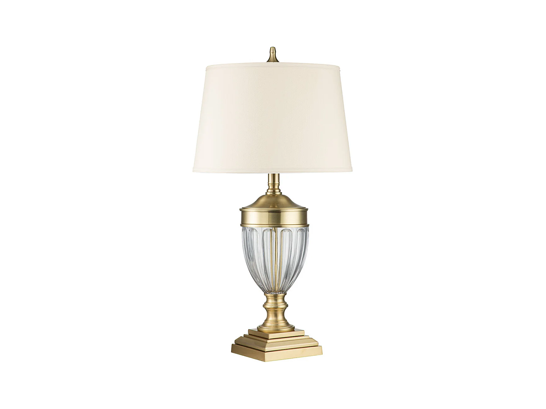 Elstead Quoizel Dennison Lampe de table avec abat-jour conique rond laiton brossé