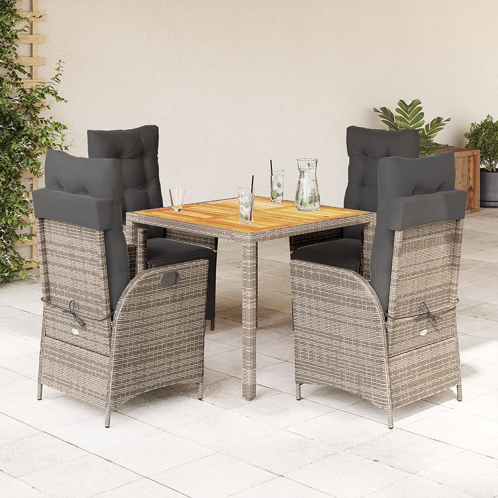 Elviraa Ensemble à manger de jardin 5 pcs coussins gris résine tressée