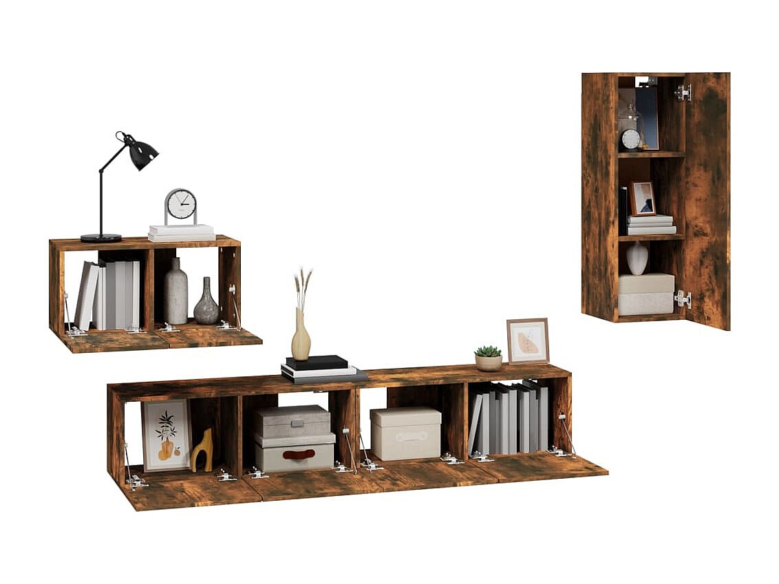 Elwin Ensemble de meubles TV 4 pcs Chêne fumé Bois d'ingénierie