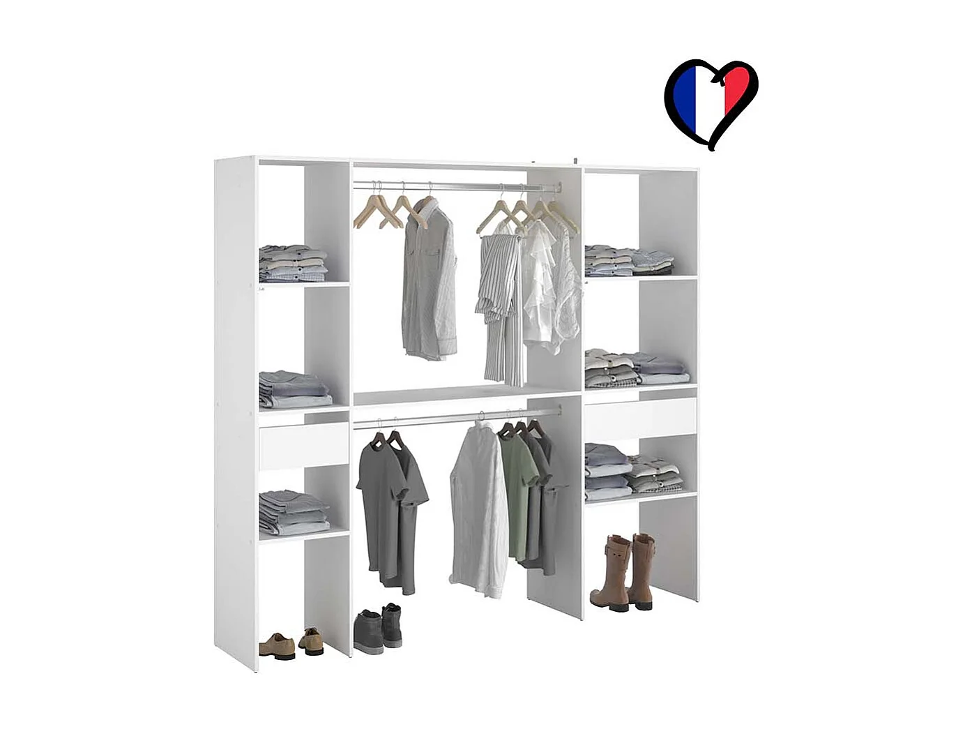 Dressing blanc 2 penderies, 6 étagères, 2 tiroirs ELYSEE