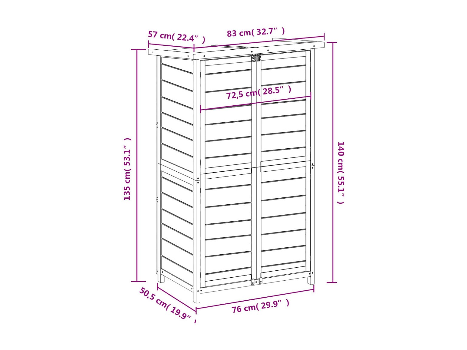 Émilien-Paul Abri à outils de jardin moka 83x57x140 cm bois massif pin