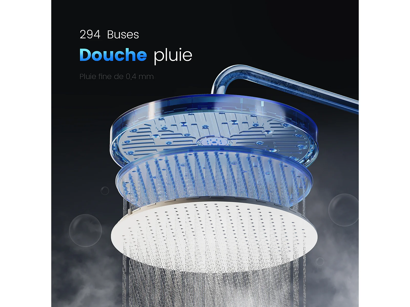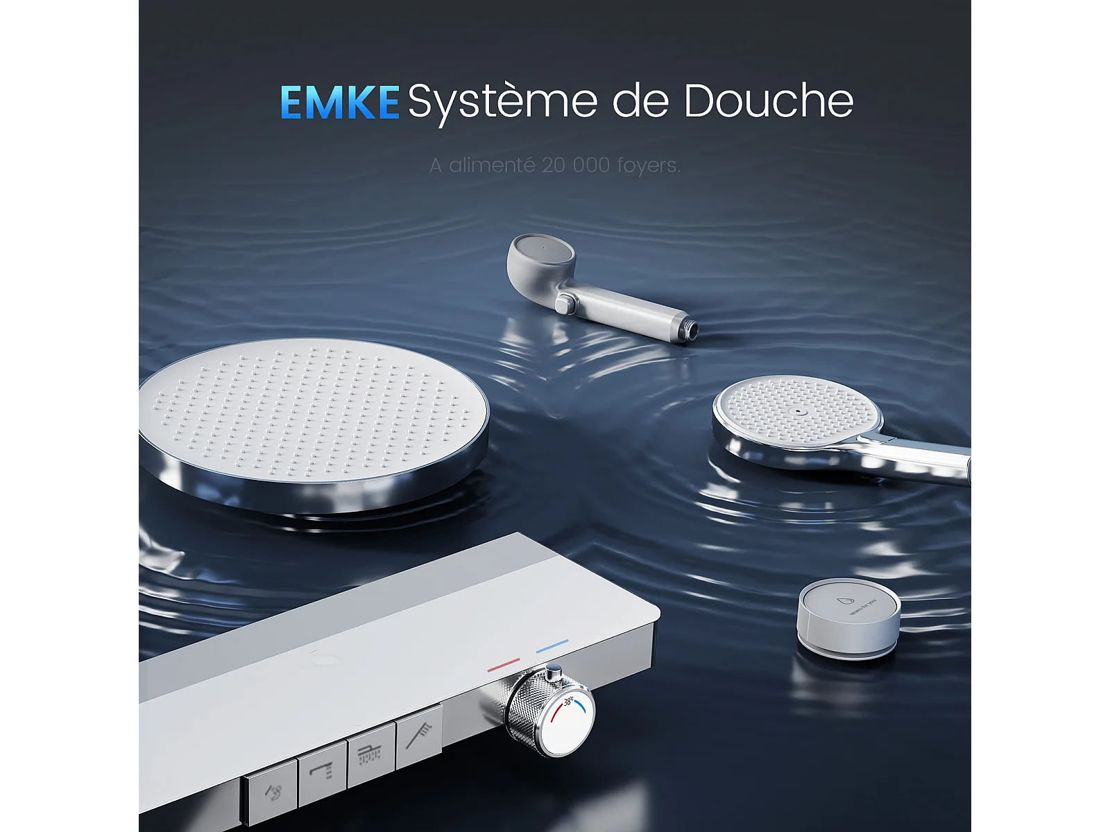 EMKE Colonne de douche avec thermostat 38℃ Douche pluie 40 cm étagère en verre avec 3+1 douchette parent-enfant+porte-douche - chromé