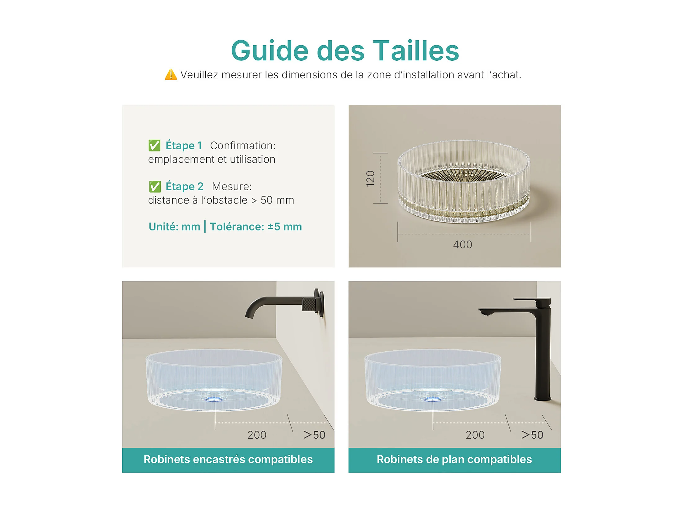 EMKE Lavabo en Verre Trempé Rond à Poser 400x400x120 mm, Vasque Salle de Bain, Champagne Gold