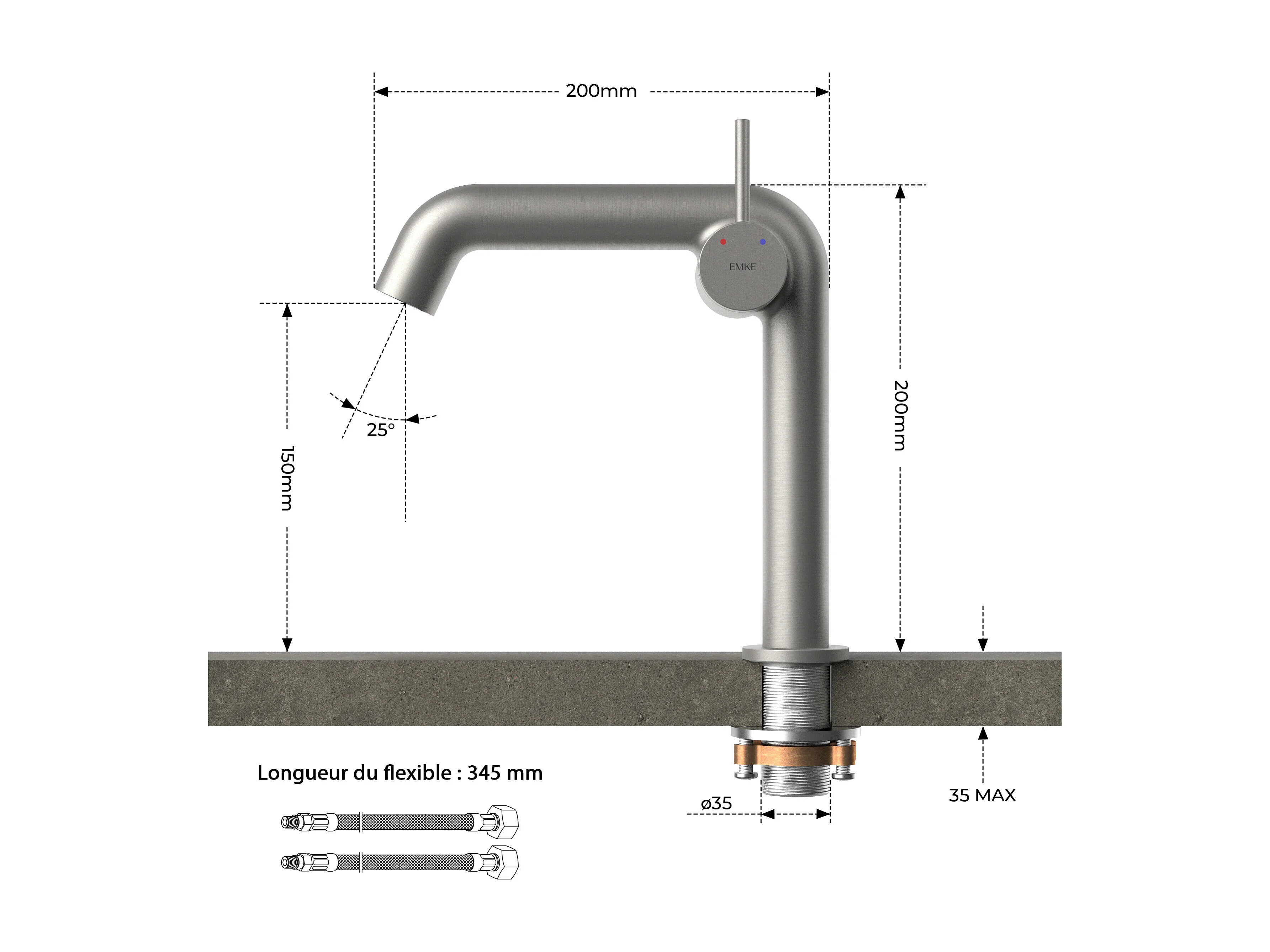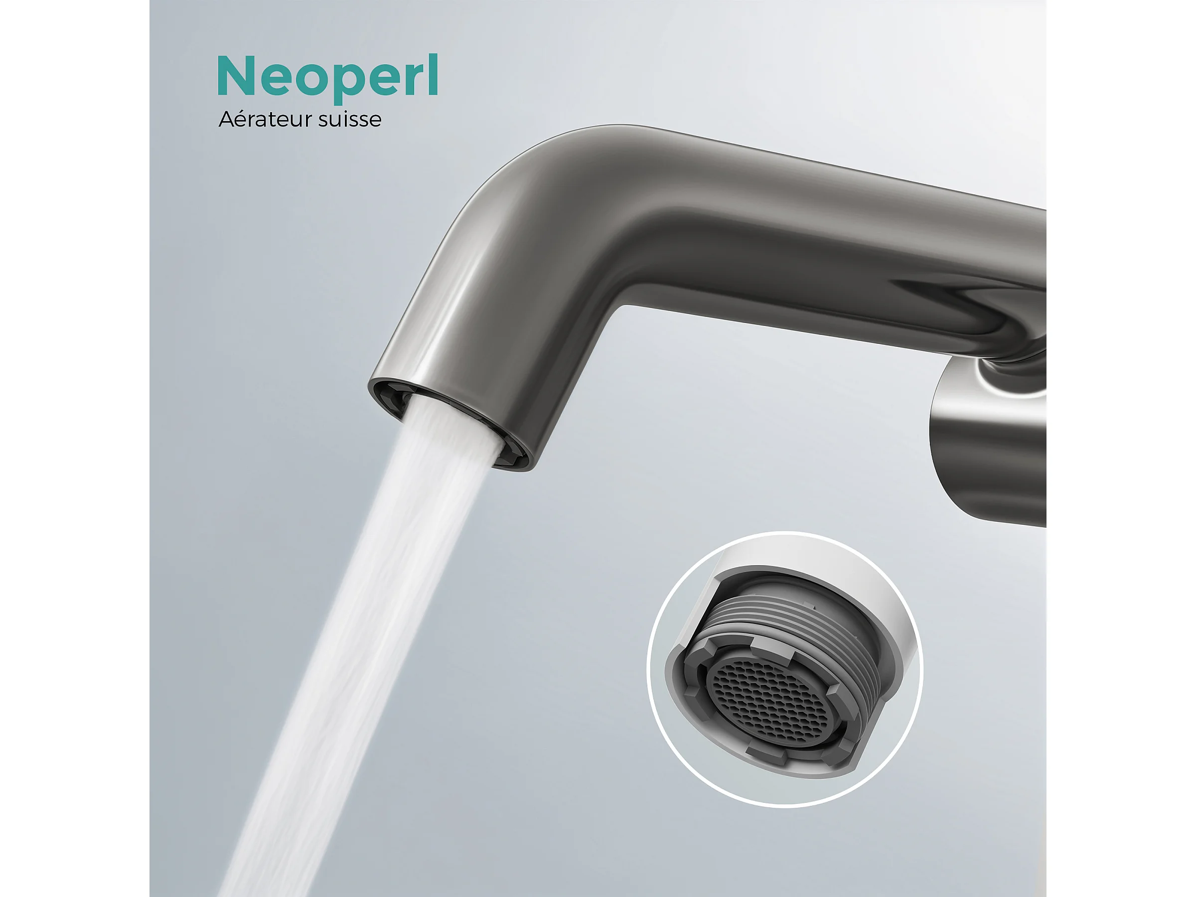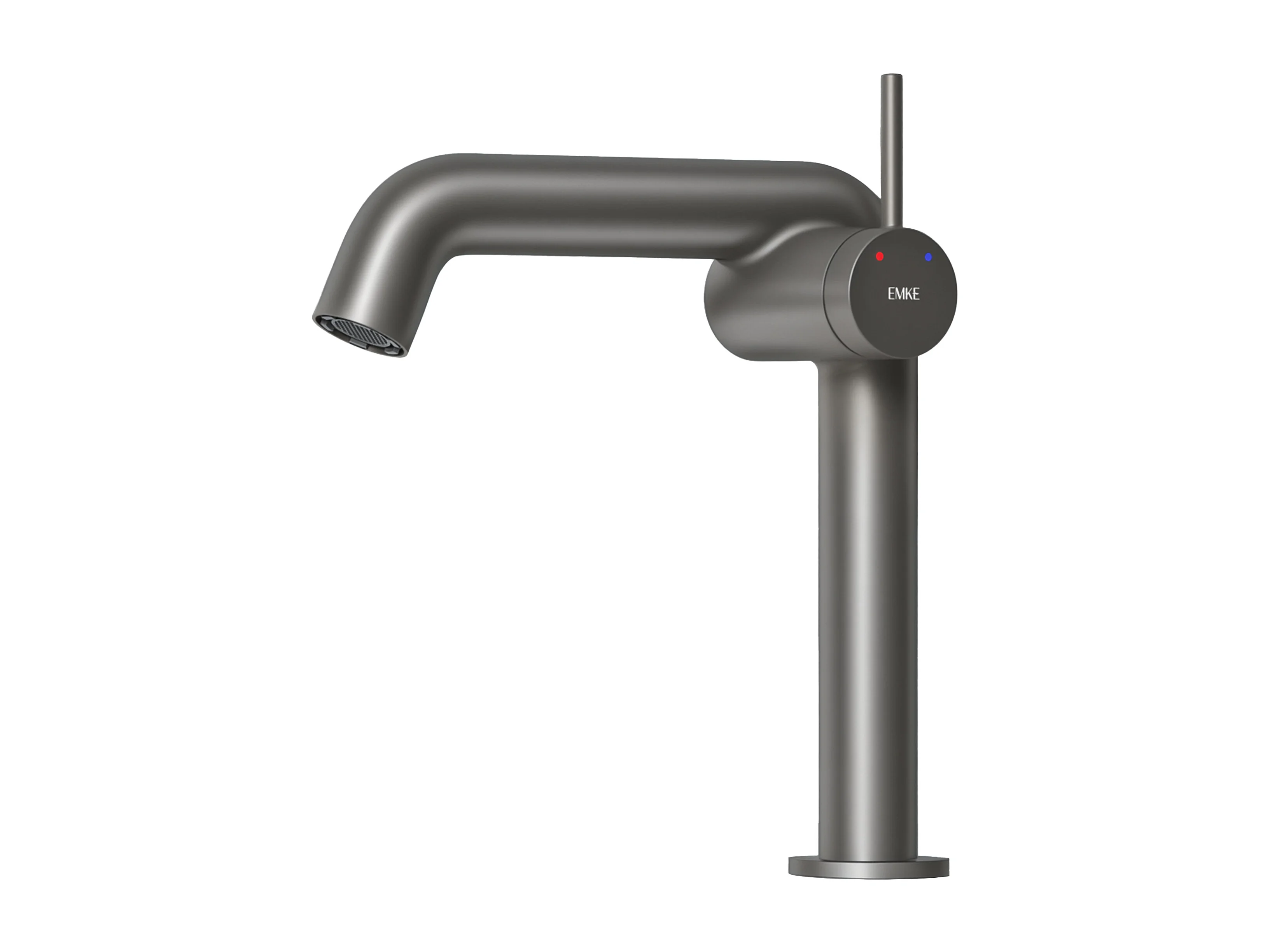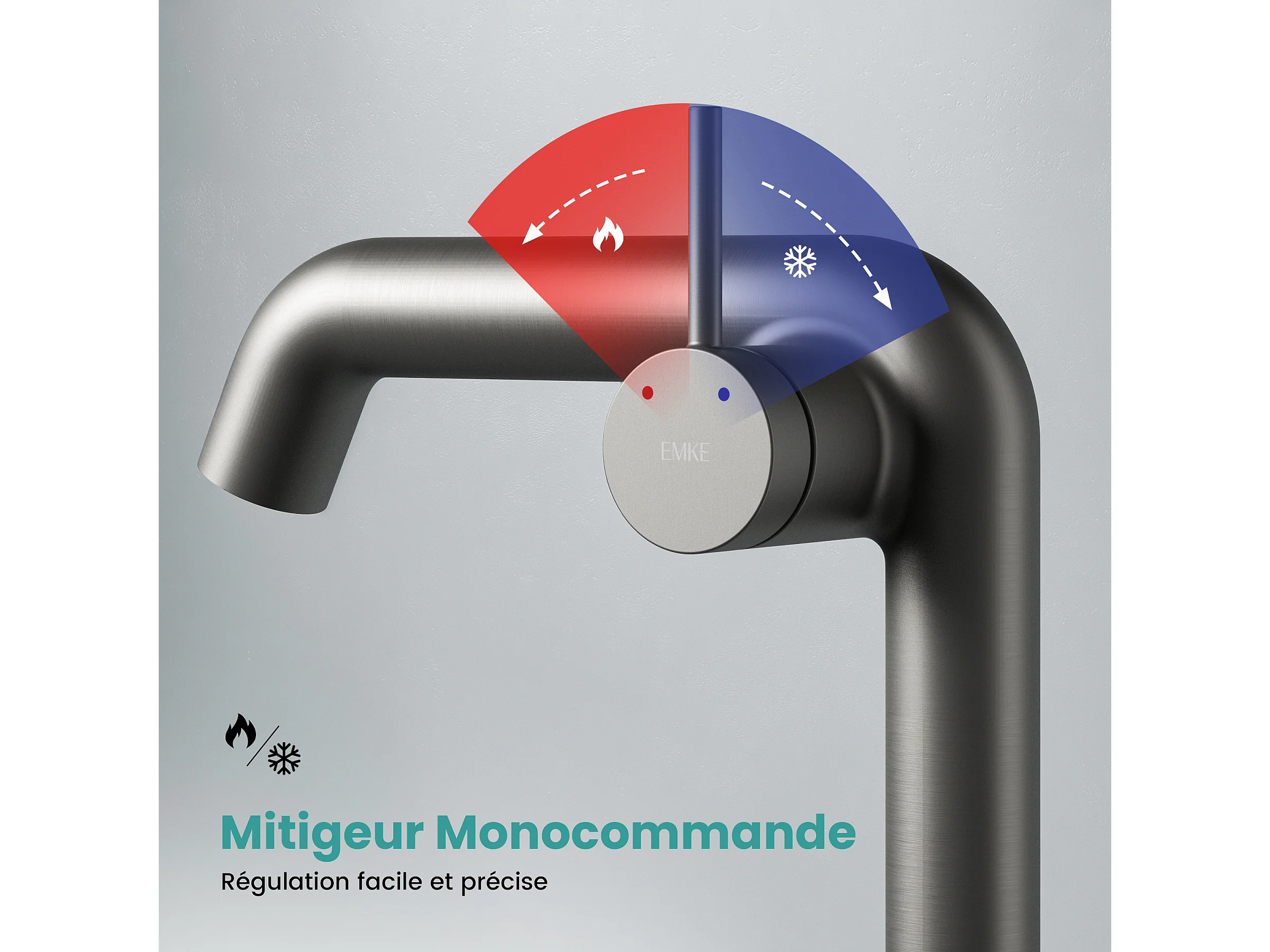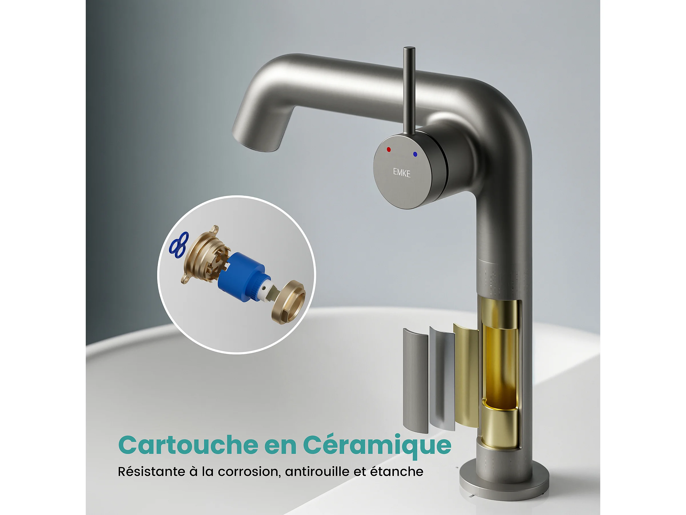 EMKE Mitigeur de lavabo design anthracite en laiton avec cartouche céramique H.22,2x20 cm