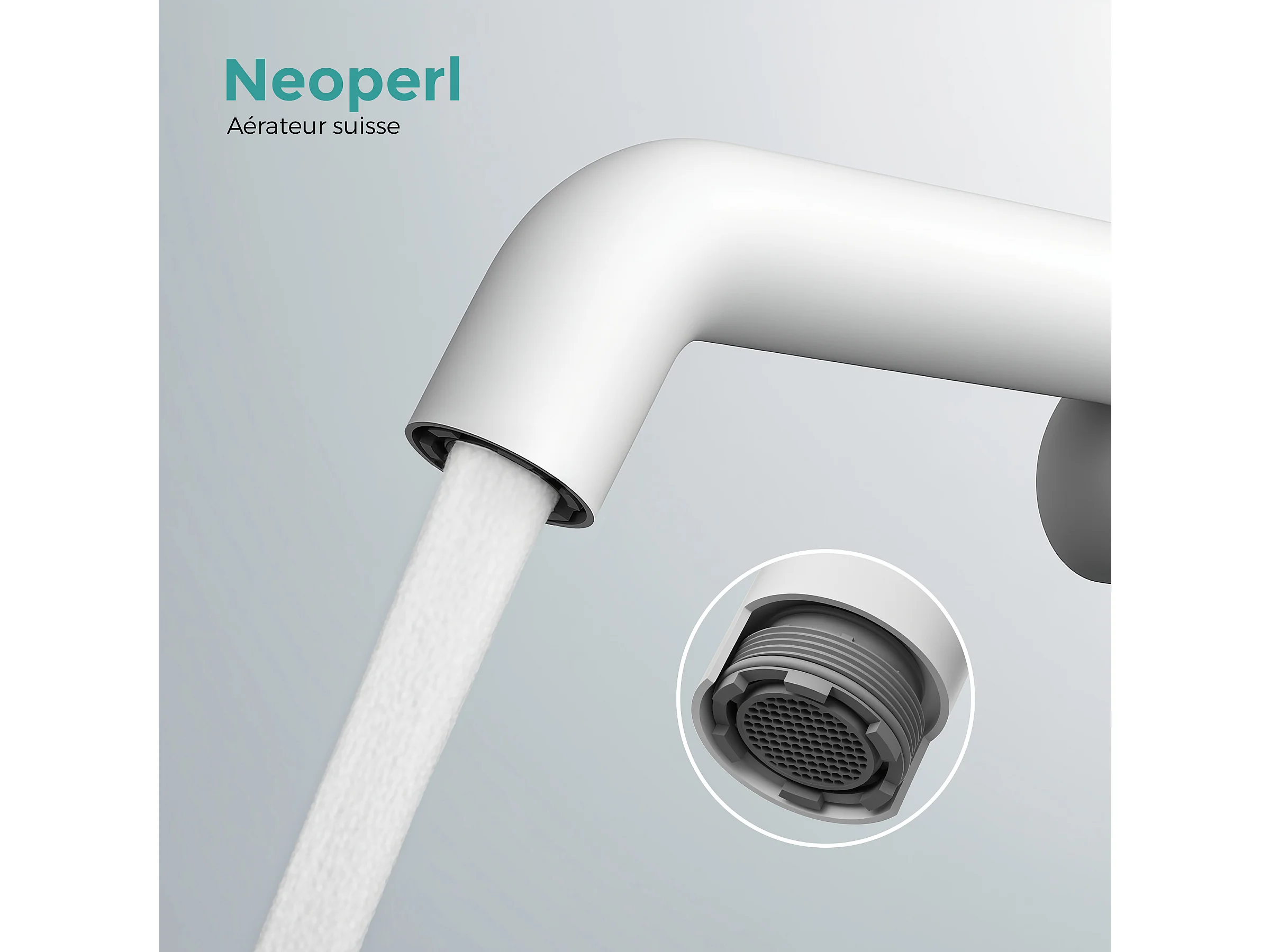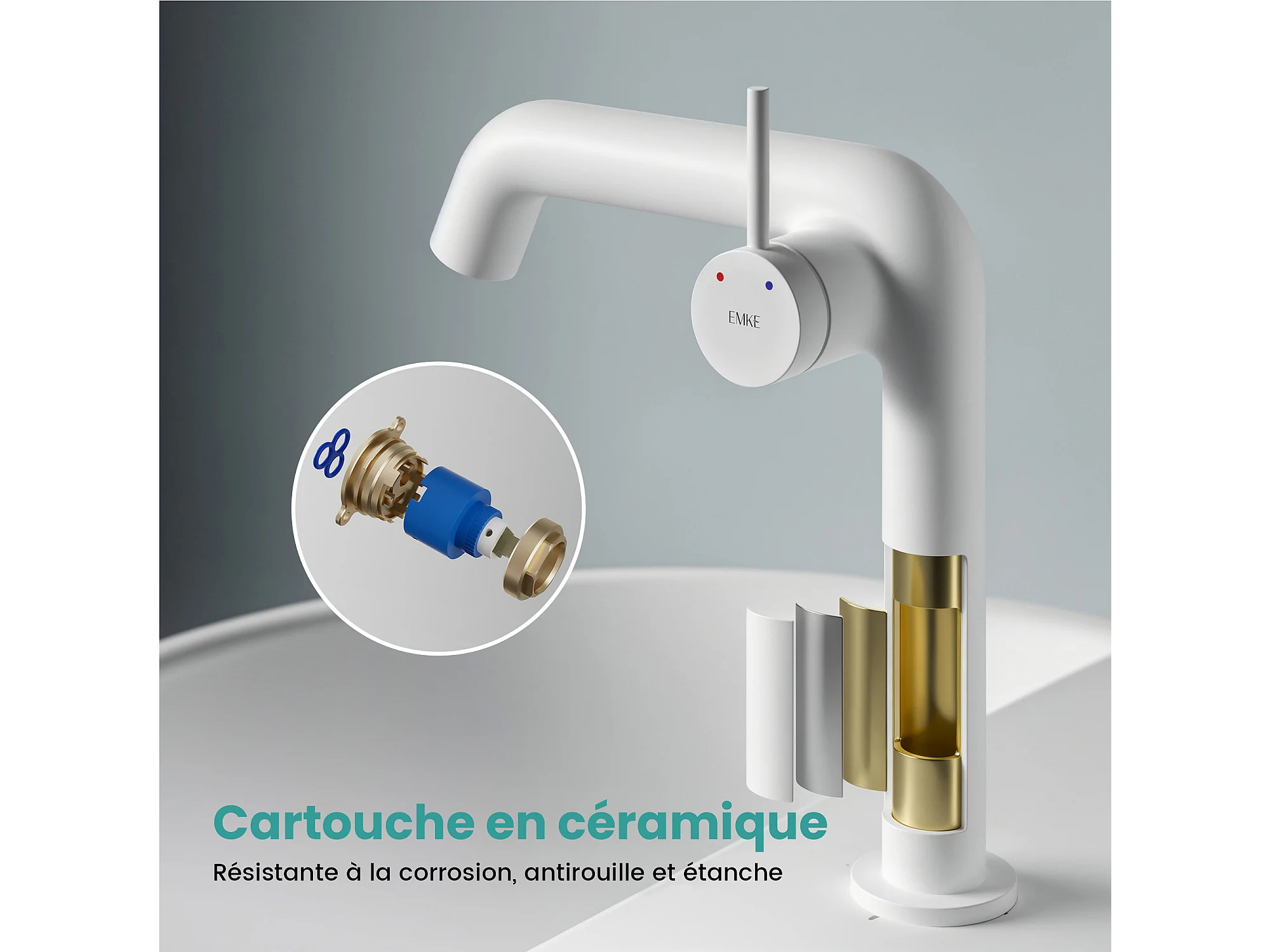 EMKE Mitigeur de lavabo design blanc mat en laiton avec cartouche céramique H.22,2x20 cm