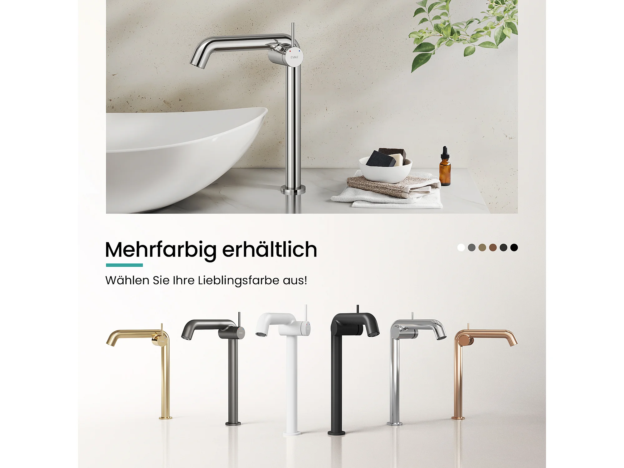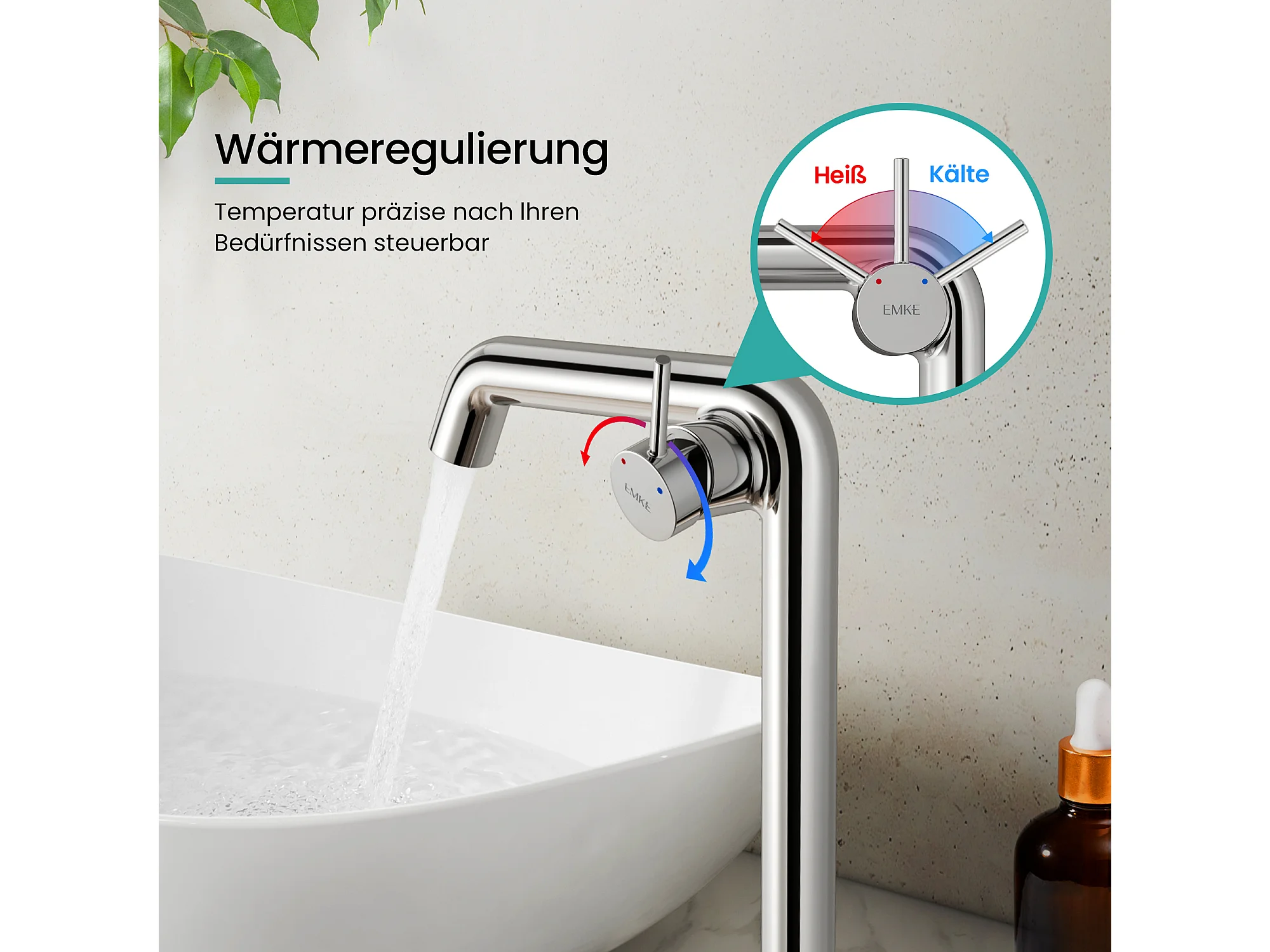 EMKE Mitigeur de lavabo haut design chromé en laiton avec cartouche céramique H.33,2x22 cm