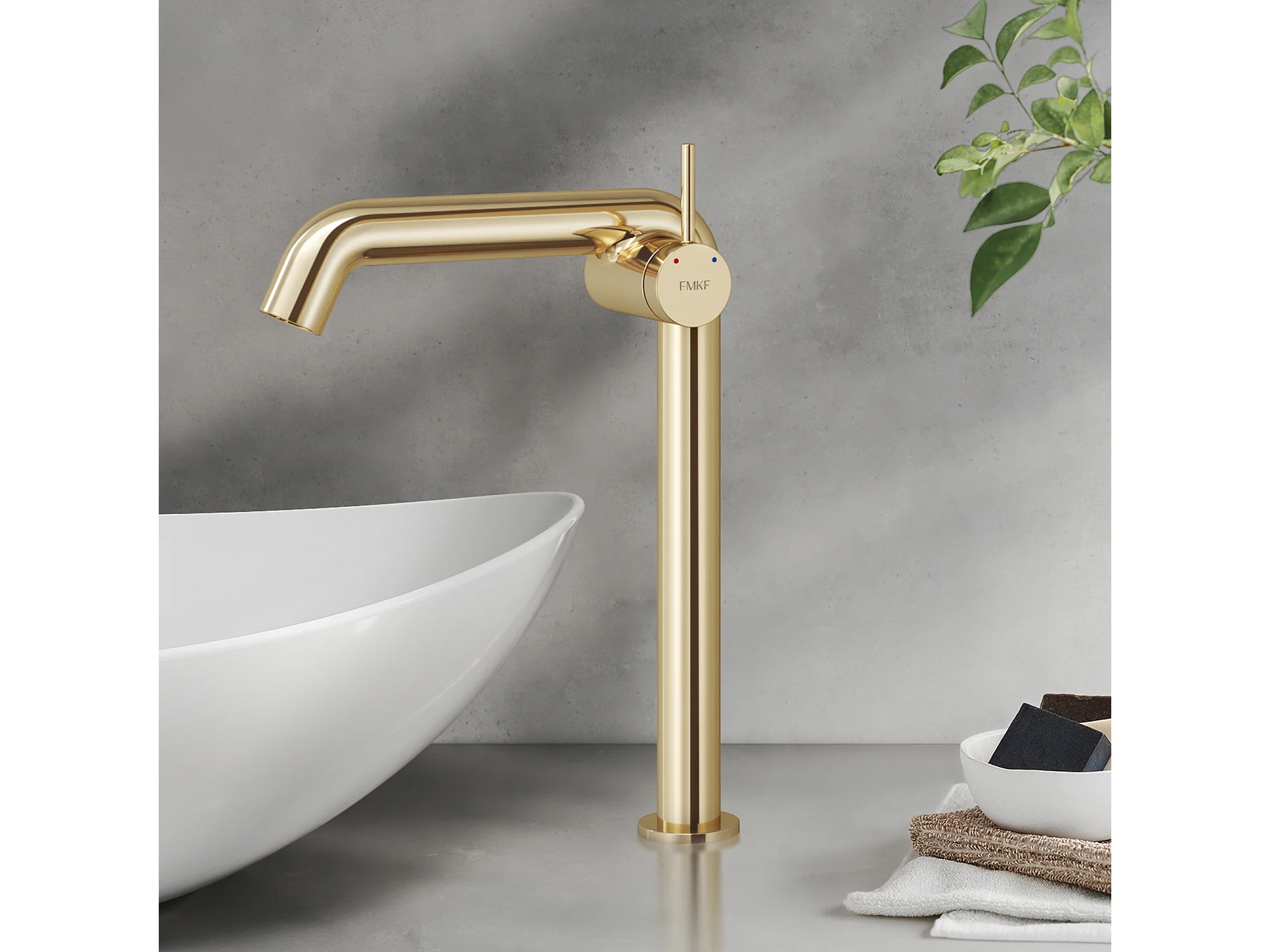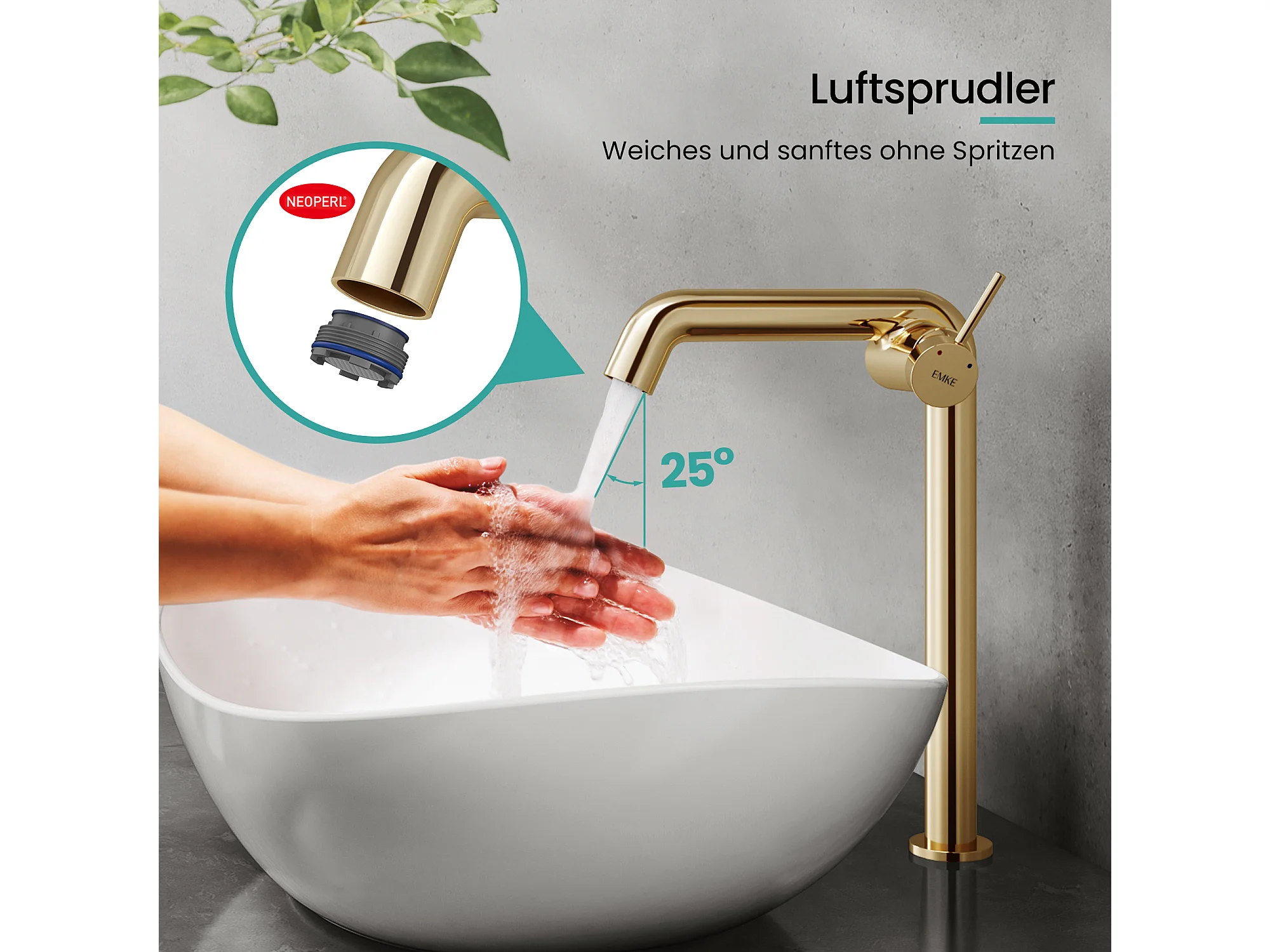 EMKE Mitigeur de lavabo haut design or champagne en laiton avec cartouche céramique H.33,2x22 cm