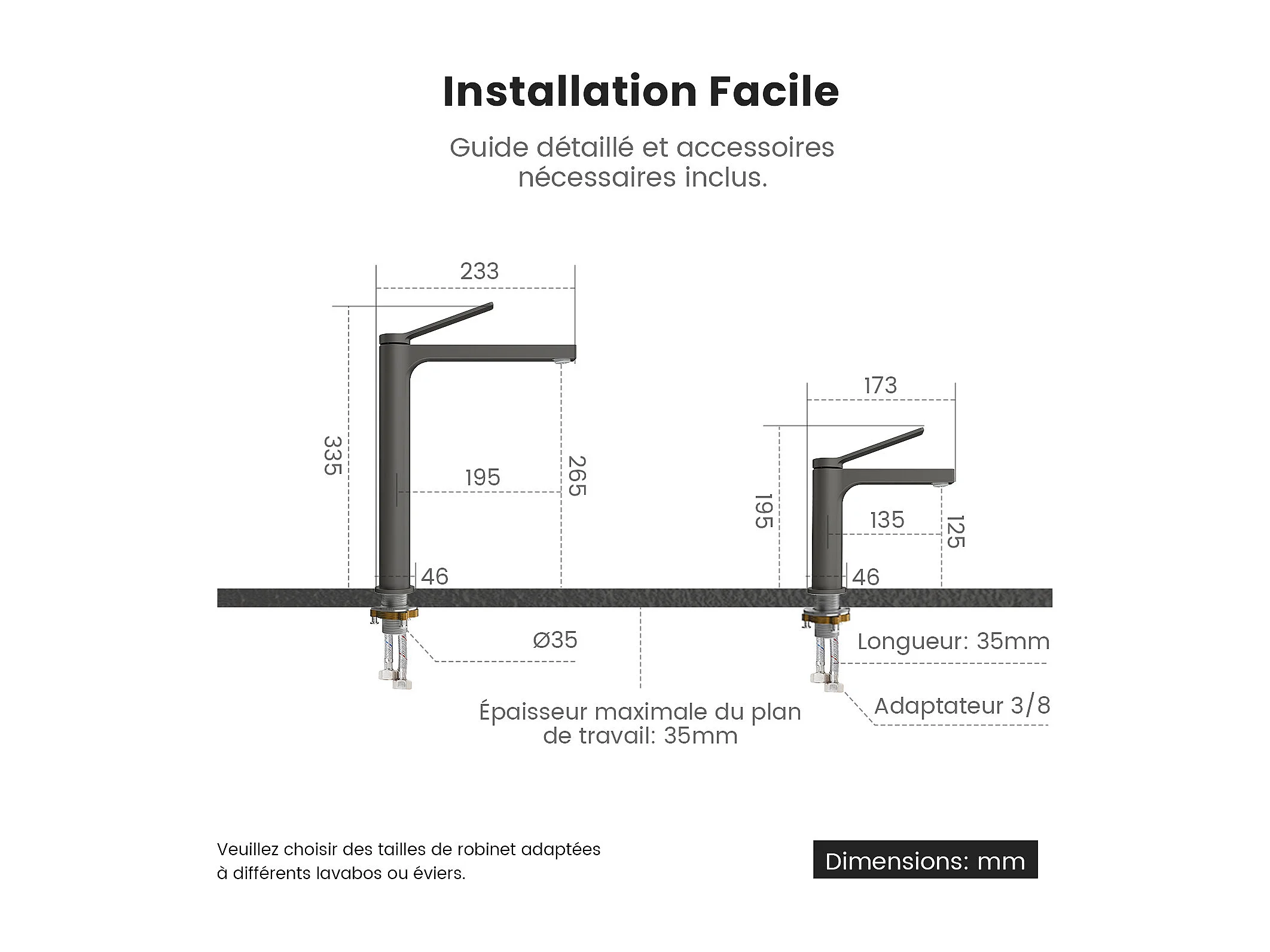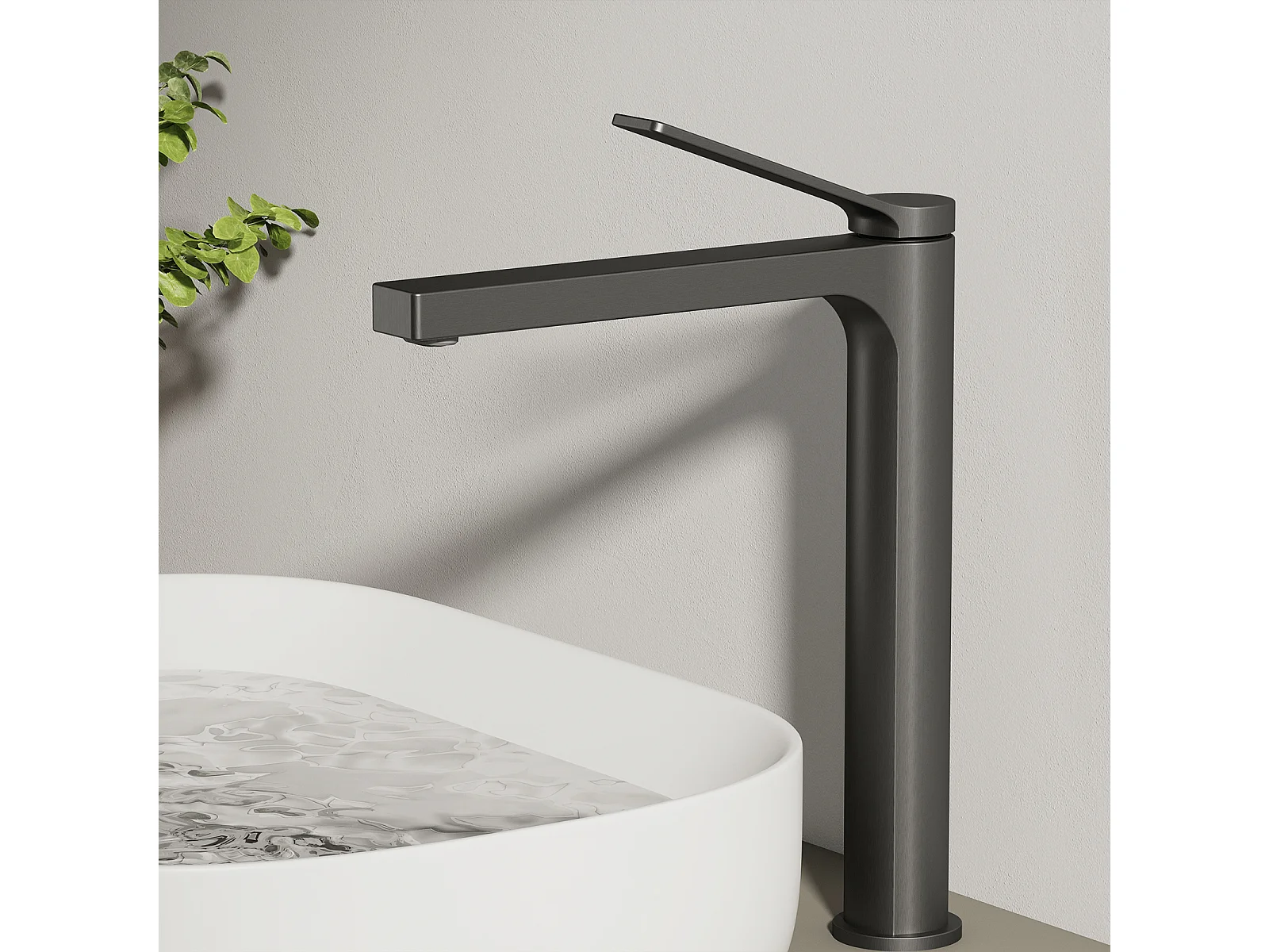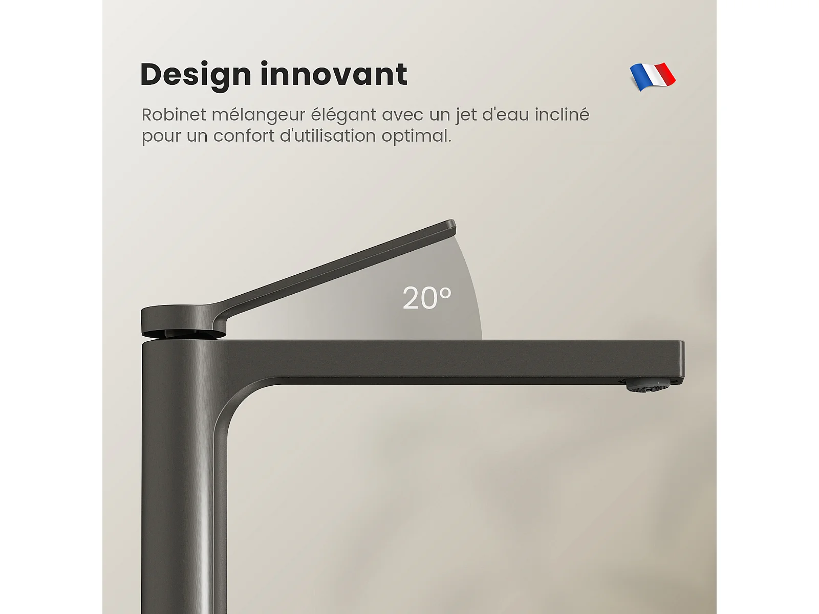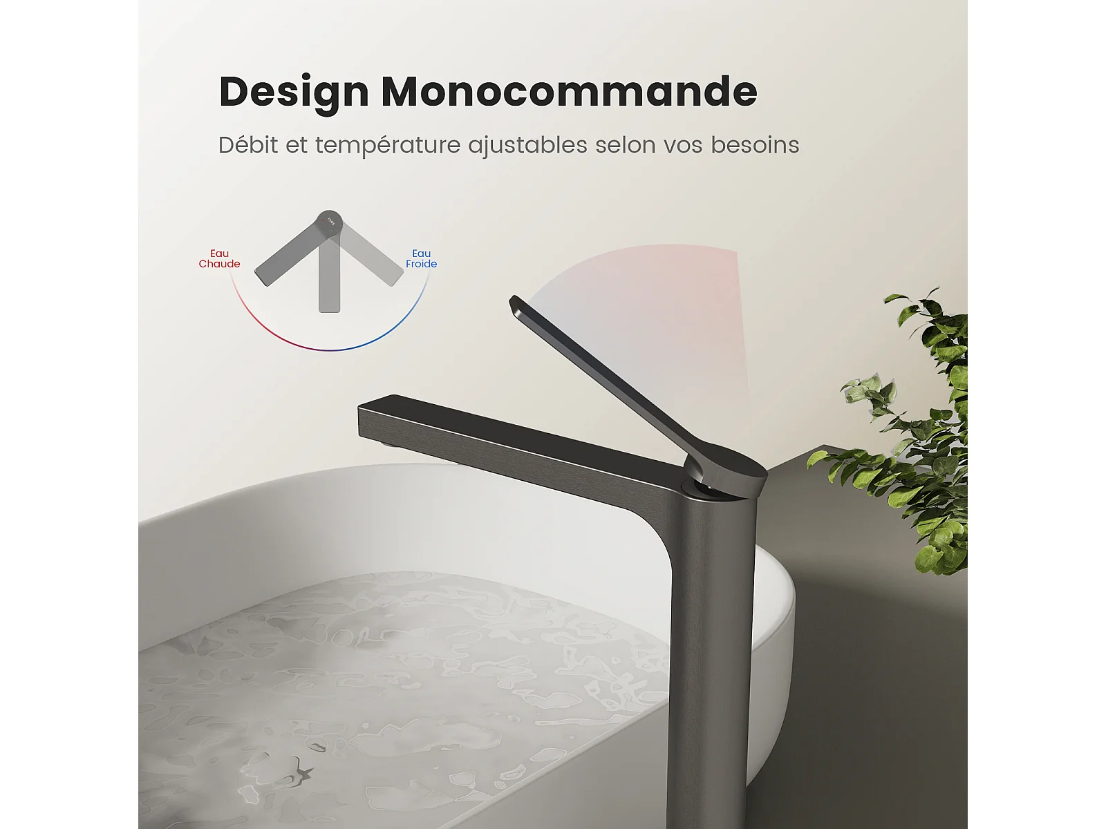 EMKE Mitigeur de lavabo haut salle de bain anthracite cartouche céramique laiton H.33,5 x L.23,3 cm