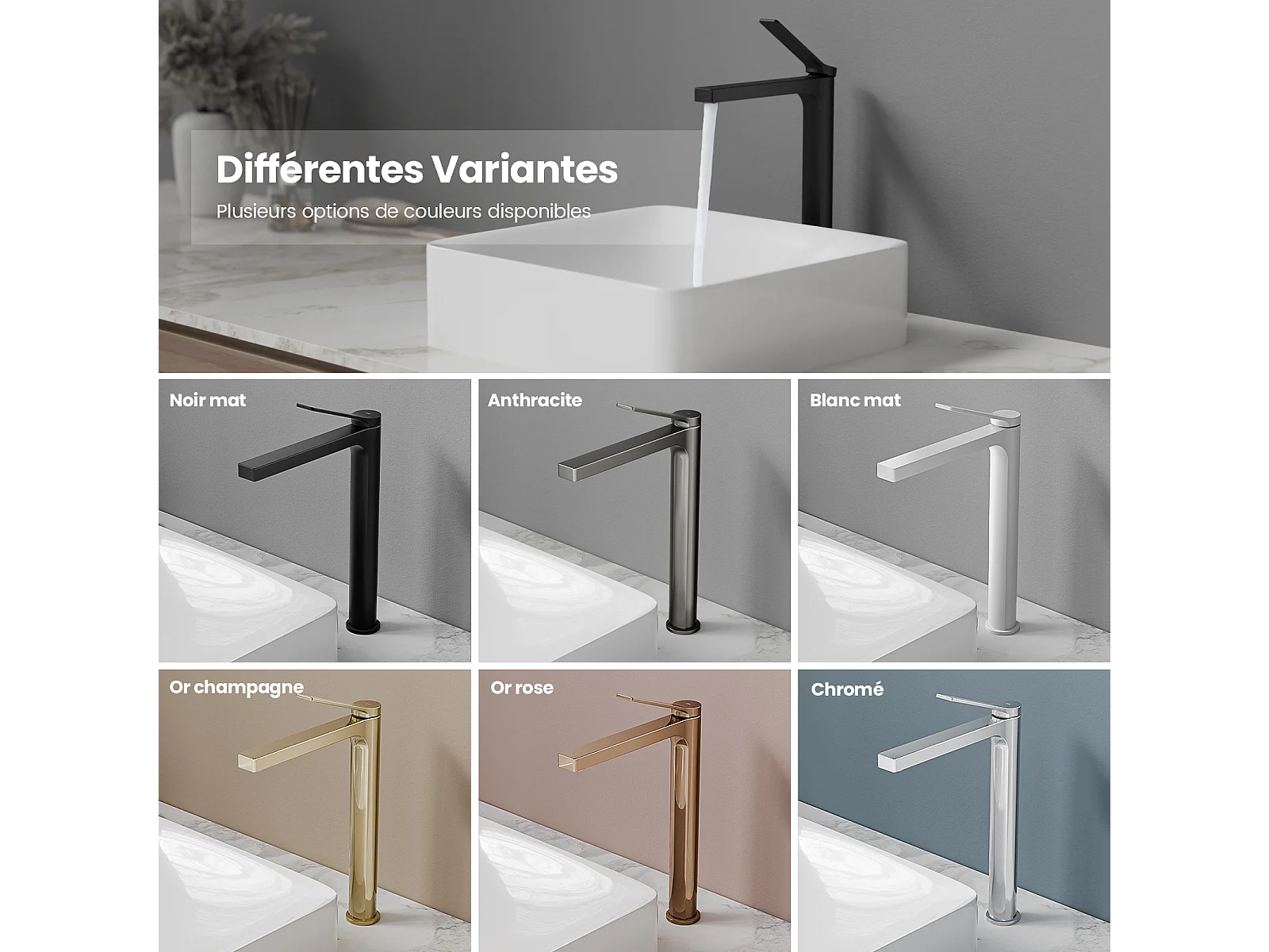 EMKE Mitigeur de lavabo haut salle de bain noir mat cartouche céramique laiton H.33,5 x L.23,3 cm