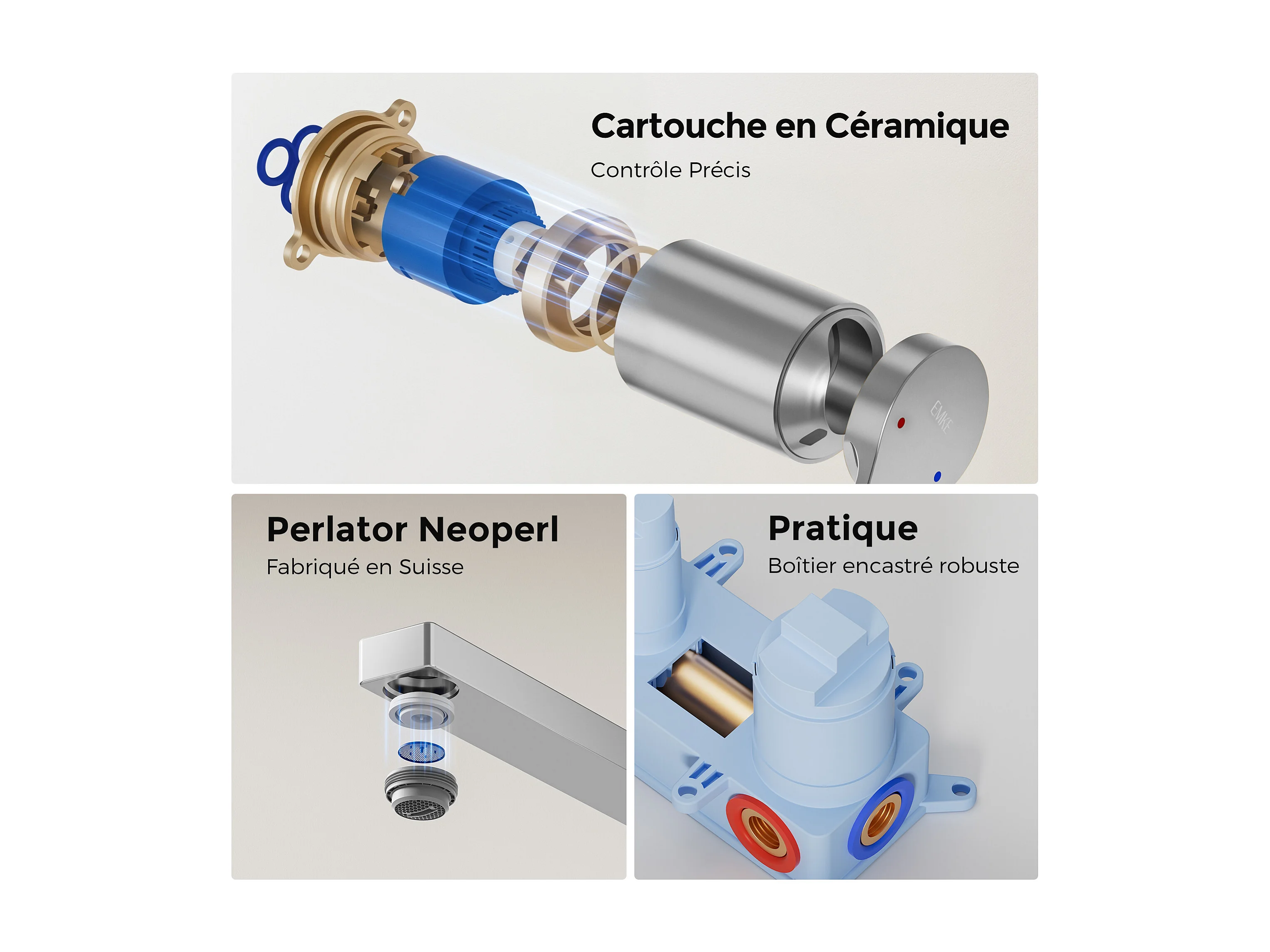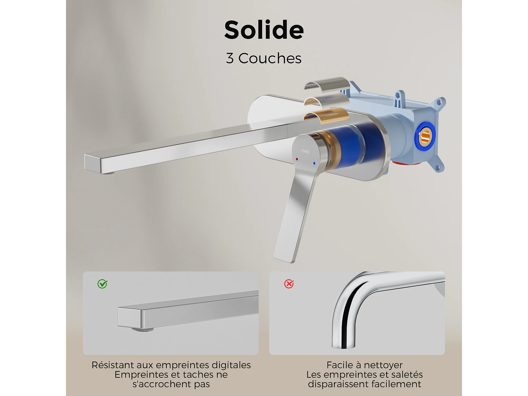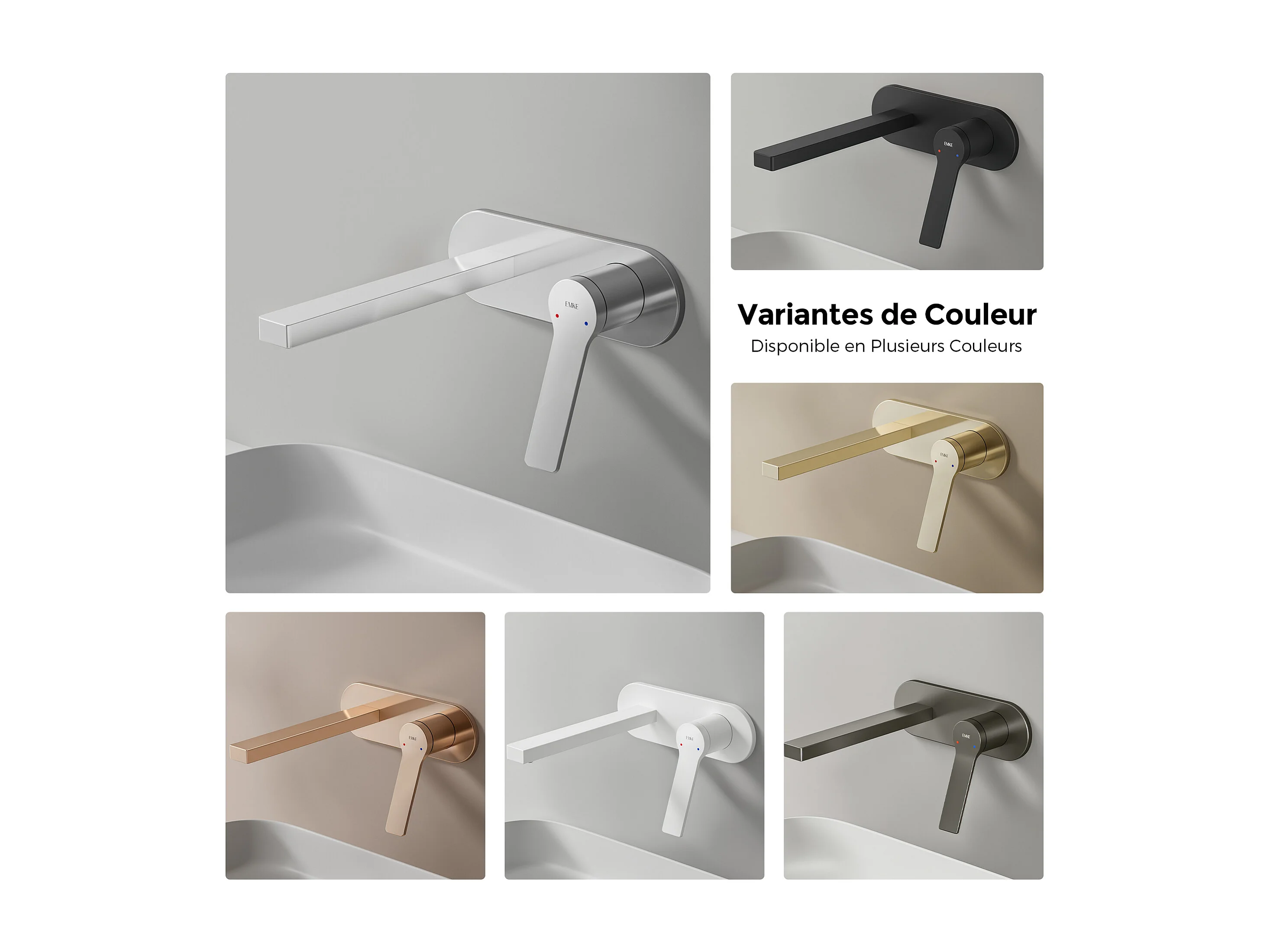EMKE Mitigeur de lavabo mural encastrable chromé cartouche céramique laiton L.21xH.7 cm