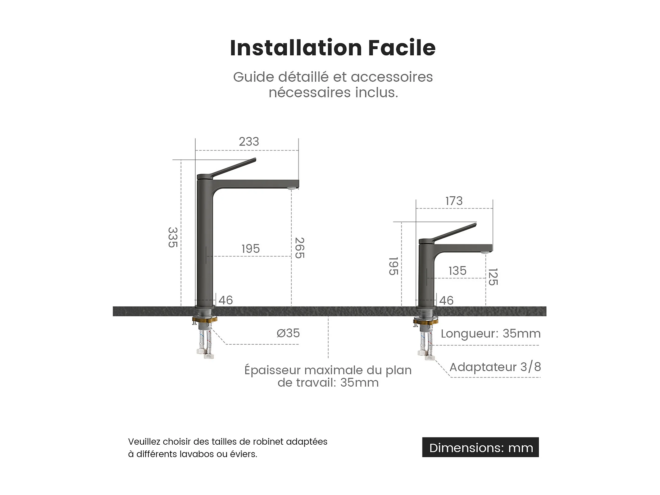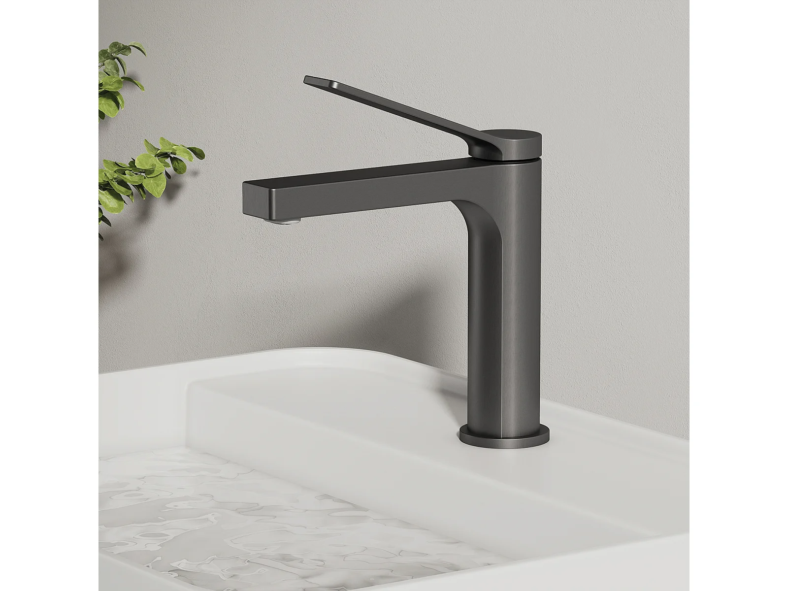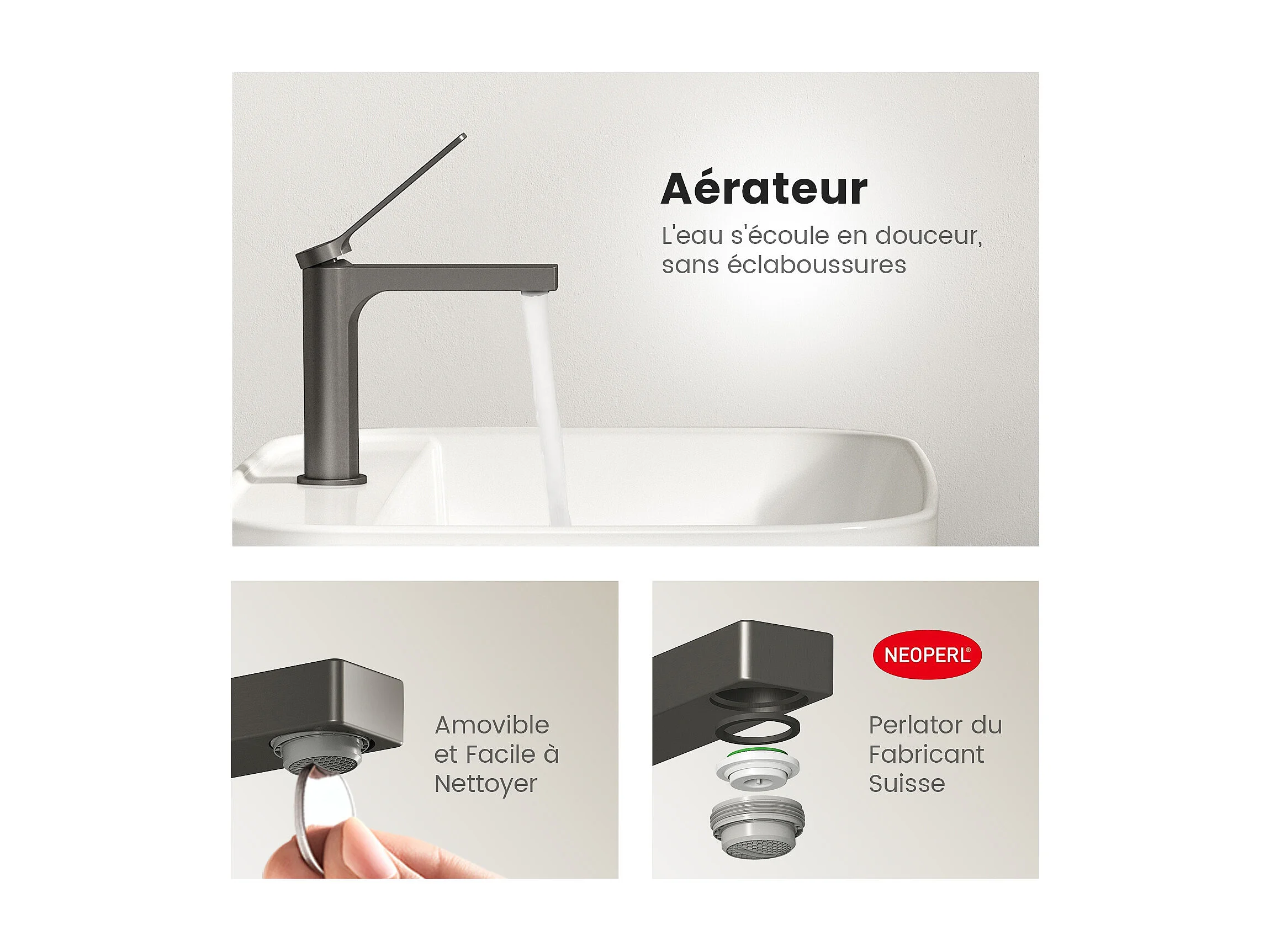 EMKE Mitigeur de lavabo salle de bain anthracite cartouche céramique laiton H.19,5 x L.17,3 cm