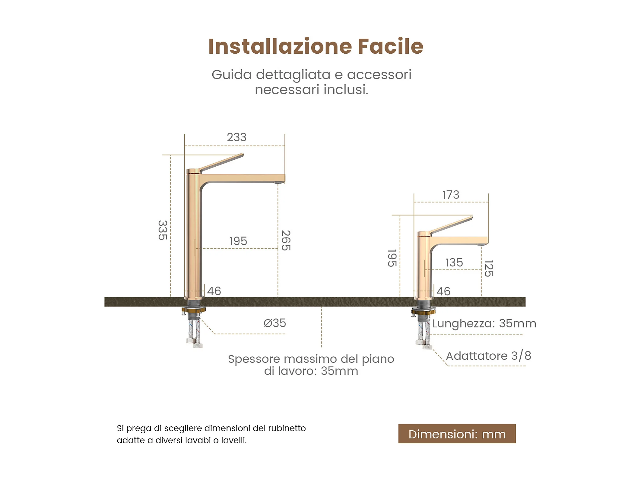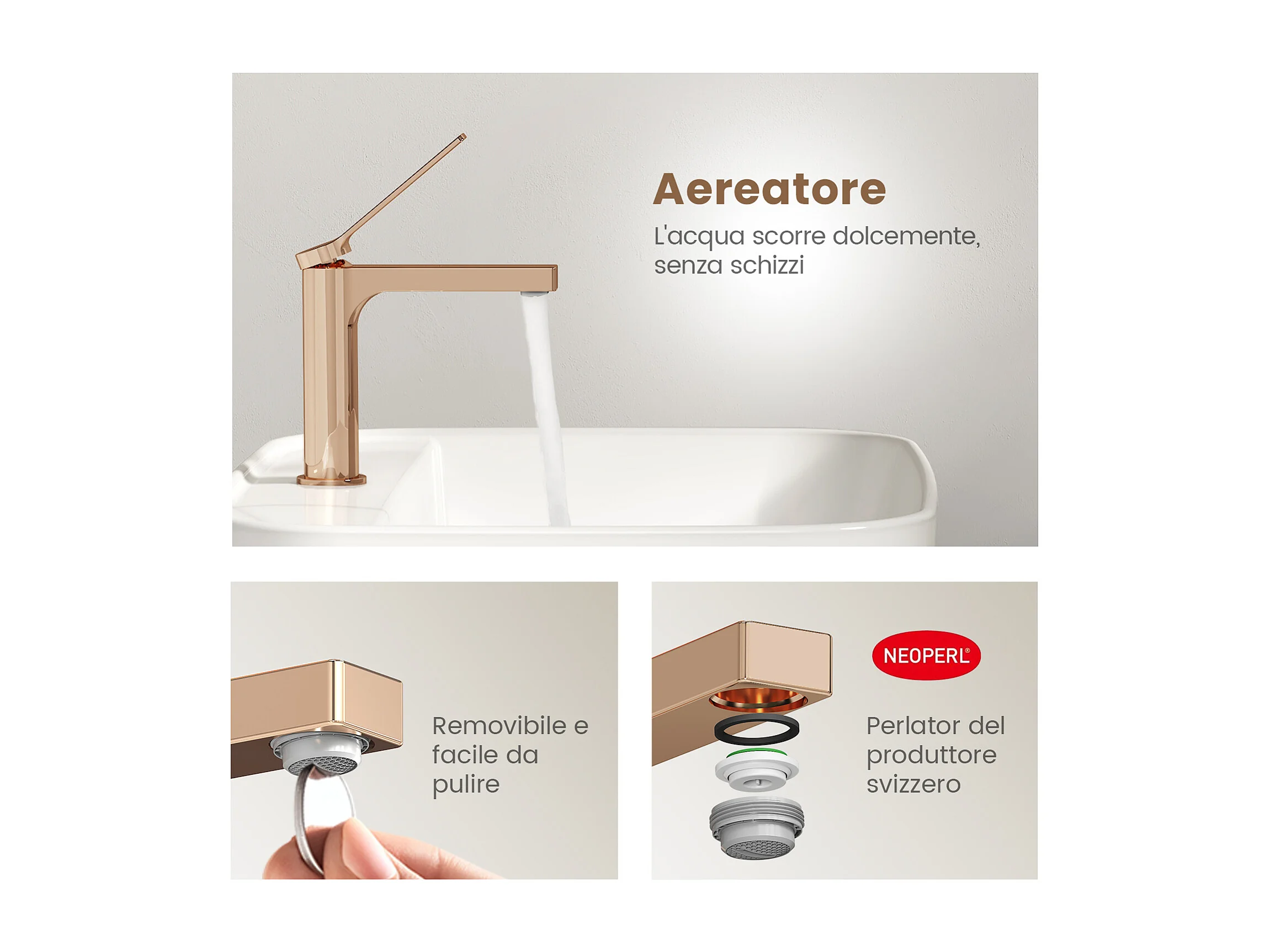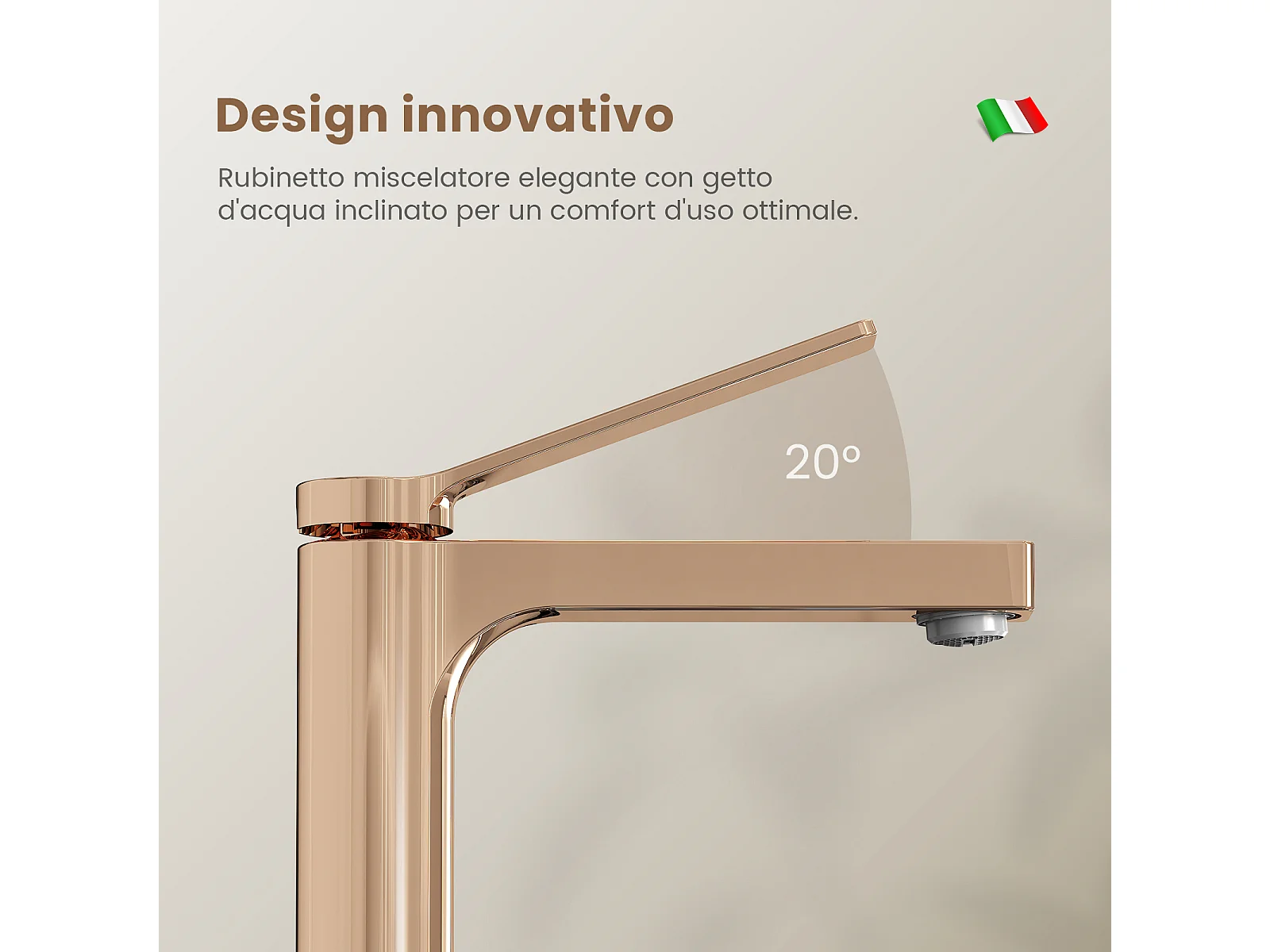 EMKE Mitigeur de lavabo salle de bain or rose cartouche céramique laiton H.19,5 x L.17,3 cm