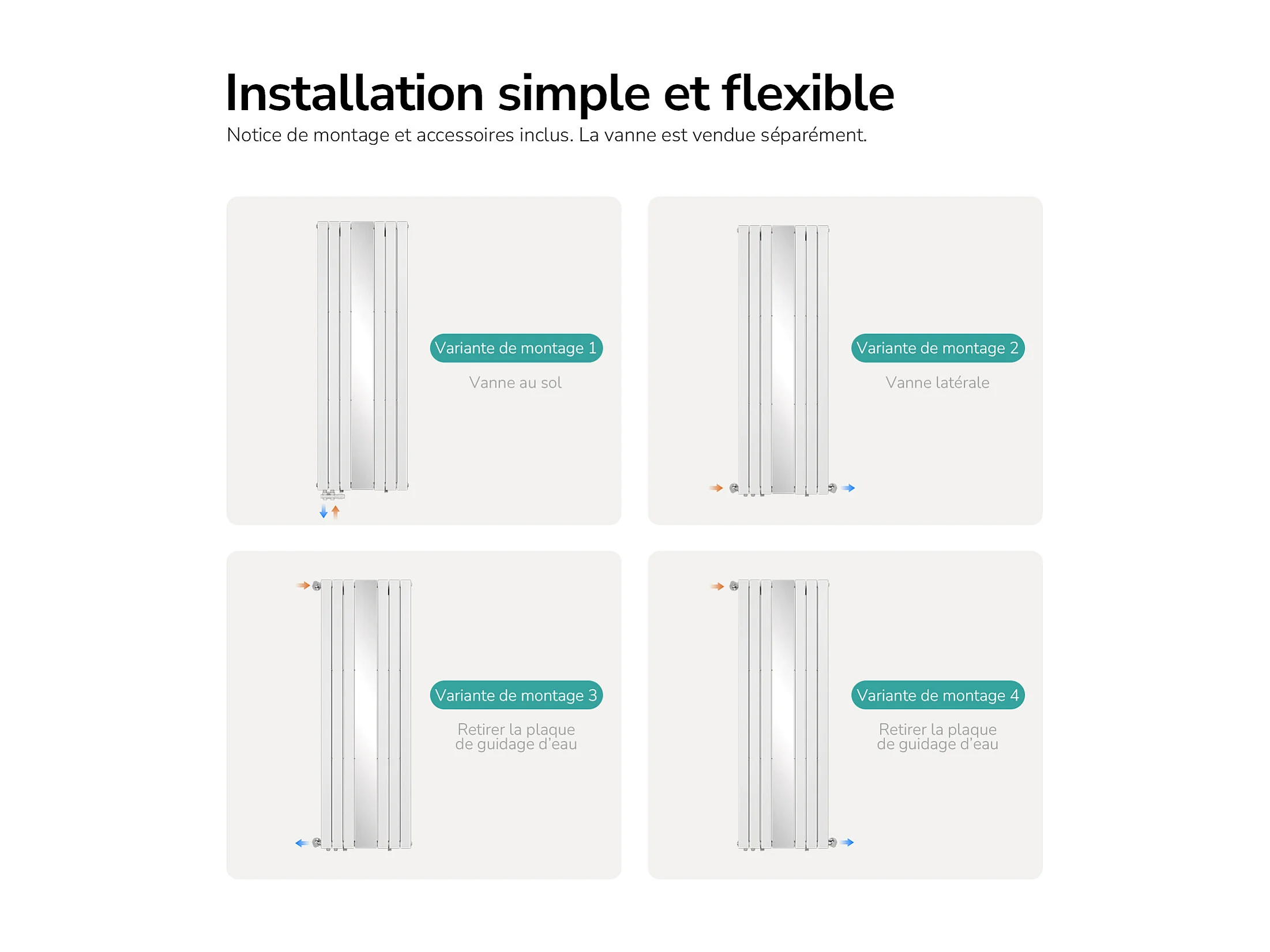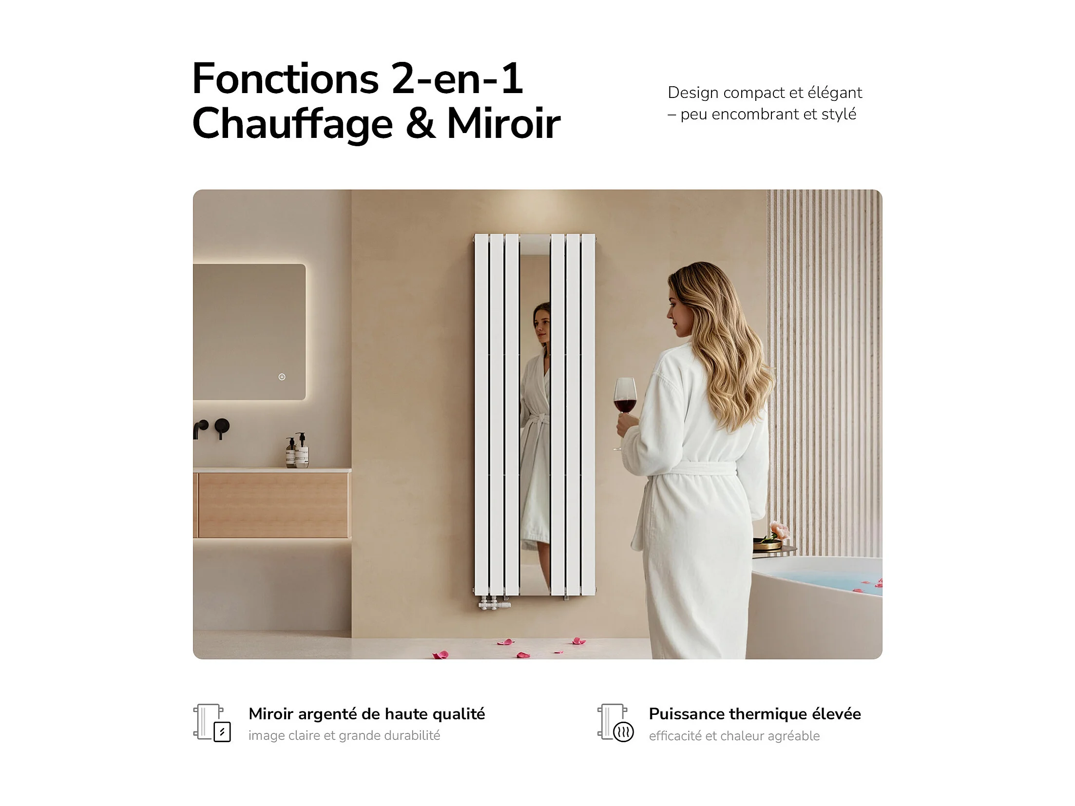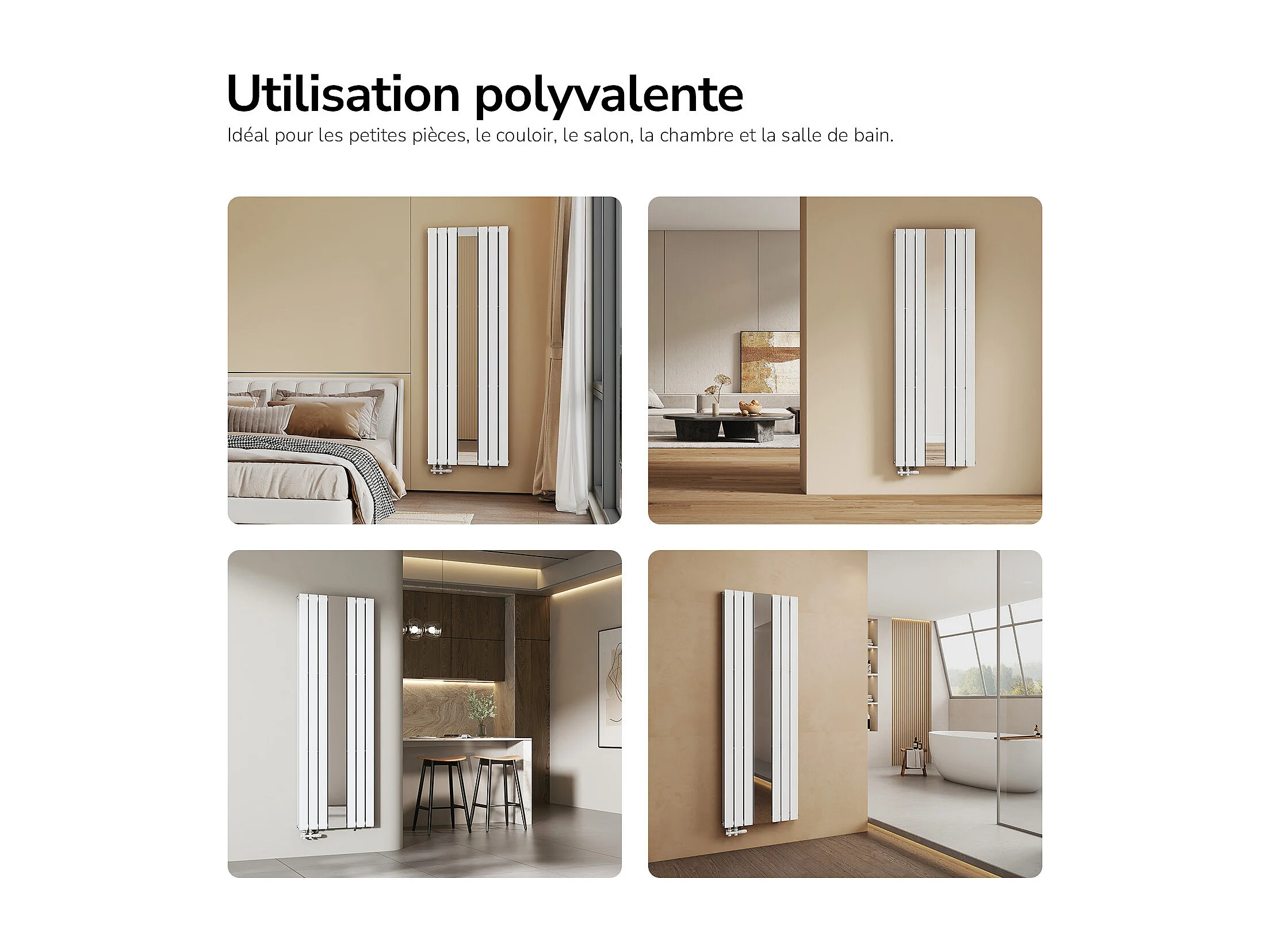 EMKE Radiateur Miroir Vertical Design Blanc pour Chauffage Central - 1800x608mm - 1788W - Double Panneau