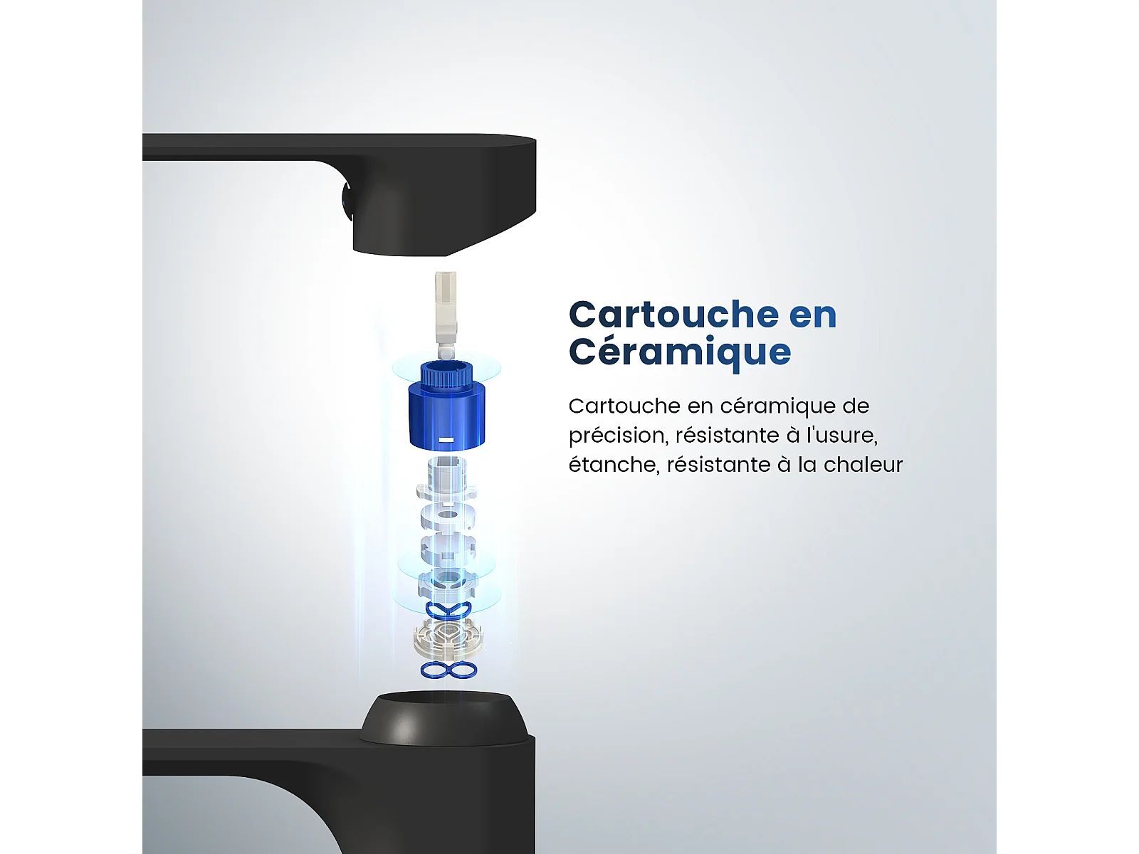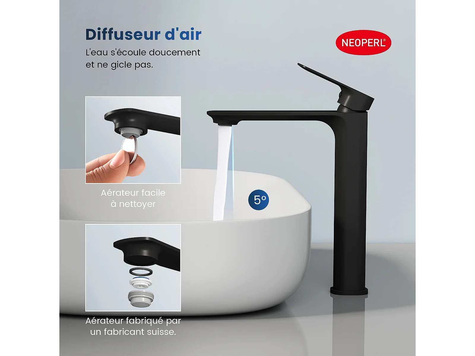 EMKE Robinet mitigeur de lavabo salle de bain design moderne noir mat en laiton L.21,5 x H.26,9 x P.4,9 cm