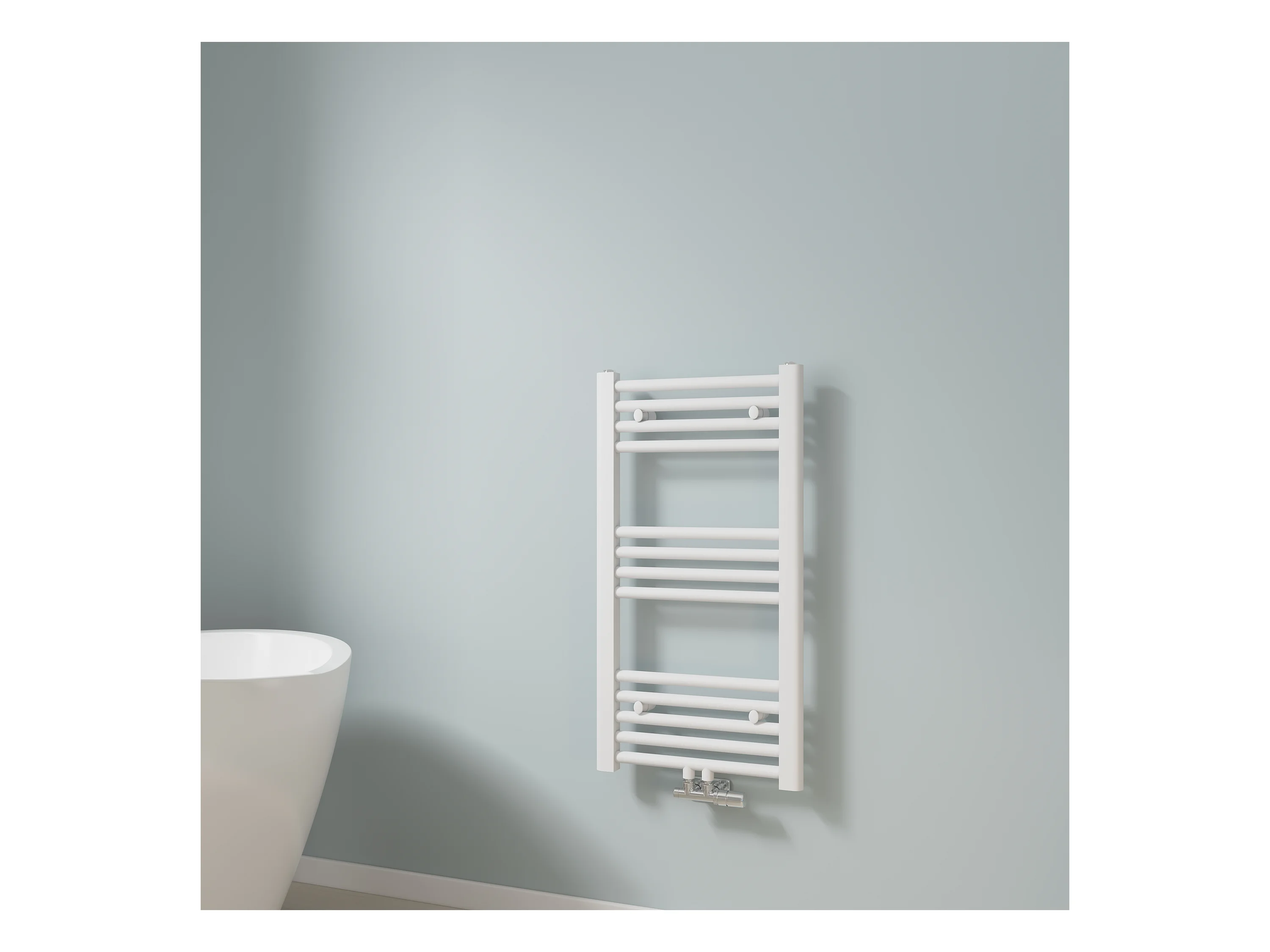 Radiateur sèche-serviette salle de bain droite blanc connexion central 40x80 cm