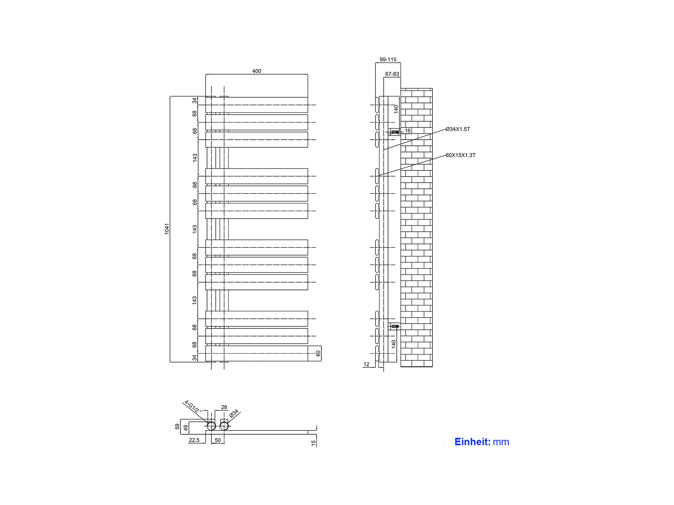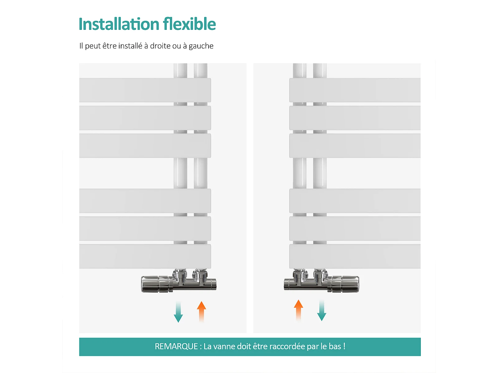 EMKE Sèche-serviettes à Eau Chaude Panneau Plat, Sèche-serviettes connexion latérale pour, Blanc 1041 x 400mm 456 Watts