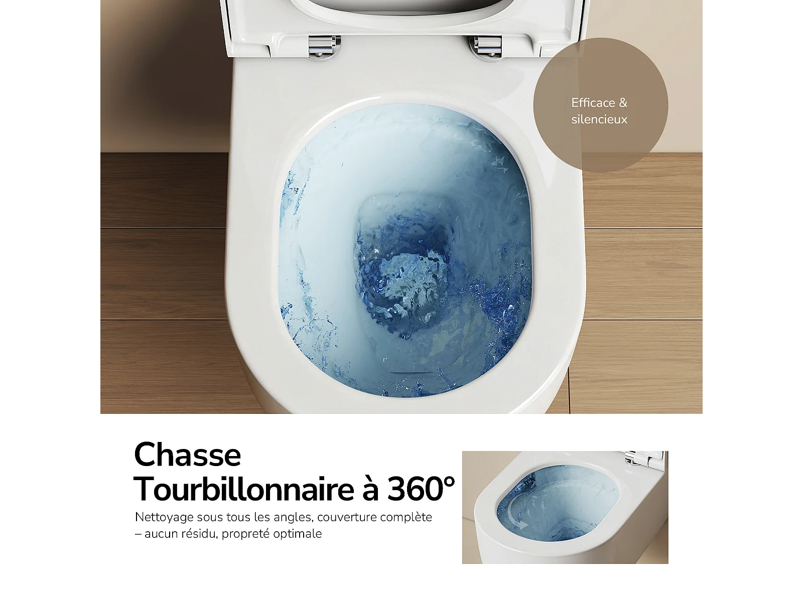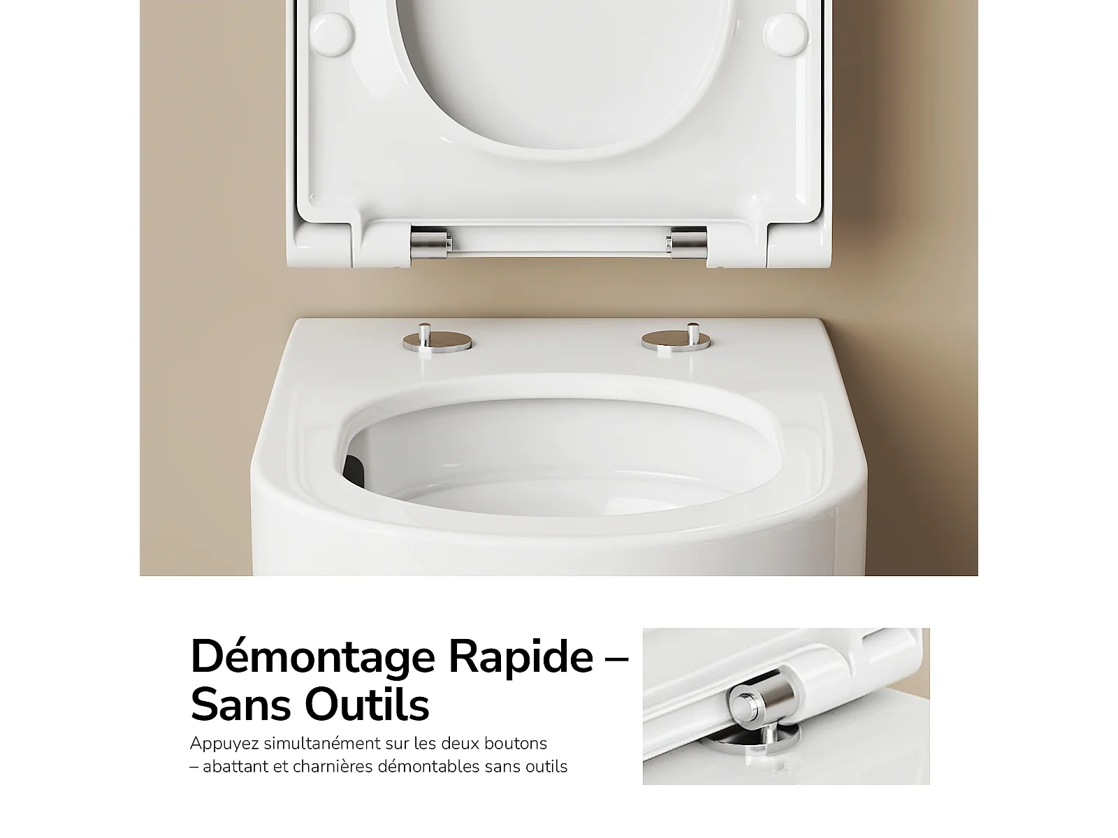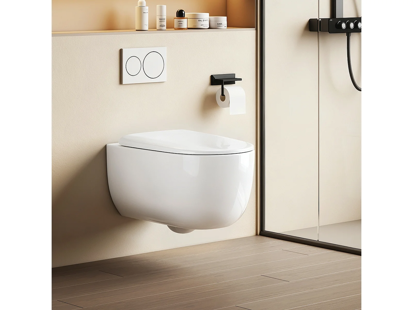 EMKE Toilettes Suspendue 555x365x355 mm Blanc Brillant, Design Sans Bord, Abattant à Fermeture Douce et Démontage Facile