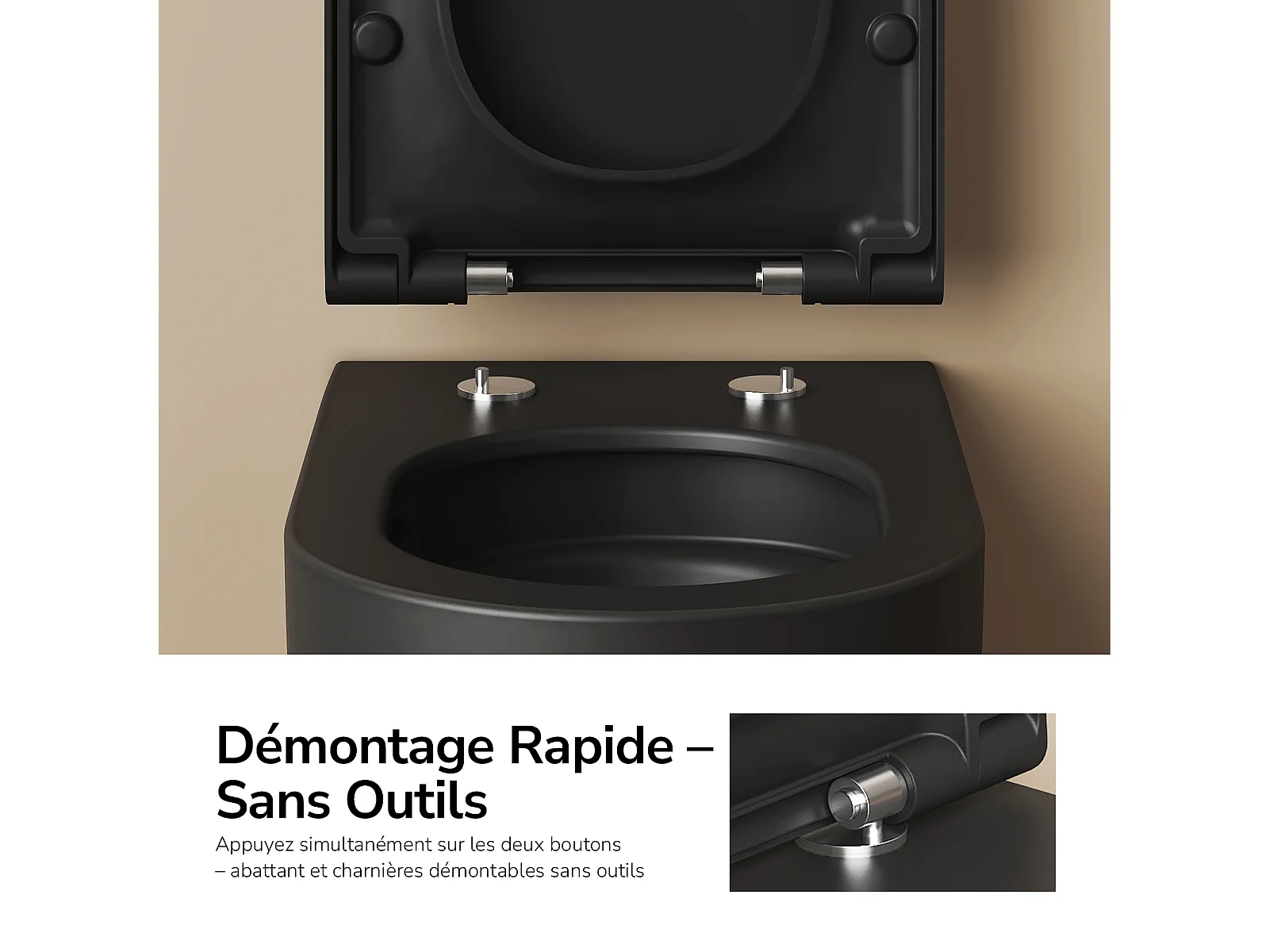 EMKE Toilettes Suspendue 555x365x355 mm Noir Mat, Design Sans Bord, Abattant à Fermeture Douce et Démontage Facile