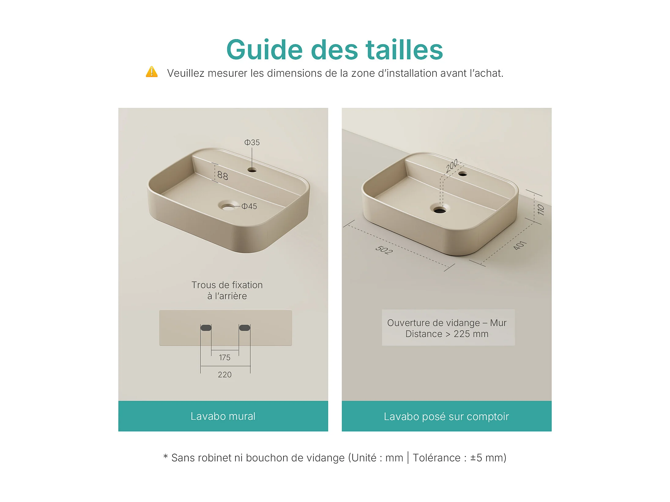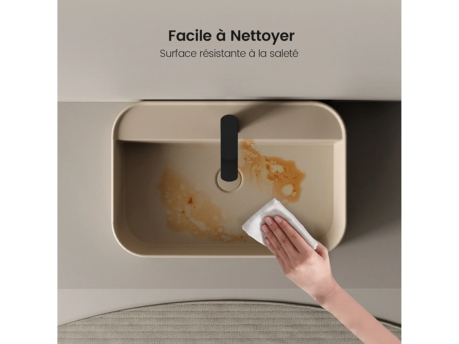EMKE Vasque à Poser 40 x 50 x 11 cm, Lavabo Rectangulaire en Céramique pour Salle de Bain, Coins Arrondis R, Beige Mat
