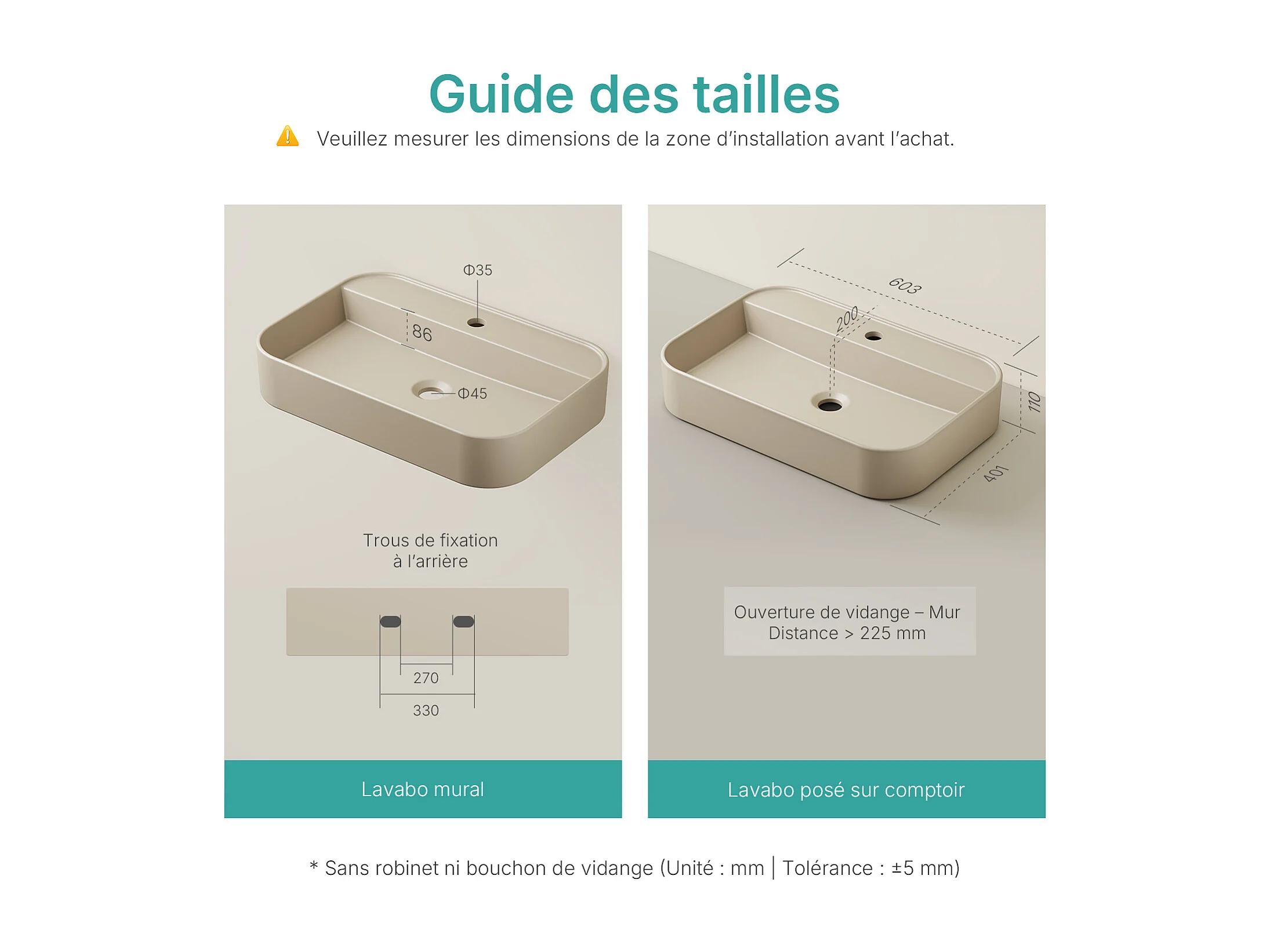 EMKE Vasque à Poser 40 x 60 x 11 cm, Lavabo Rectangulaire en Céramique pour Salle de Bain, Coins Arrondis R, Beige Mat