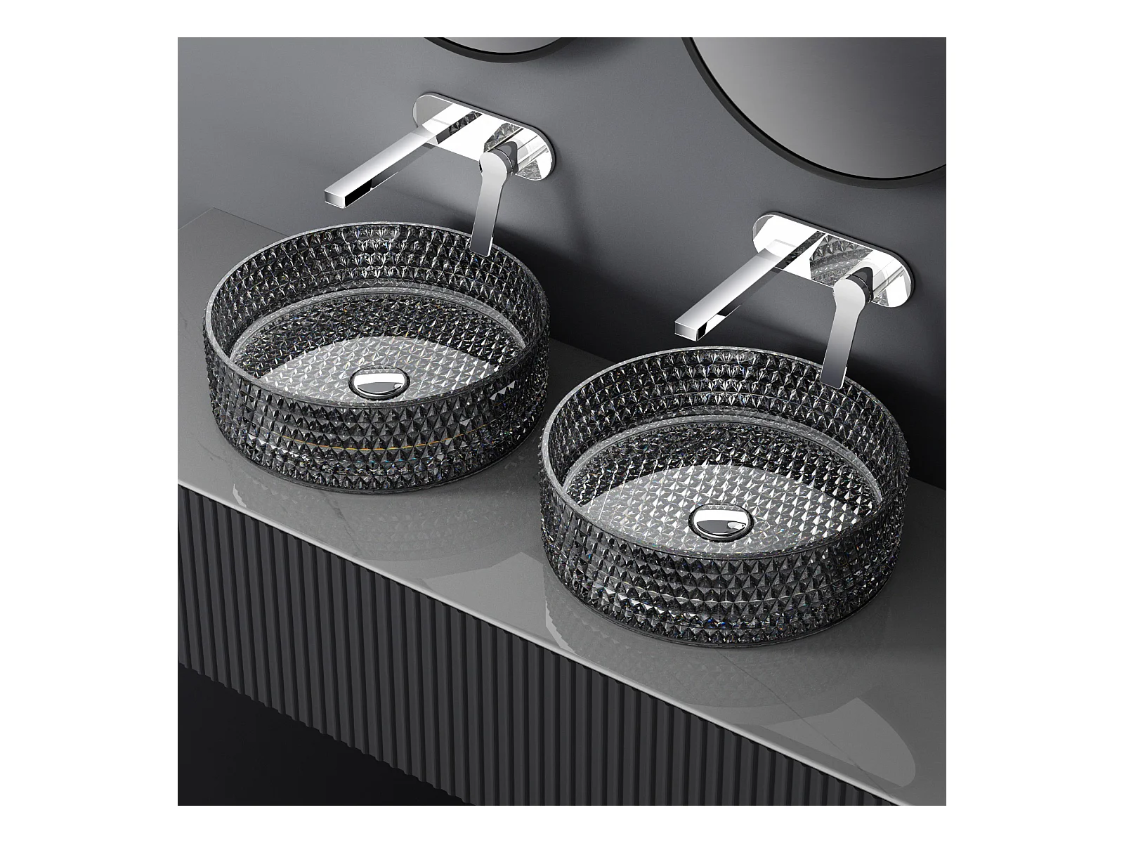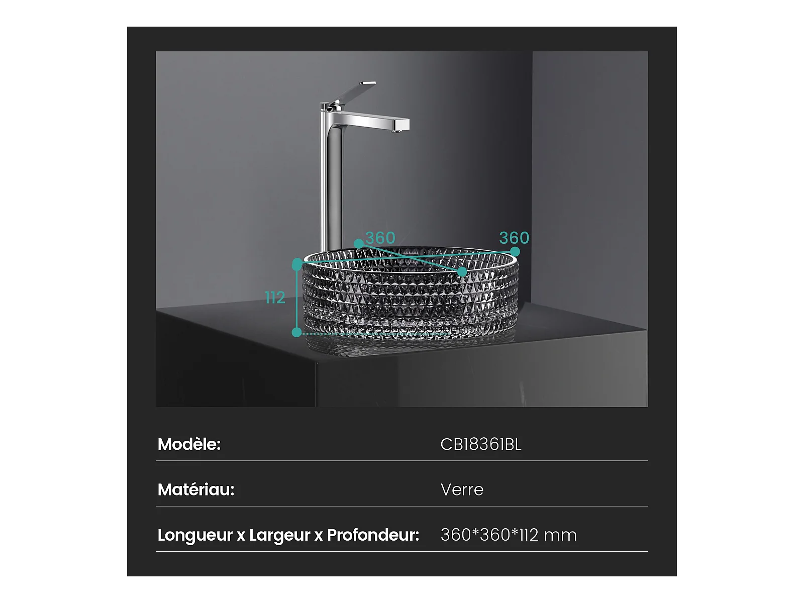 EMKE Vasque à Poser Ronde, 360 x 360 x 112 mm, Lavabo en Verre Noir, Design Montage sur Comptoir