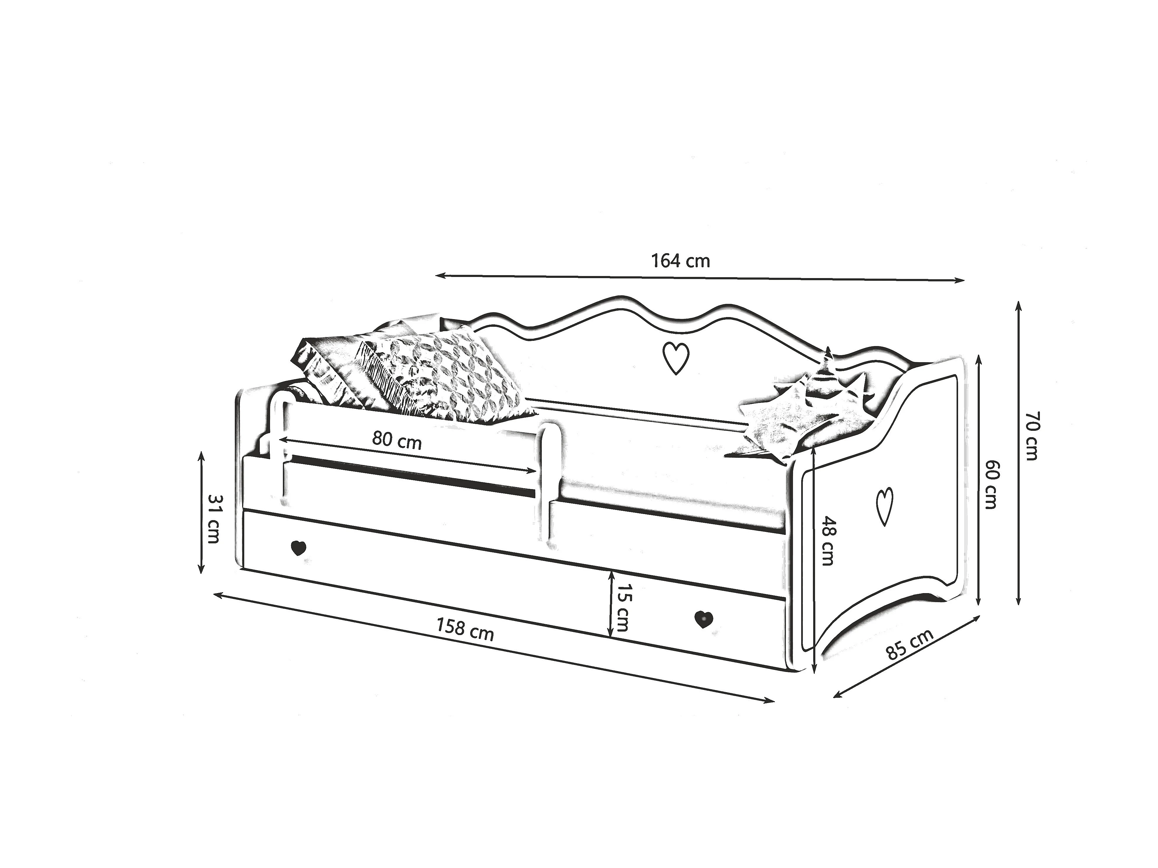 Emma - lit simple 180x80 dans un ensemble avec un tiroir, une balustrade, un matelas et un cadre