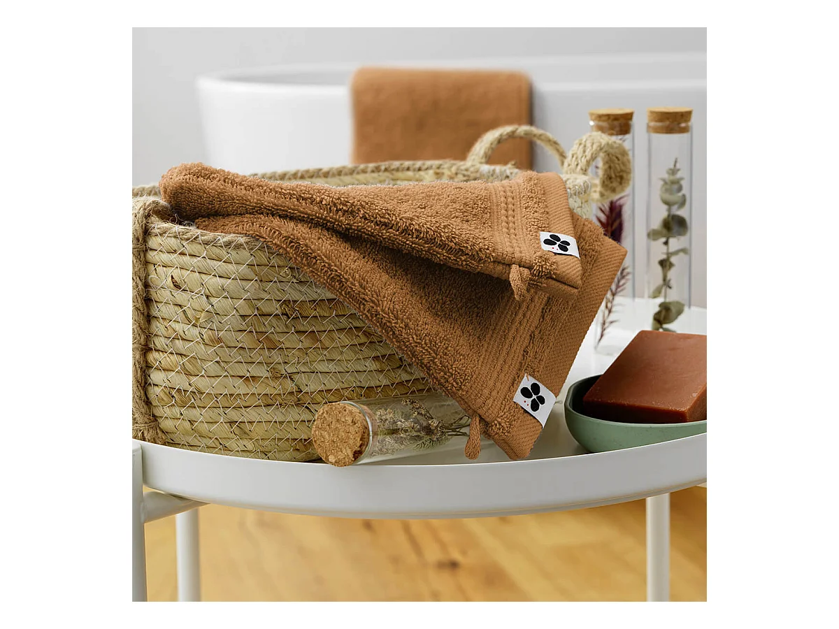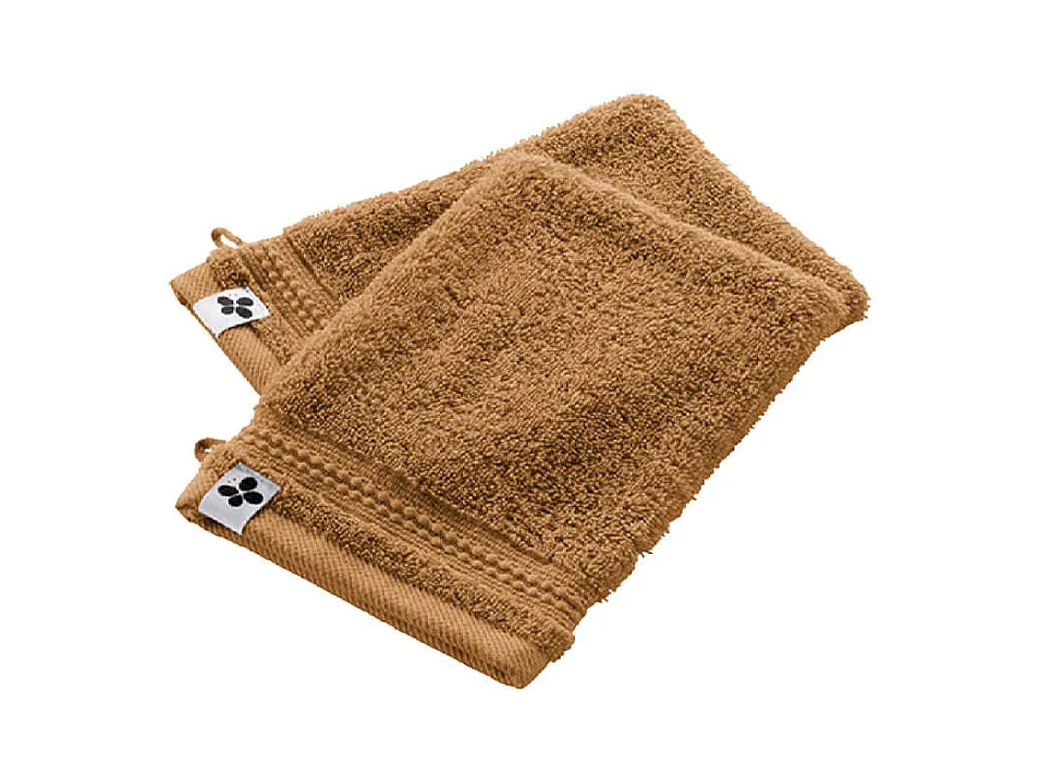 Lot de 2 gants de toilette 16x21 cm pur coton collection GLOW marron
