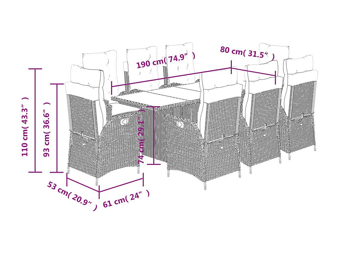 Emory Ensemble à manger de jardin 9 pcs coussins gris résine tressée