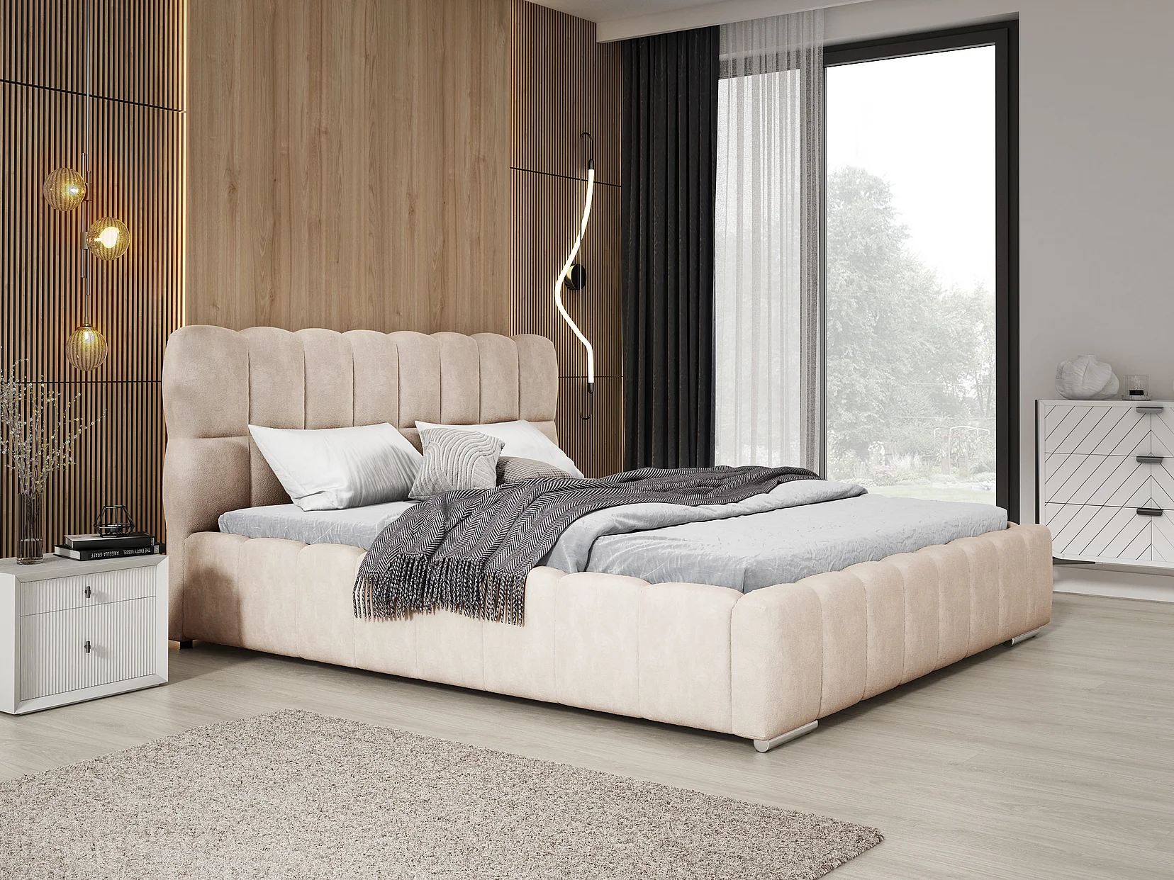 Emporius Avilla lit double 180x200 avec sommier à Lattes, avec rangement - lit rembourré 180 x 200, lit Beige (Komodo 11)