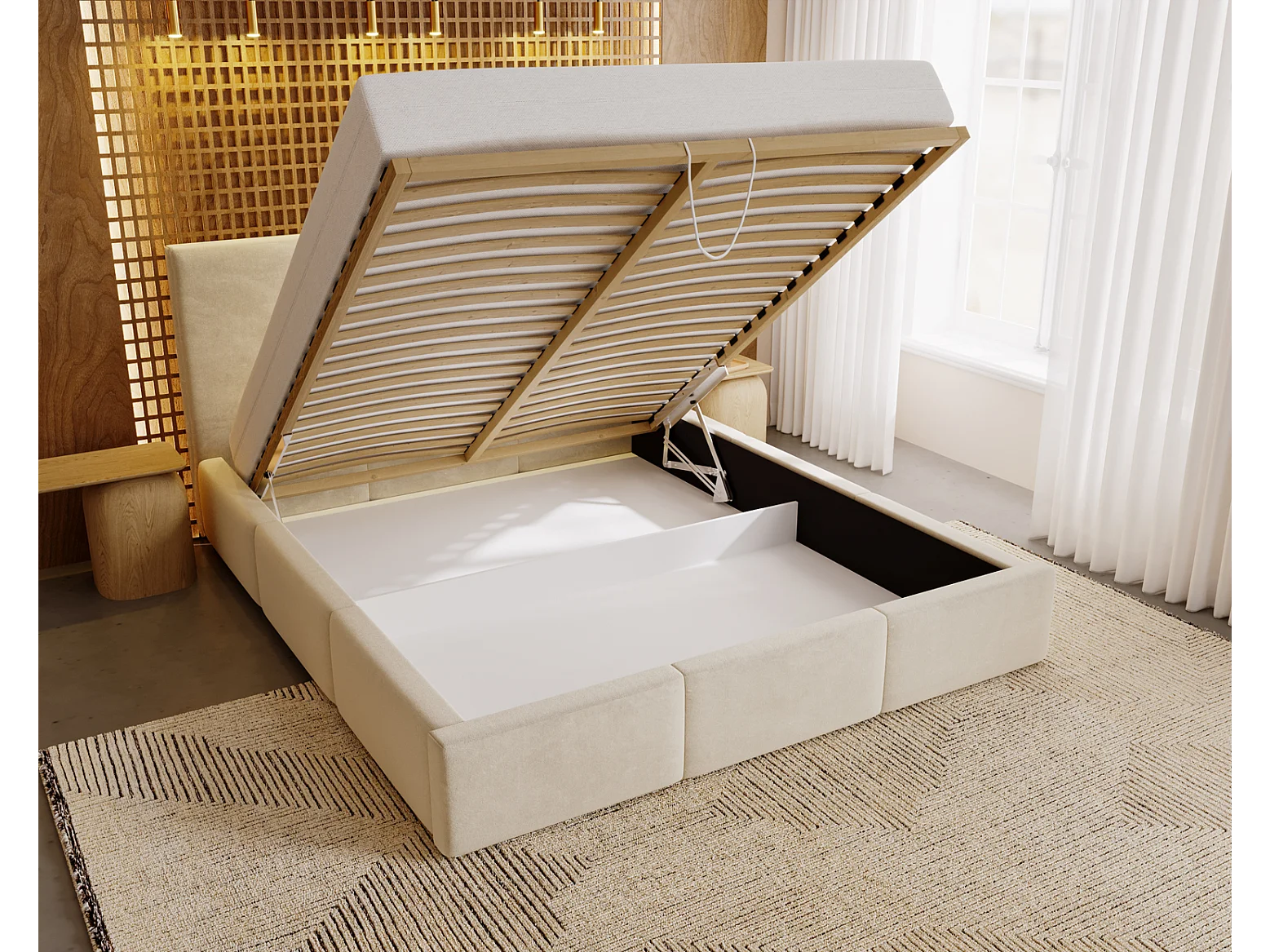 Emporius Lit 160x200 Lary - Lit avec rangement, Lit adulte rembourré - sommier à Lattes, tissu velours Beige (Magic Velvet 2201)
