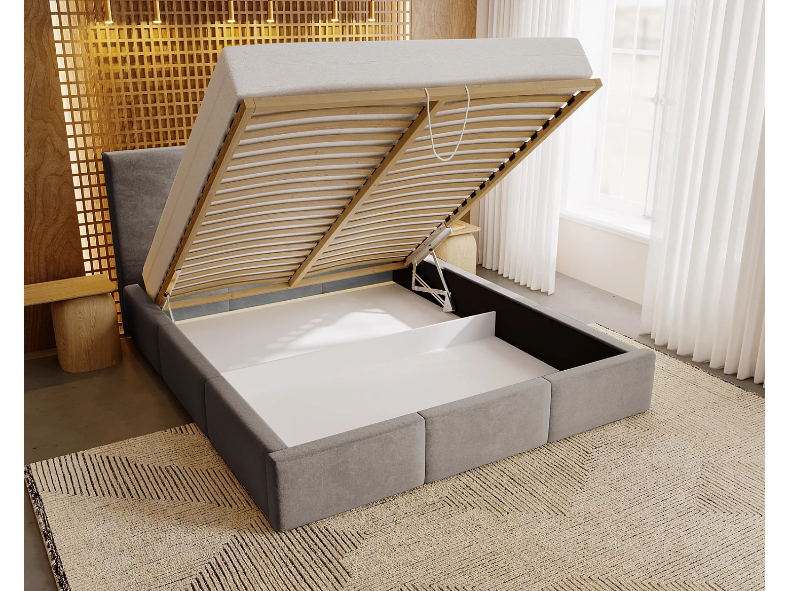 Emporius Lit avec rangement 200x200 Lary - Lit adulte, Lit rembourré - tête de lit, sommier à Lattes - Brun (Magic Velvet 2205)