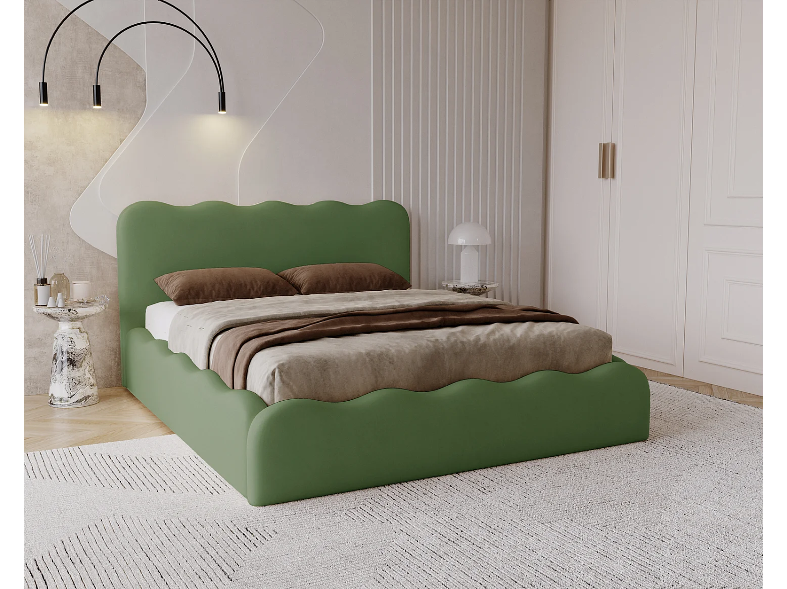 Emporius Lit avec Rangement, Lit double 180 x 200 cm Wave, Lit Vert (Elegance 10)